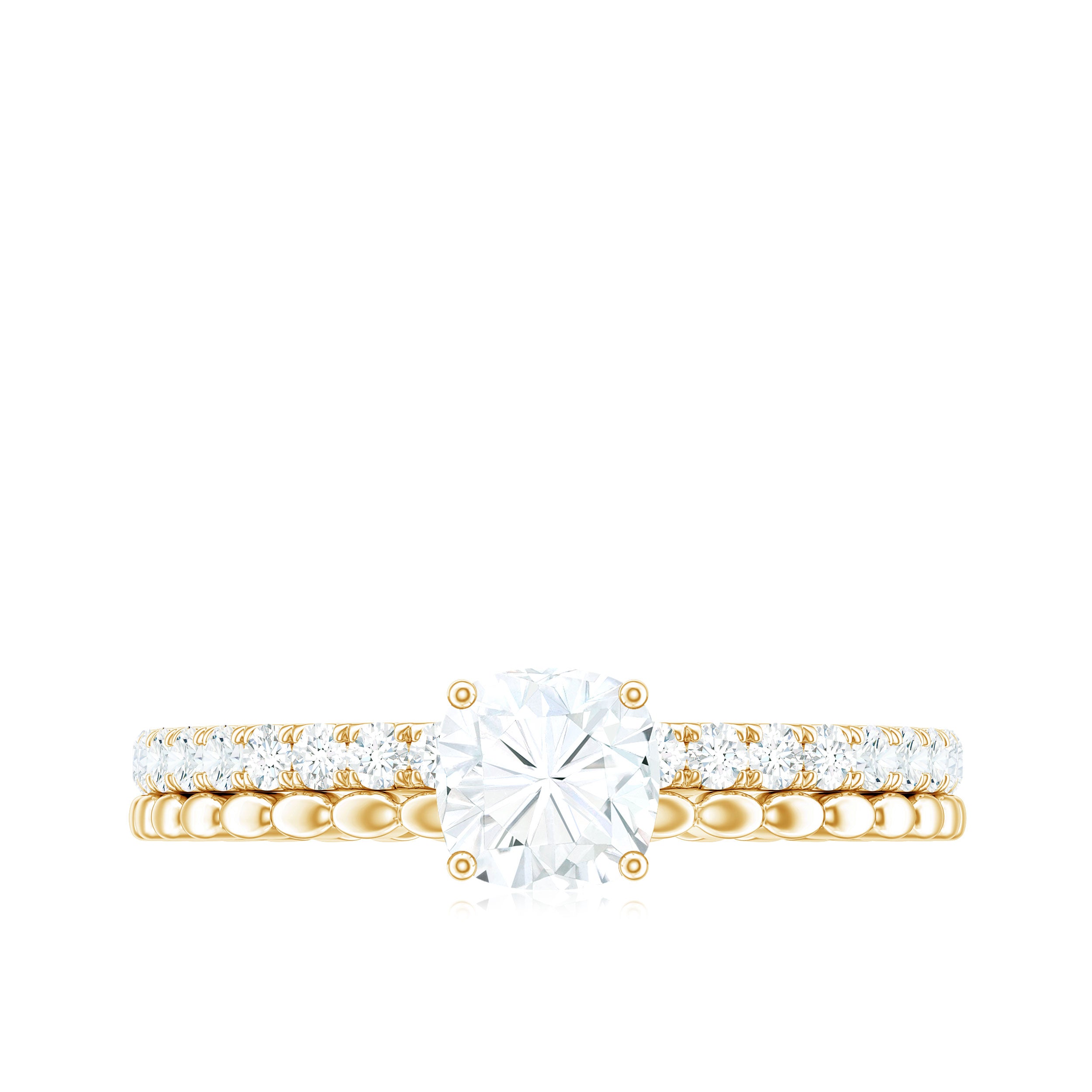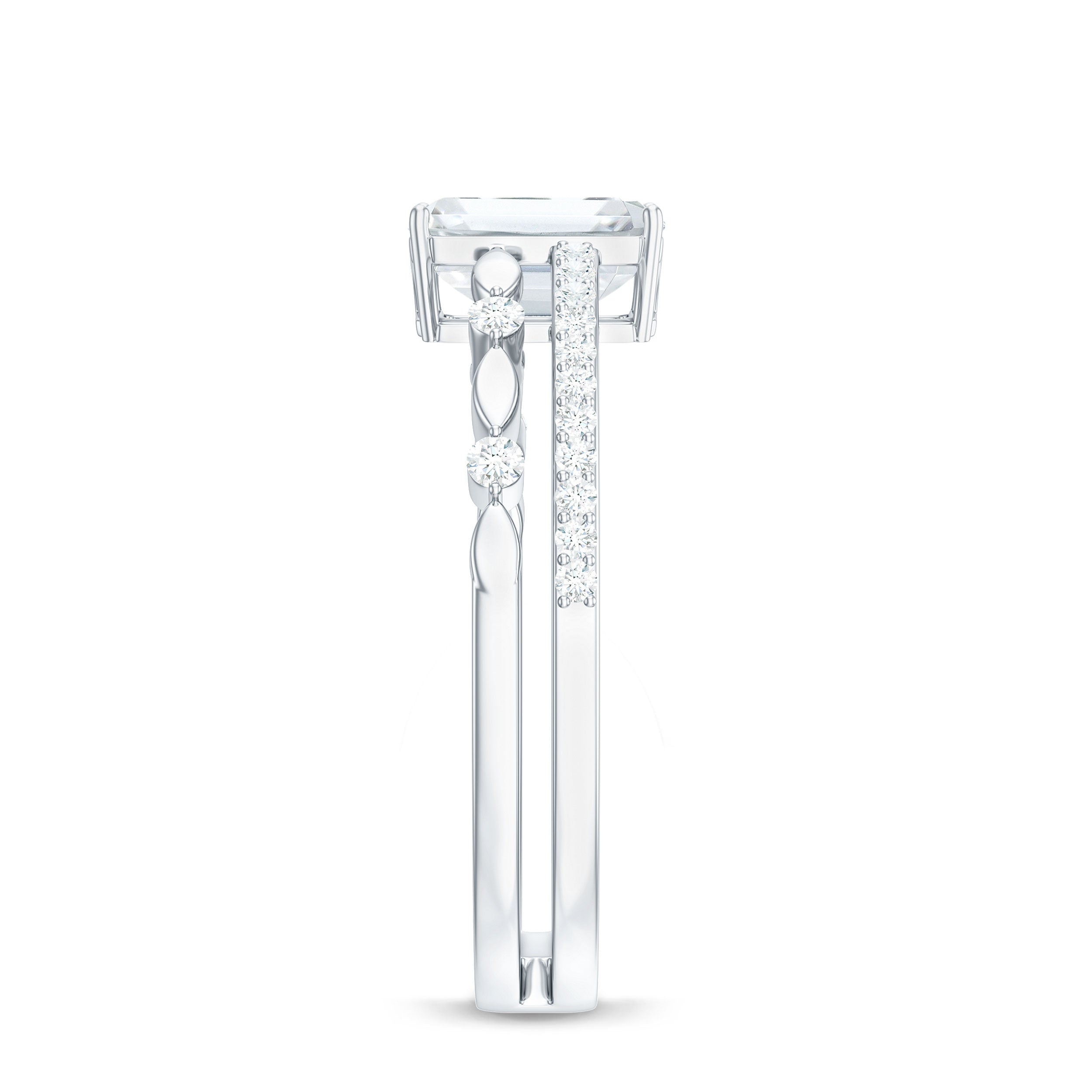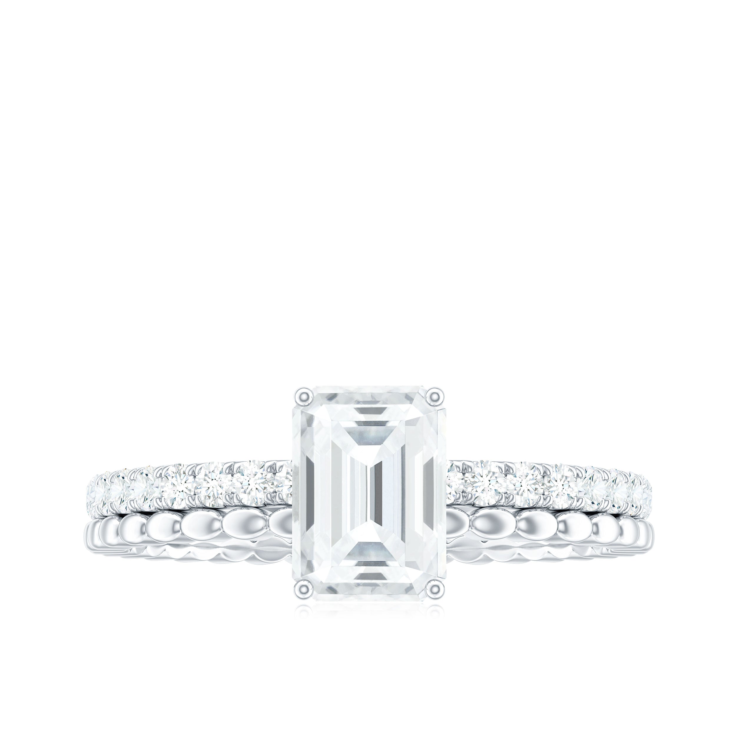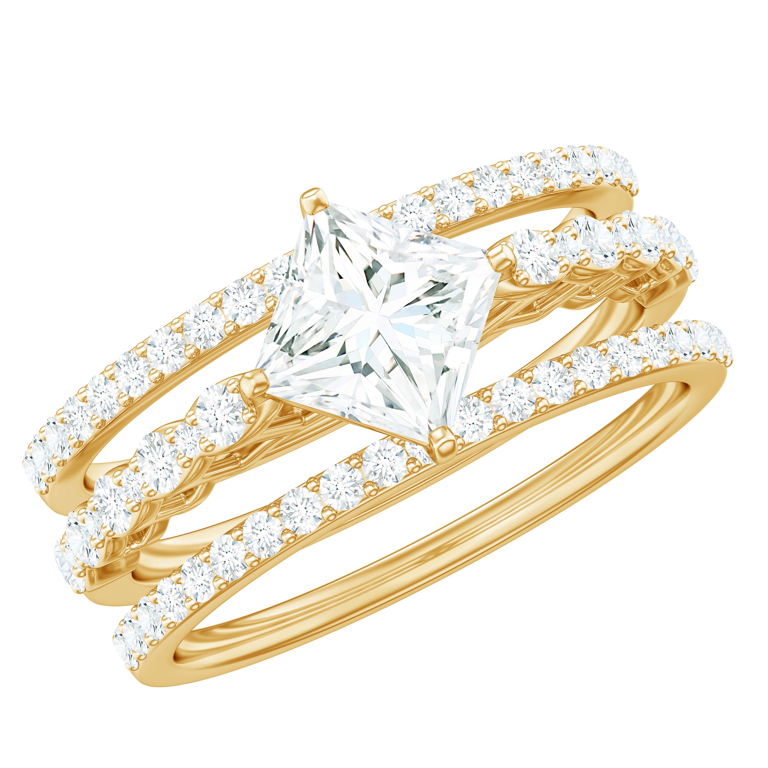 Moissanite Bridal Ring Sets: One of the popular choices for engagements and weddings is you can buy a ring set. The Bridal Ring Set is the perfect stacking combination of engagement rings and moissanite wedding rings. Two different styles create sets of rings that look premium and classy. The wedding band compliments the engagement ring and works as an enhancer.