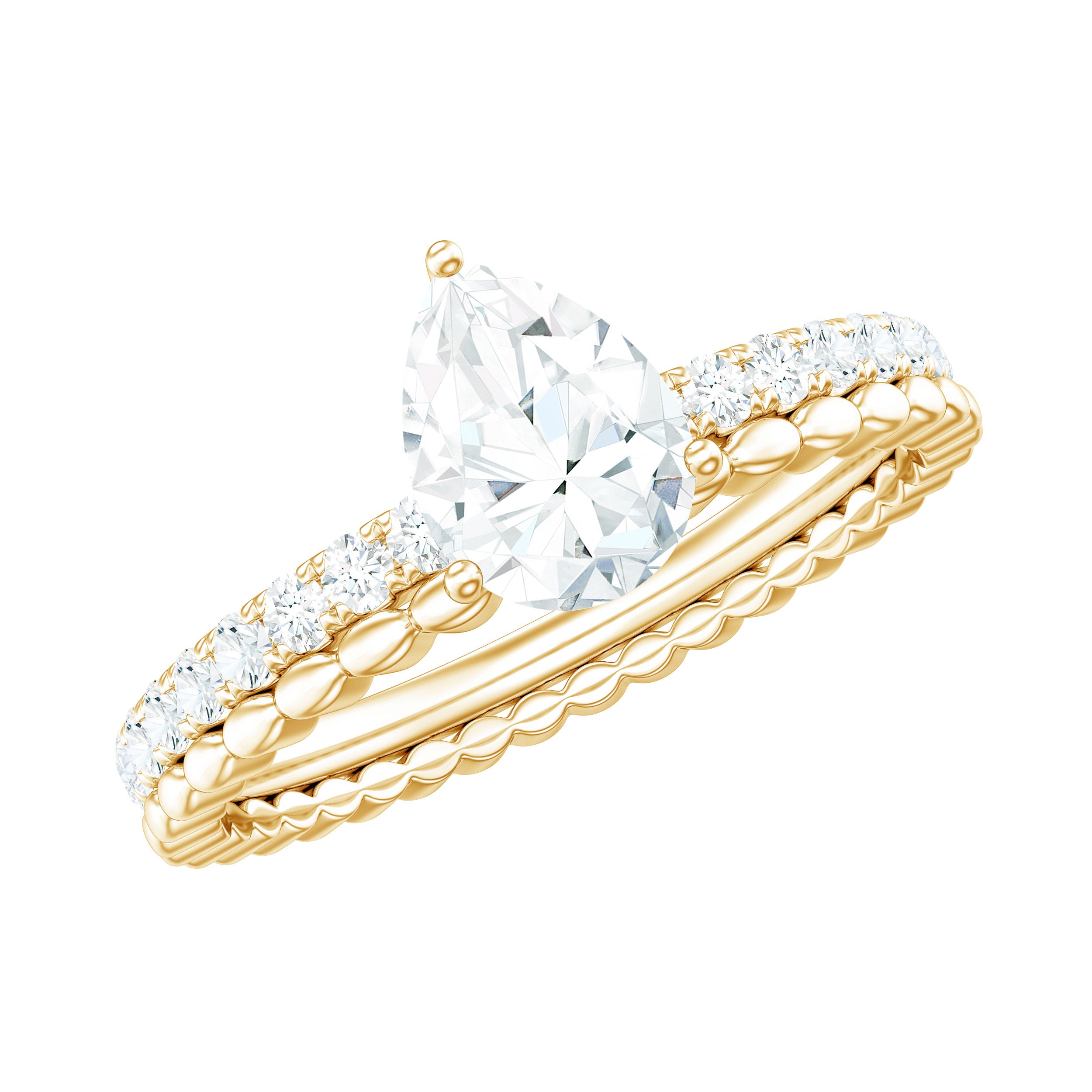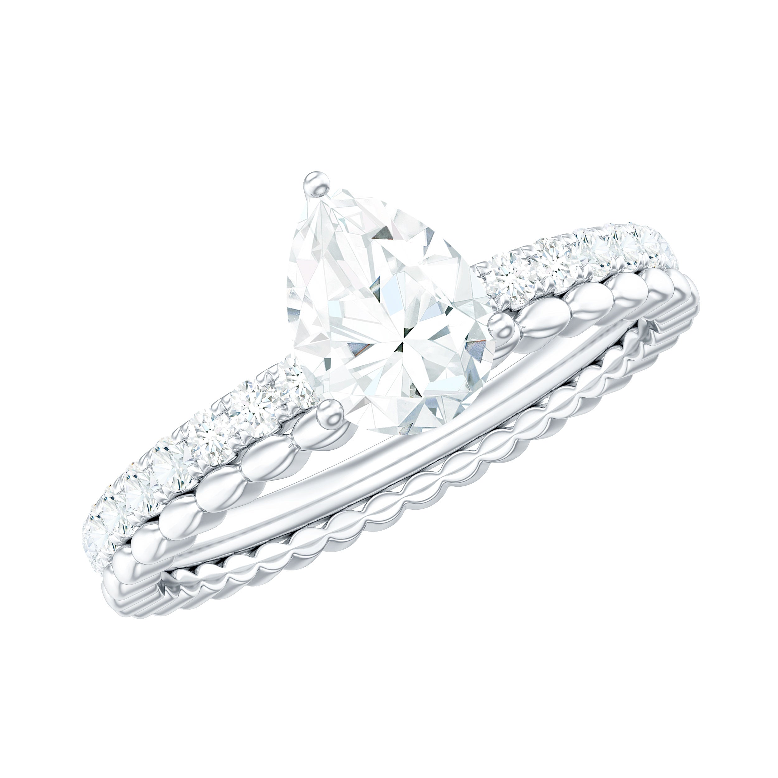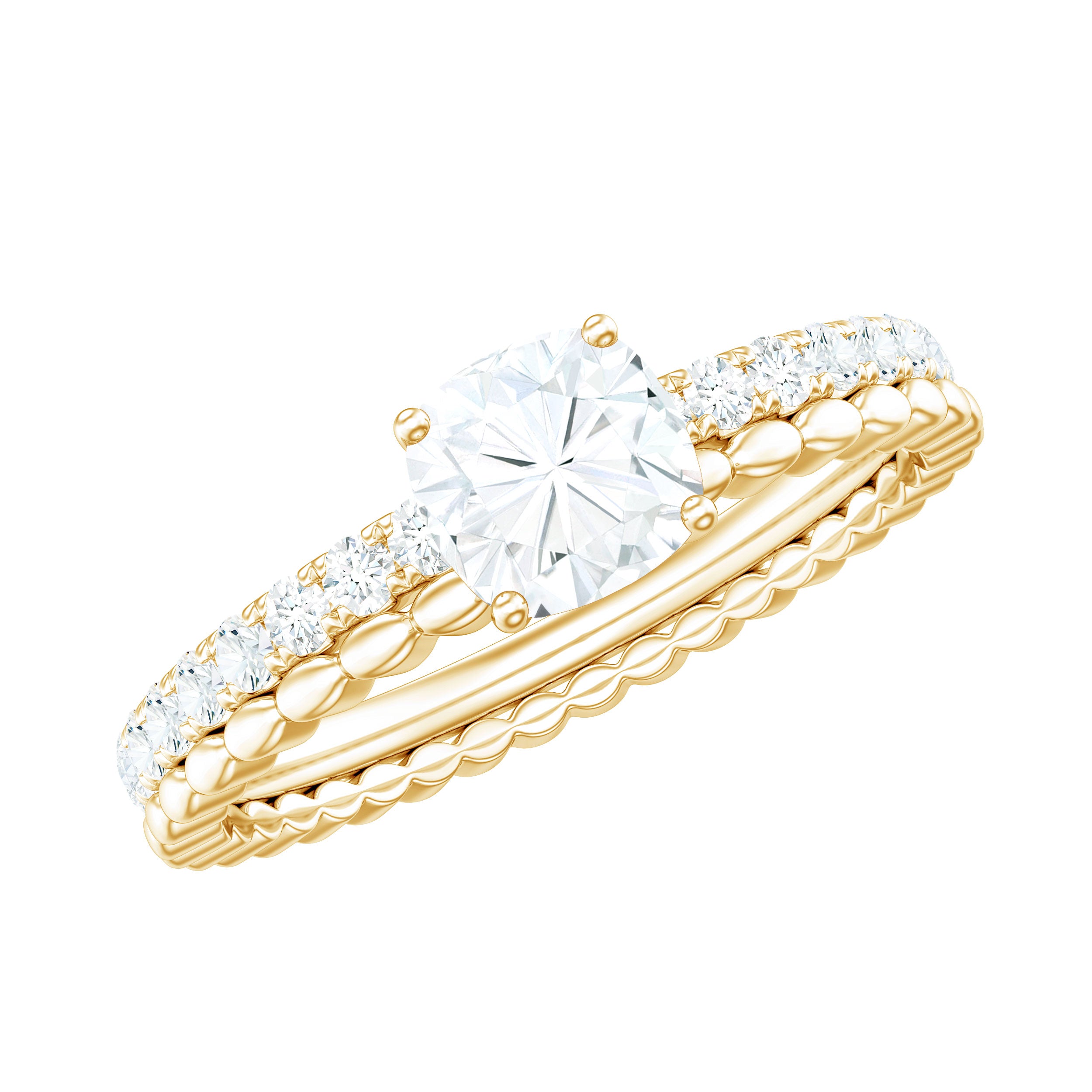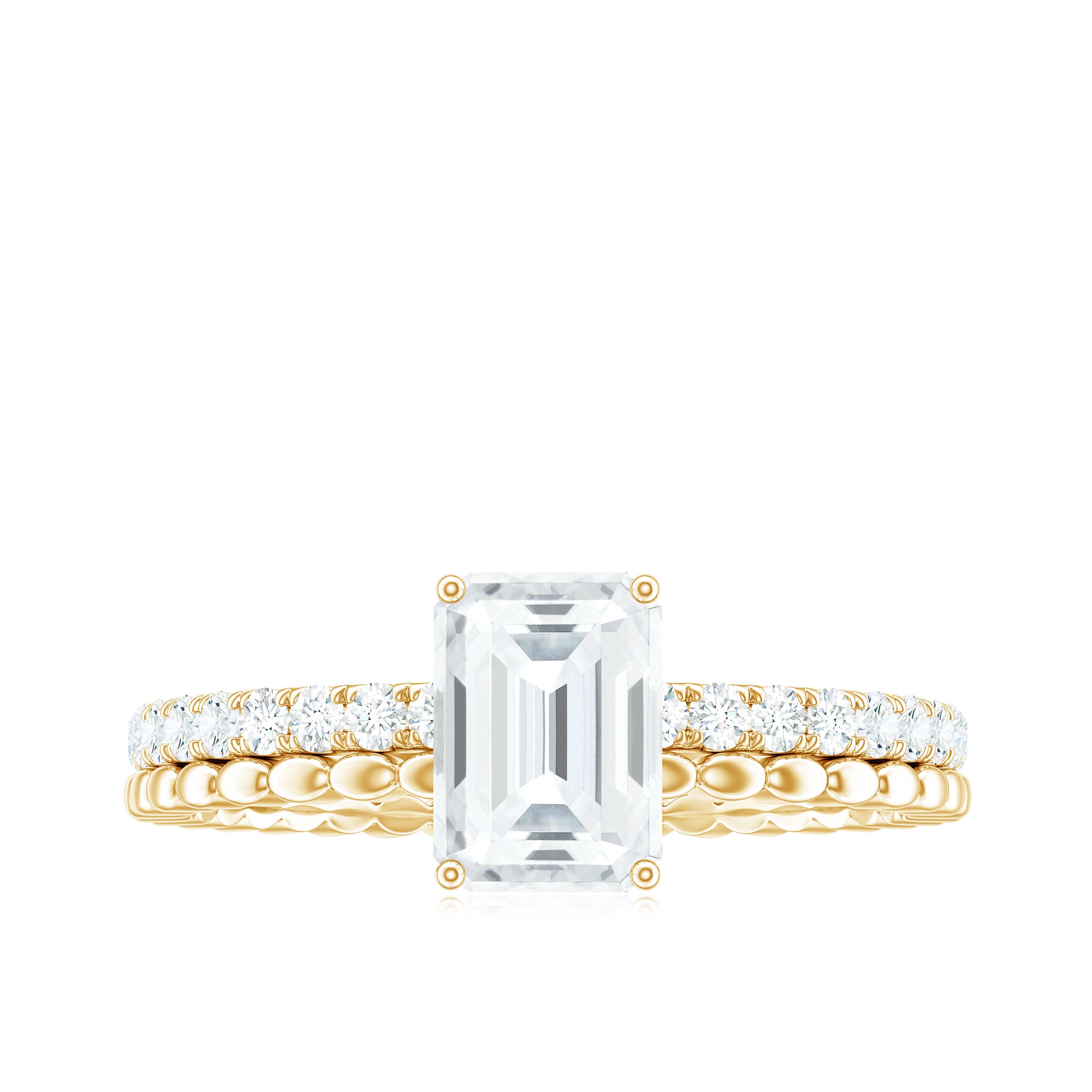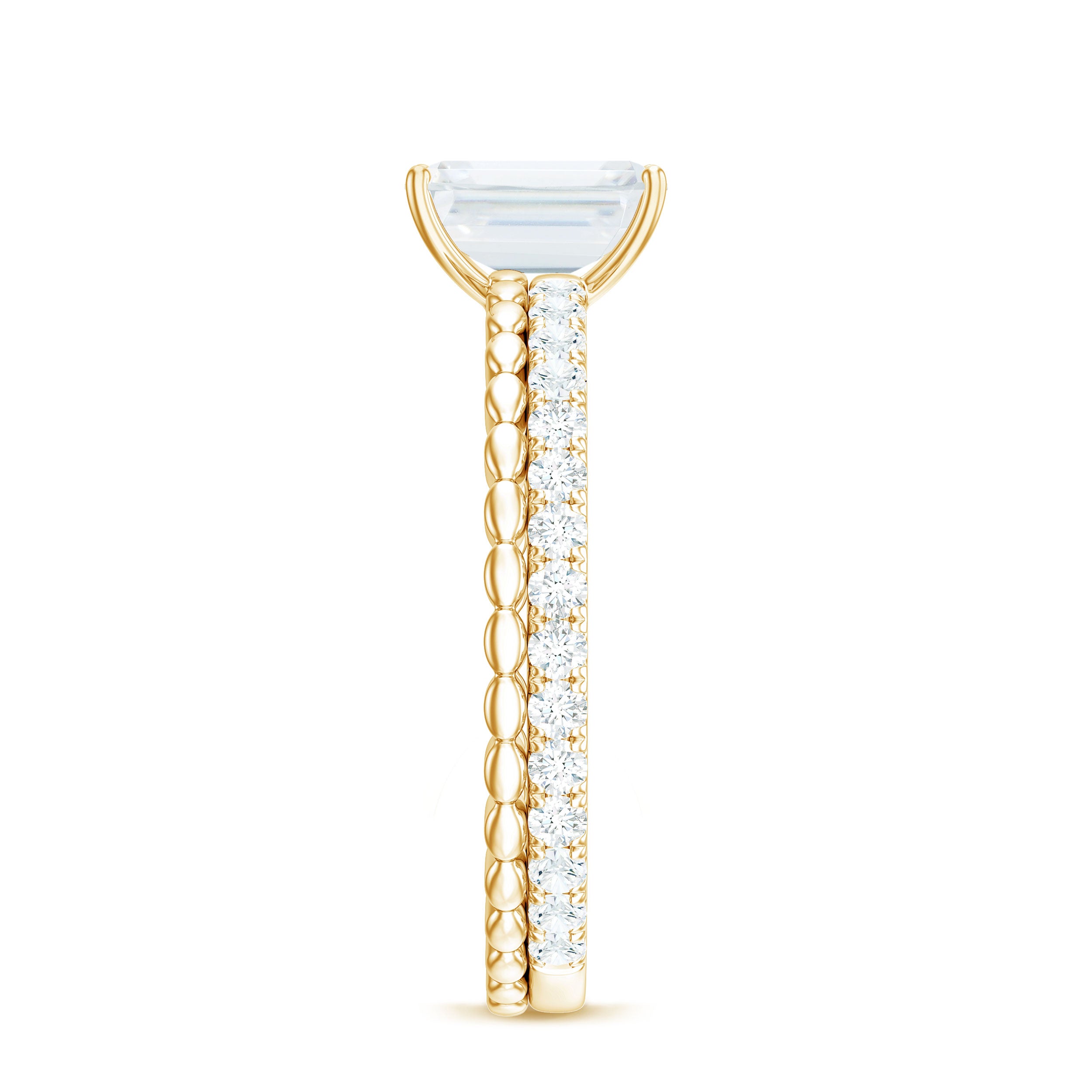 Moissanite Bridal Ring Sets: One of the popular choices for engagements and weddings is you can buy a ring set. The Bridal Ring Set is the perfect stacking combination of engagement rings and moissanite wedding rings. Two different styles create sets of rings that look premium and classy. The wedding band compliments the engagement ring and works as an enhancer.