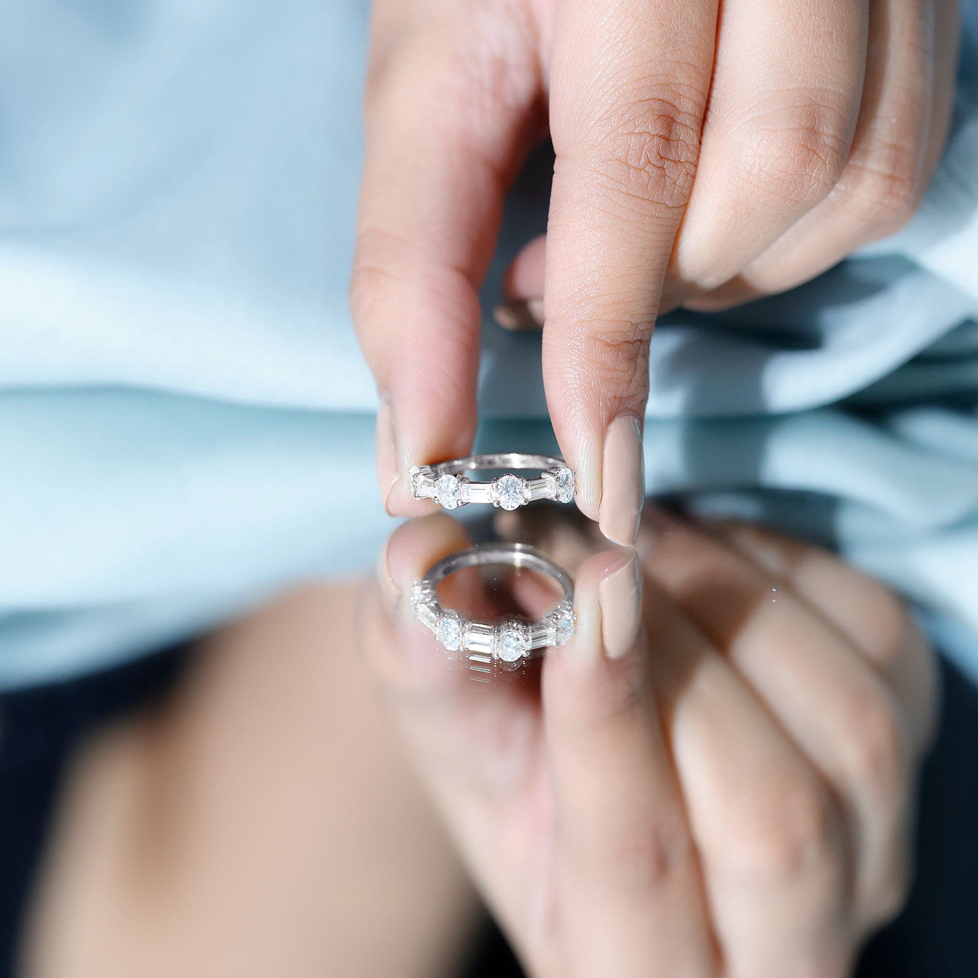 Moissanite Bridal Ring Sets: One of the popular choices for engagements and weddings is you can buy a ring set. The Bridal Ring Set is the perfect stacking combination of engagement rings and moissanite wedding rings. Two different styles create sets of rings that look premium and classy. The wedding band compliments the engagement ring and works as an enhancer.