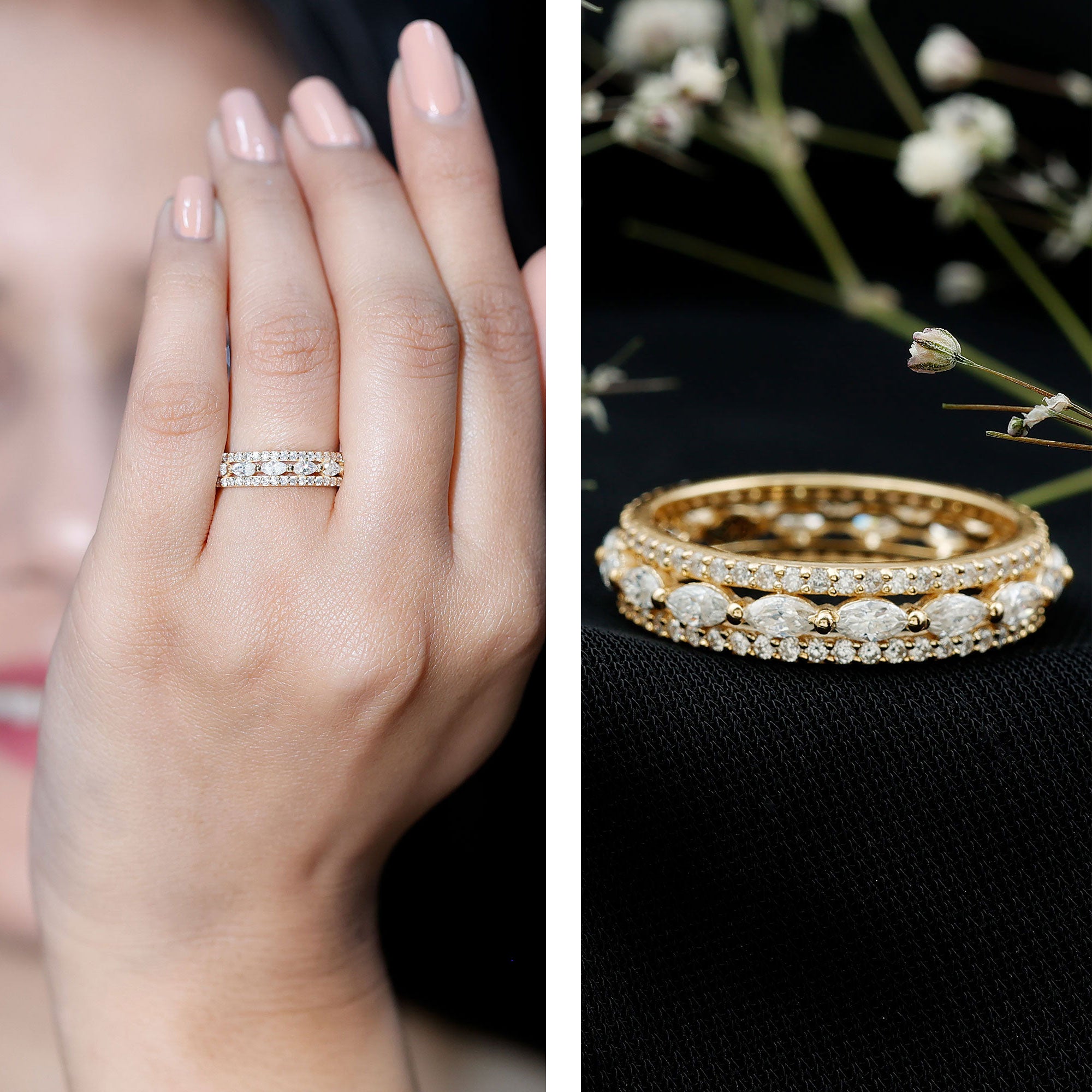 5. Moissanite Bridal Ring Sets: One of the popular choices for engagements and weddings is you can buy a ring set. The Bridal Ring Set is the perfect stacking combination of engagement rings and moissanite wedding rings. Two different styles create sets of rings that look premium and classy. The wedding band compliments the engagement ring and works as an enhancer.