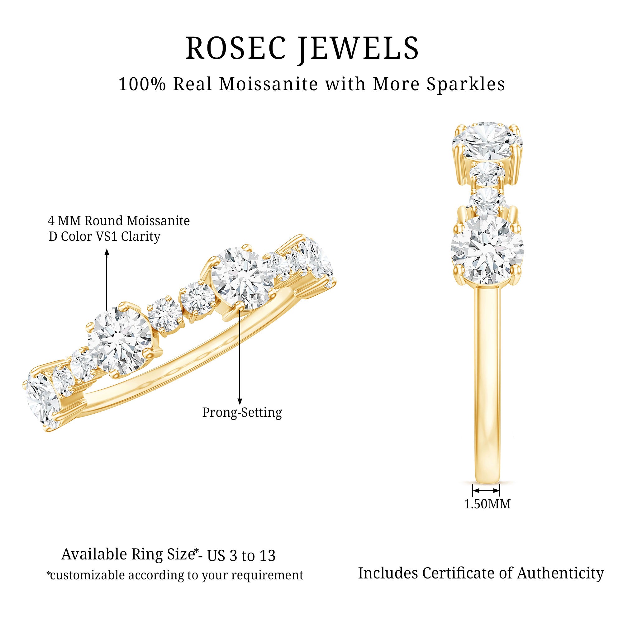 Rosec Jewels handcrafts moissanite wedding ring set with utmost care and perfection that you’ll fall in love with every single piece. The moissanite we choose to mount on men’s and women’s moissanite wedding bands are of highest quality. Moissanite is an ethical stone and now it has been widely accepted for traditional vows. So why don’t you witness the moissanite love in person?