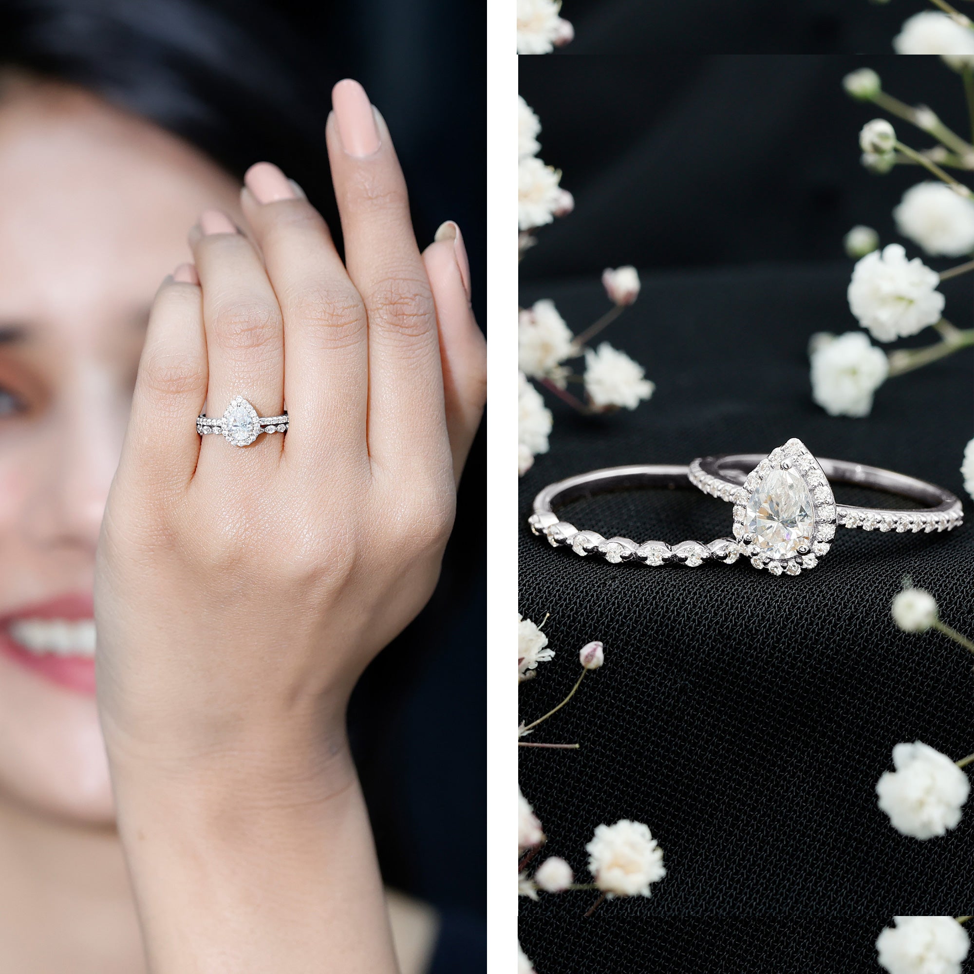 Moissanite Engagement rings indicates the proposal of marriage while Moissanite wedding bands are exchanged at the wedding ceremony.