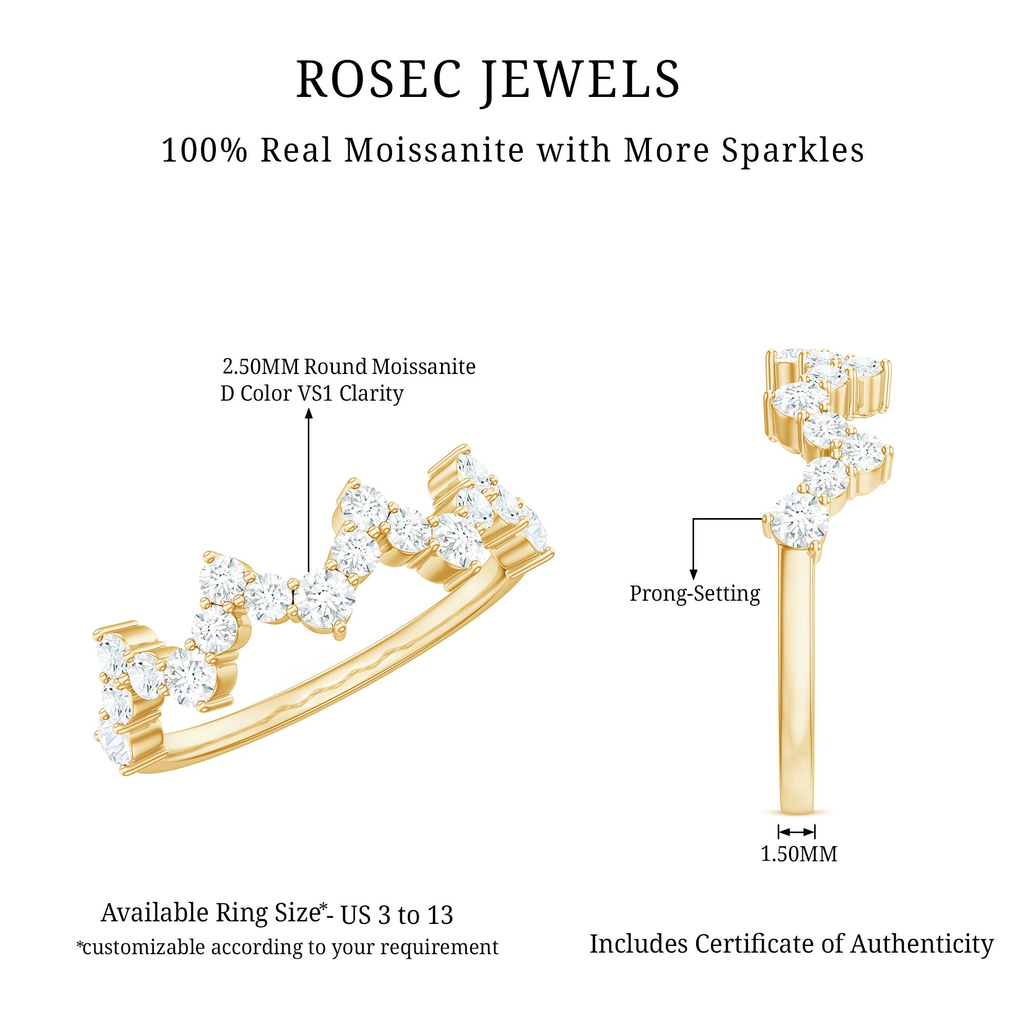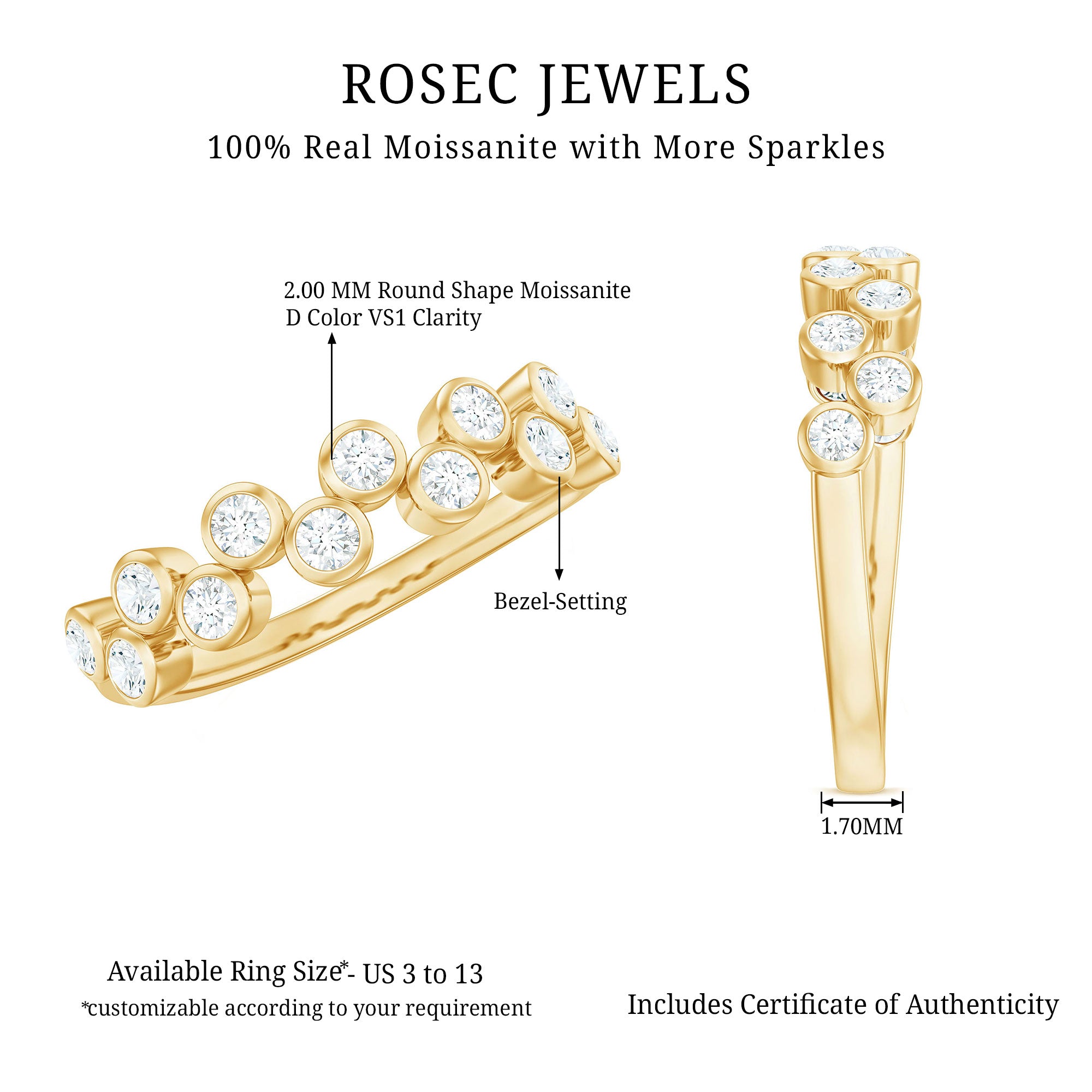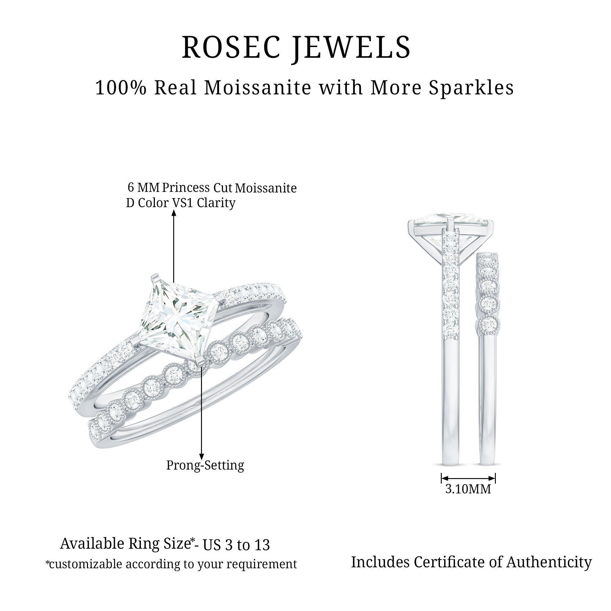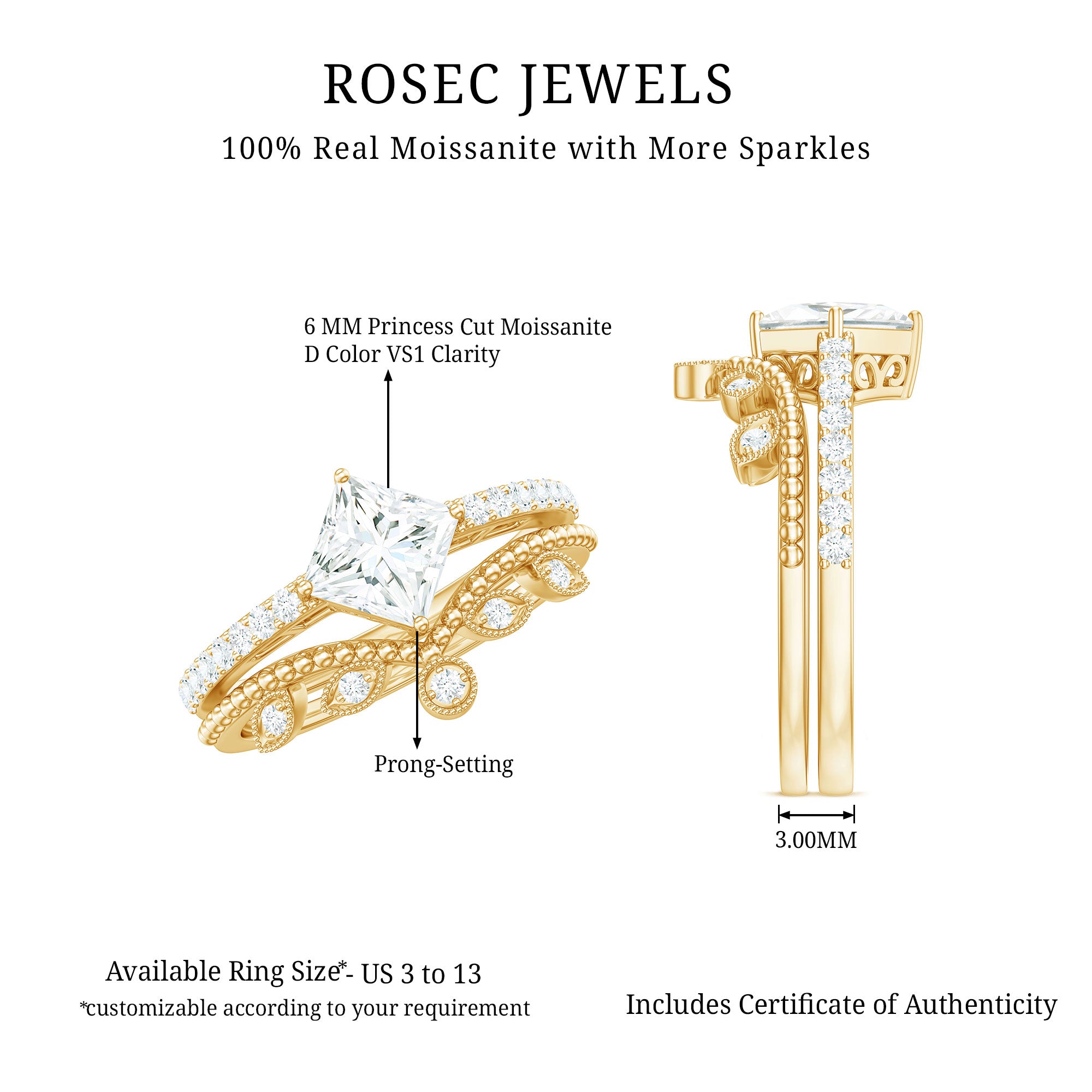 Rosec Jewels handcrafts moissanite wedding ring set with utmost care and perfection that you’ll fall in love with every single piece. The moissanite we choose to mount on men’s and women’s moissanite wedding bands are of highest quality. Moissanite is an ethical stone and now it has been widely accepted for traditional vows. So why don’t you witness the moissanite love in person?