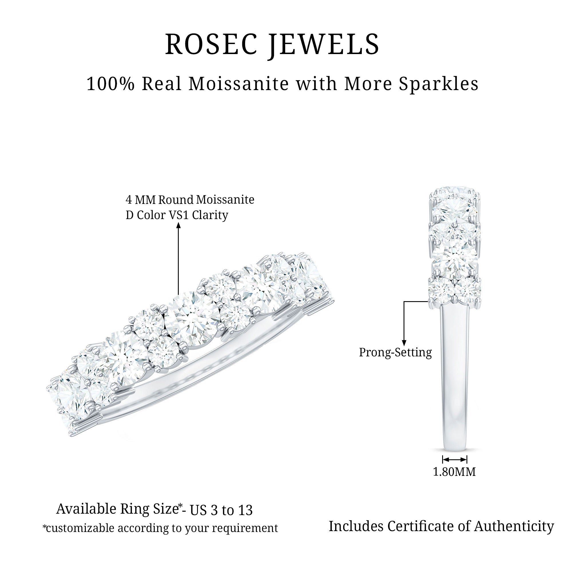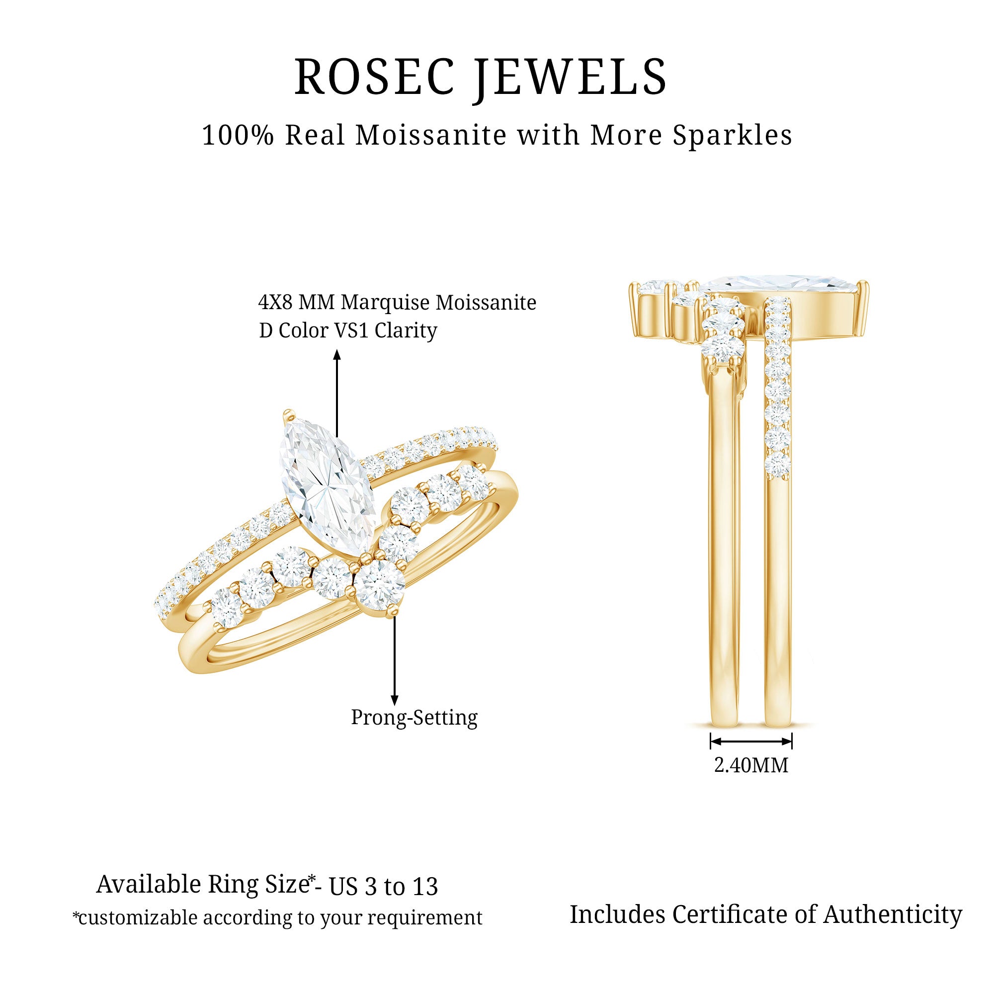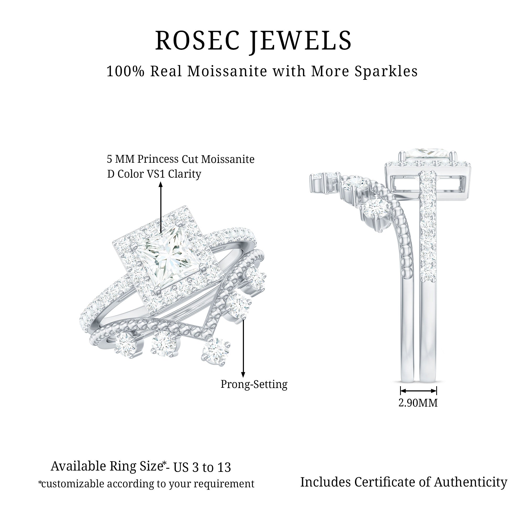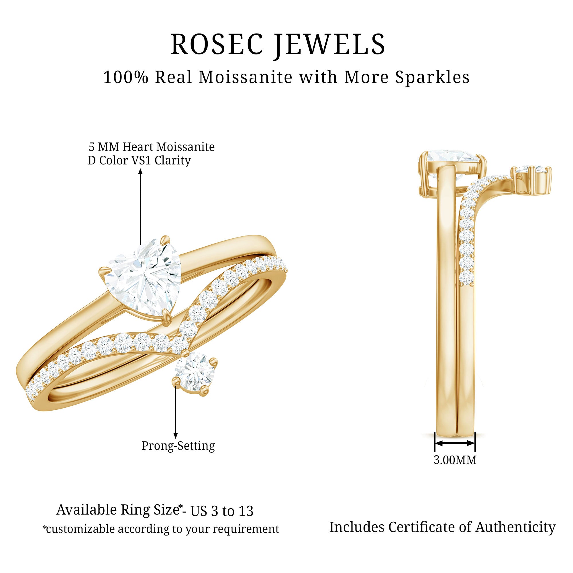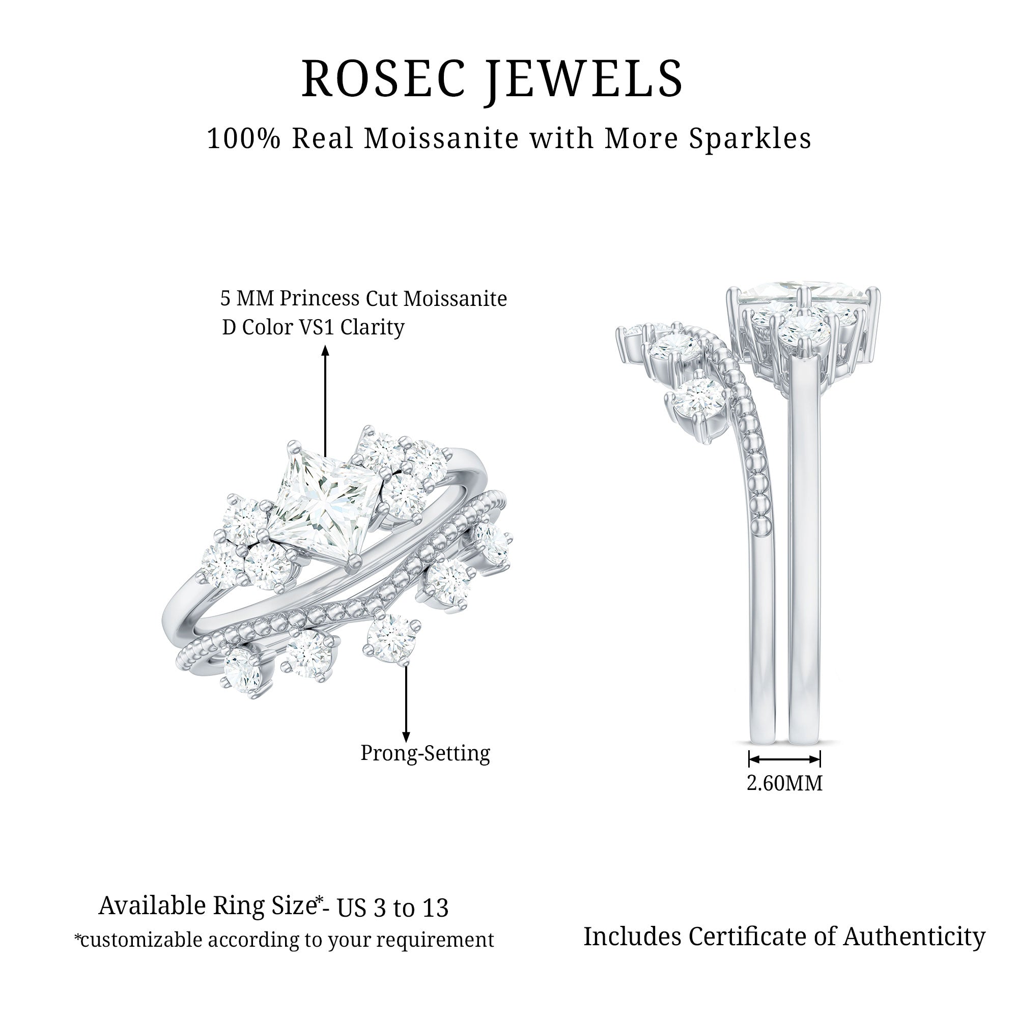 Rosec Jewels handcrafts moissanite wedding ring set with utmost care and perfection that you’ll fall in love with every single piece. The moissanite we choose to mount on men’s and women’s moissanite wedding bands are of highest quality. Moissanite is an ethical stone and now it has been widely accepted for traditional vows. So why don’t you witness the moissanite love in person?