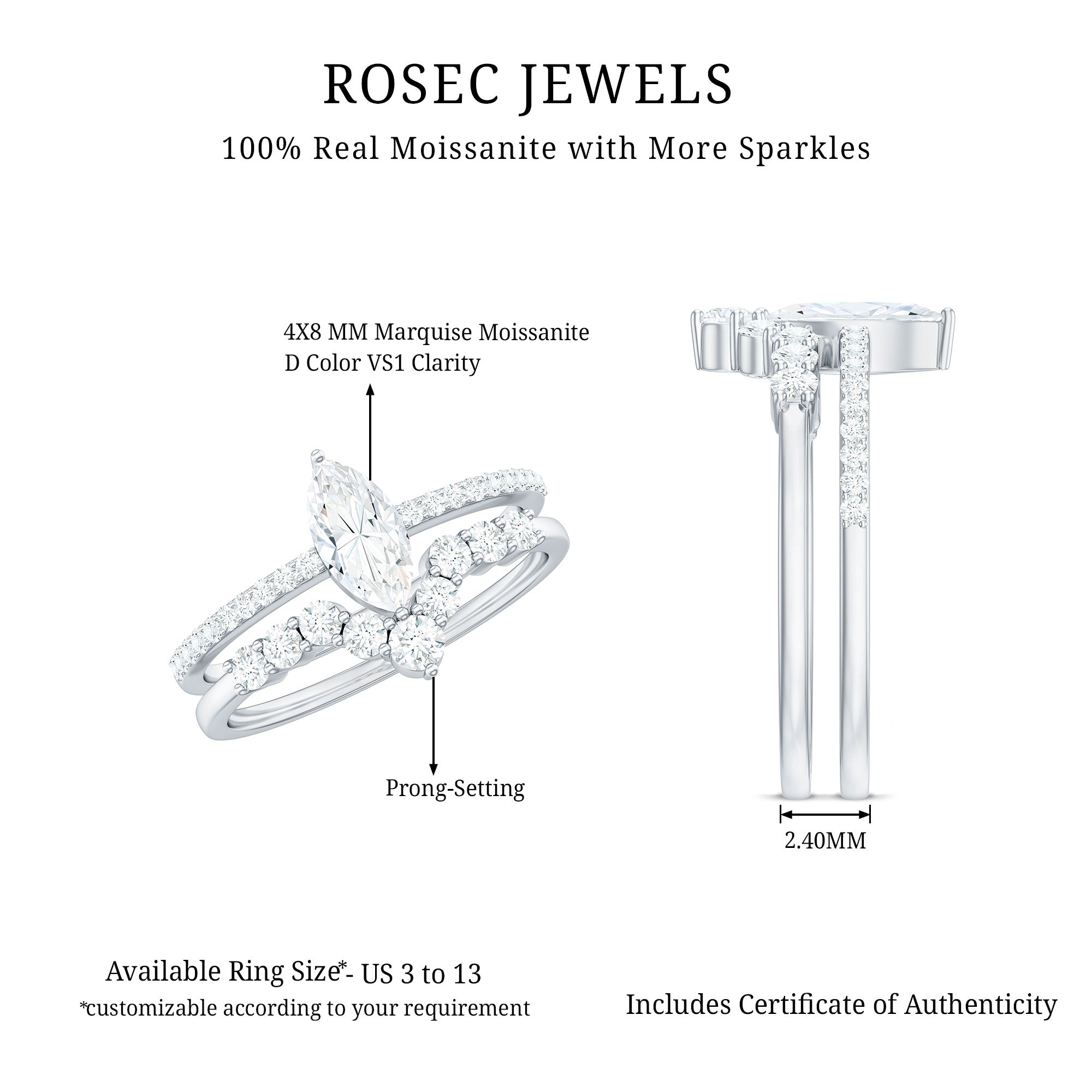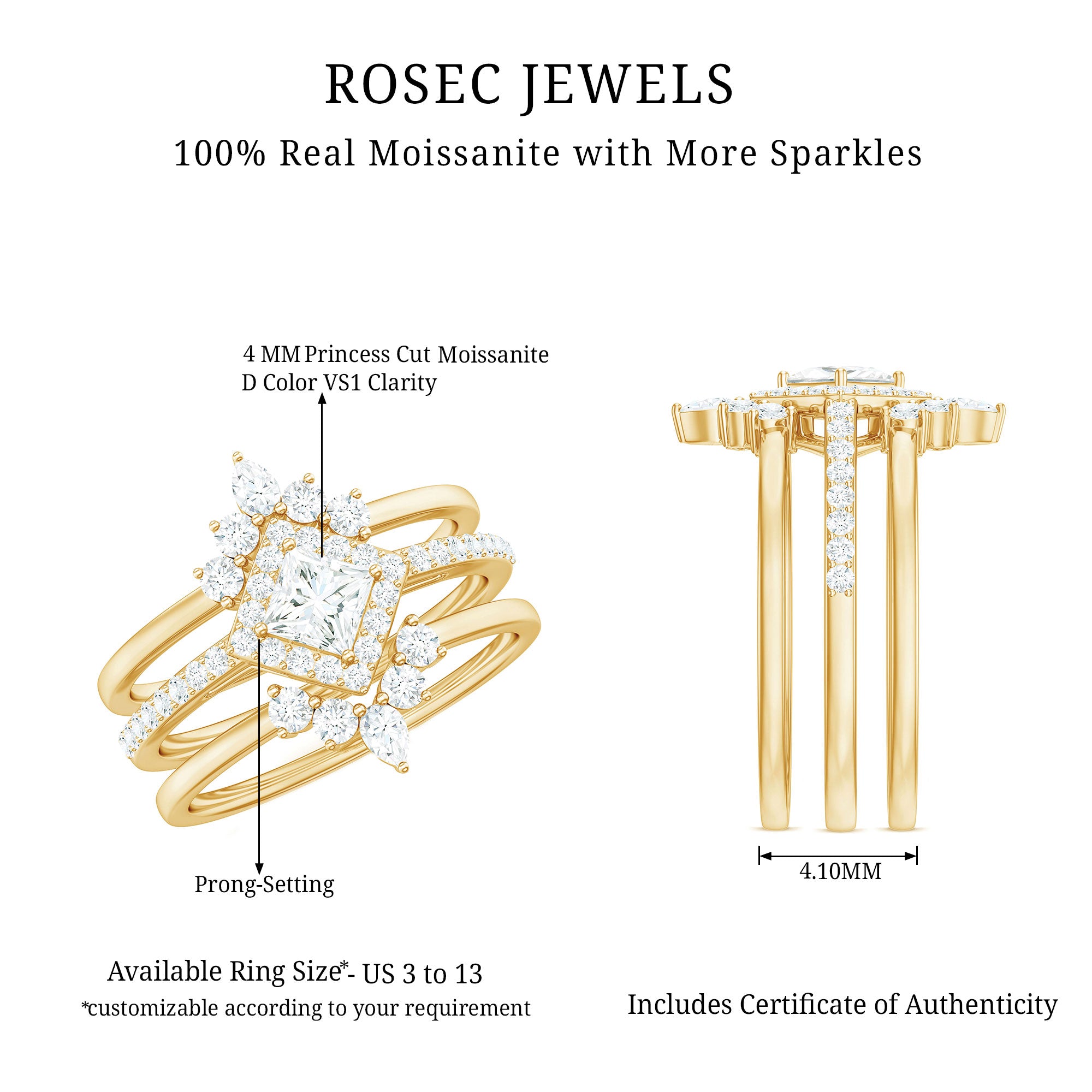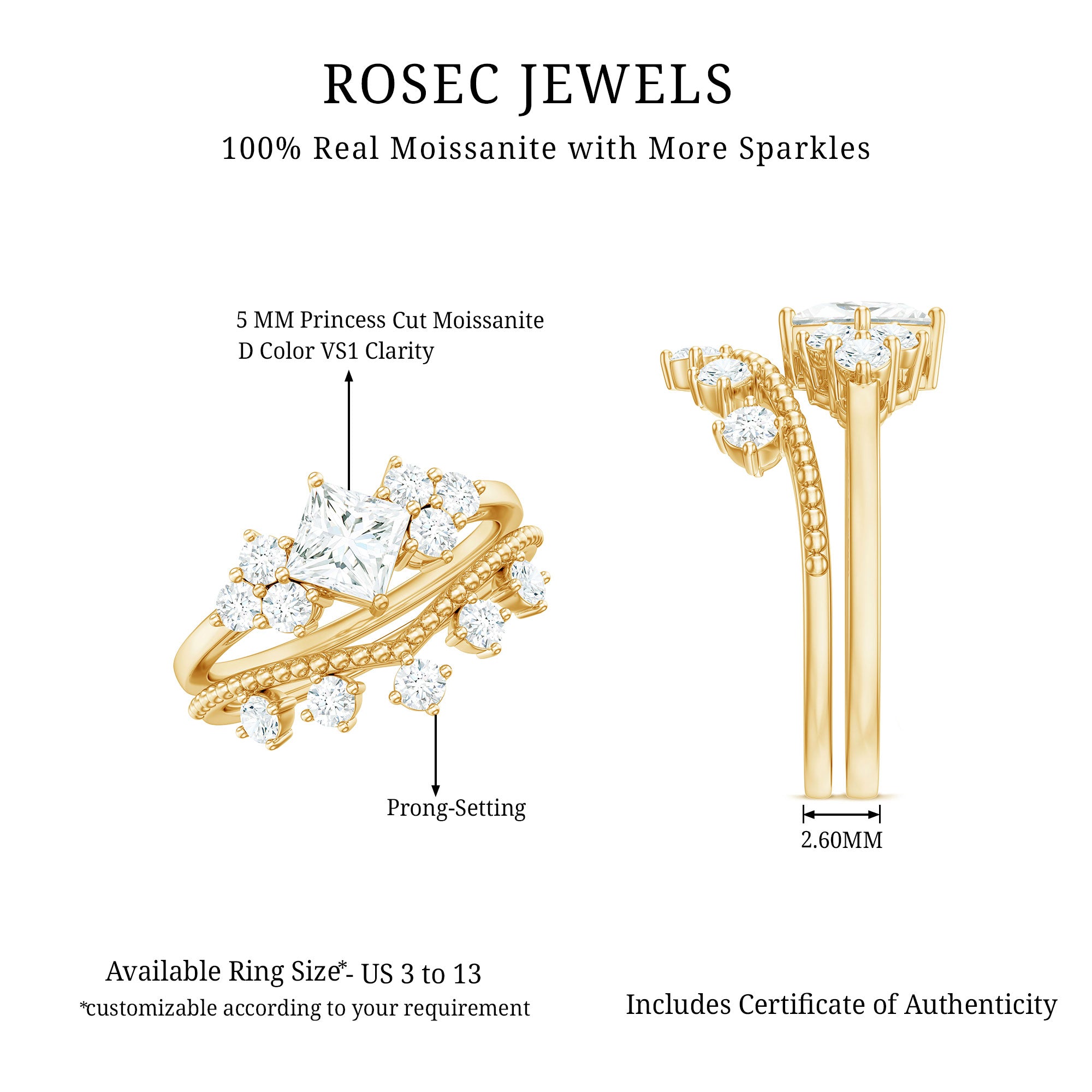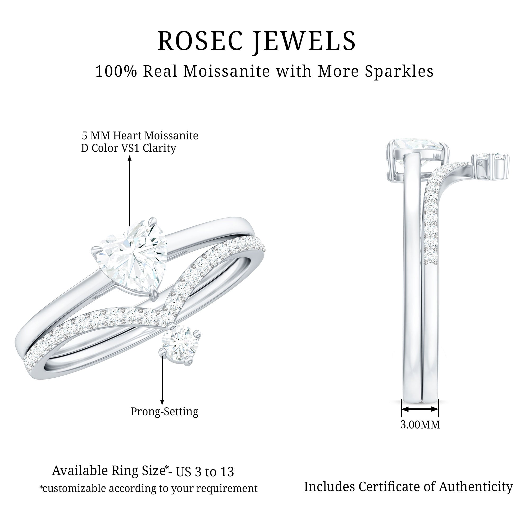 Rosec Jewels handcrafts moissanite wedding ring set with utmost care and perfection that you’ll fall in love with every single piece. The moissanite we choose to mount on men’s and women’s moissanite wedding bands are of highest quality. Moissanite is an ethical stone and now it has been widely accepted for traditional vows. So why don’t you witness the moissanite love in person?
