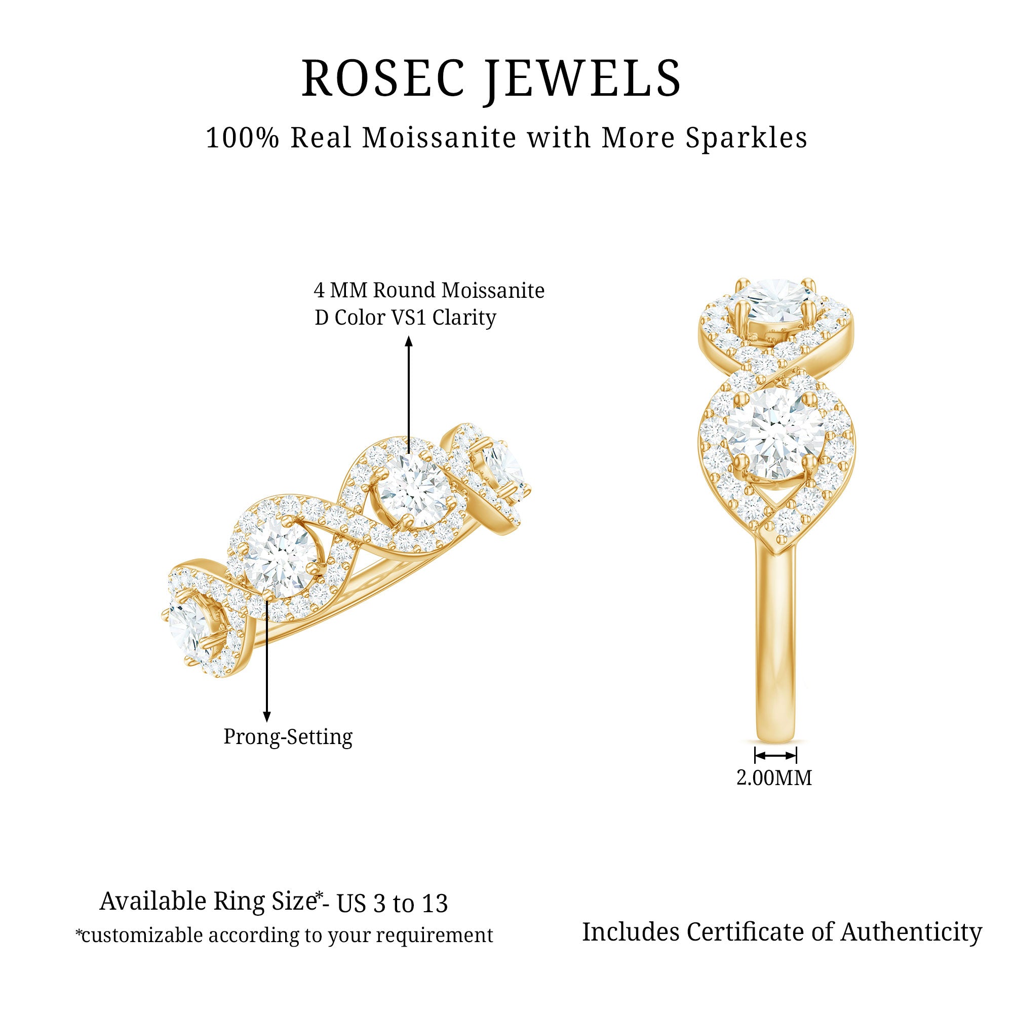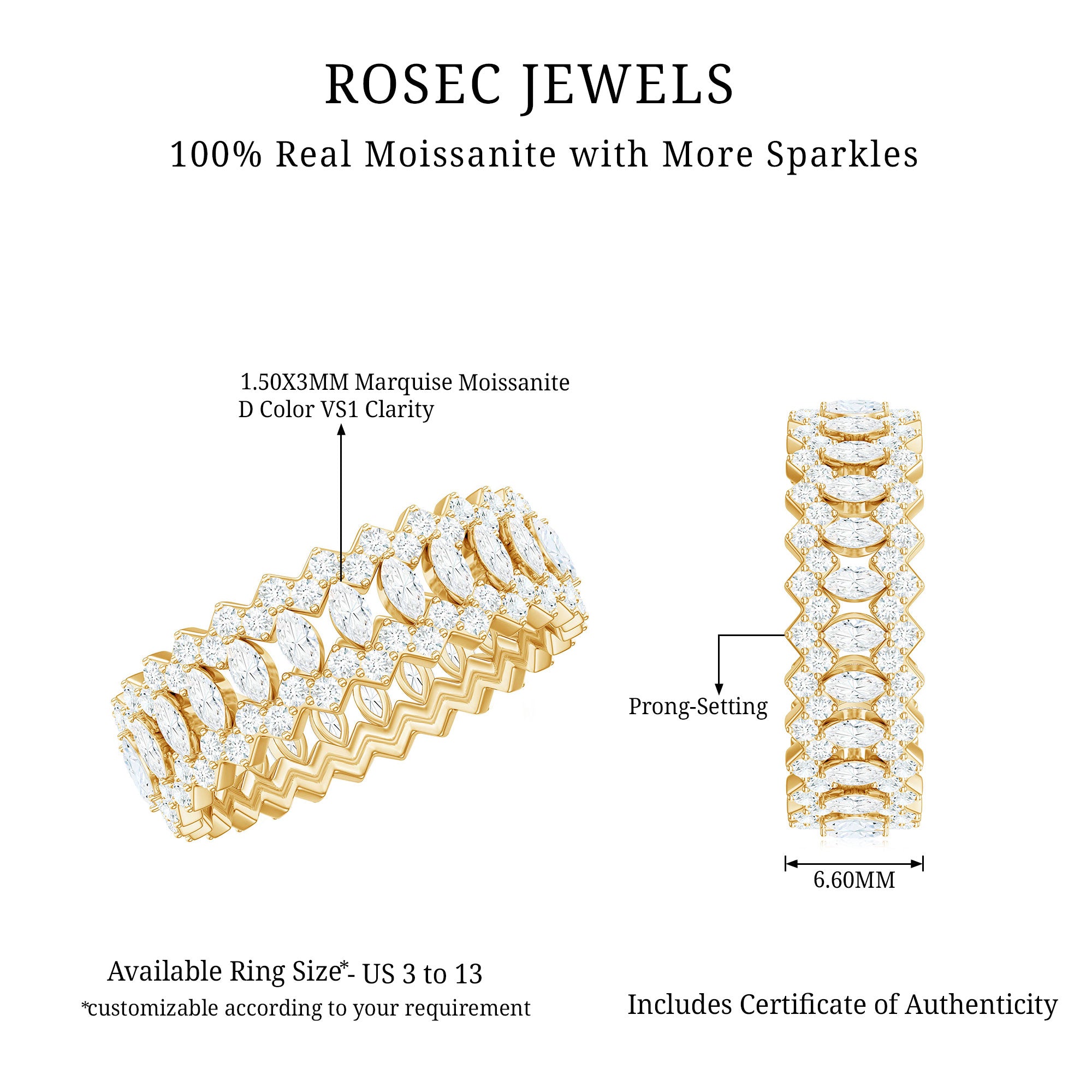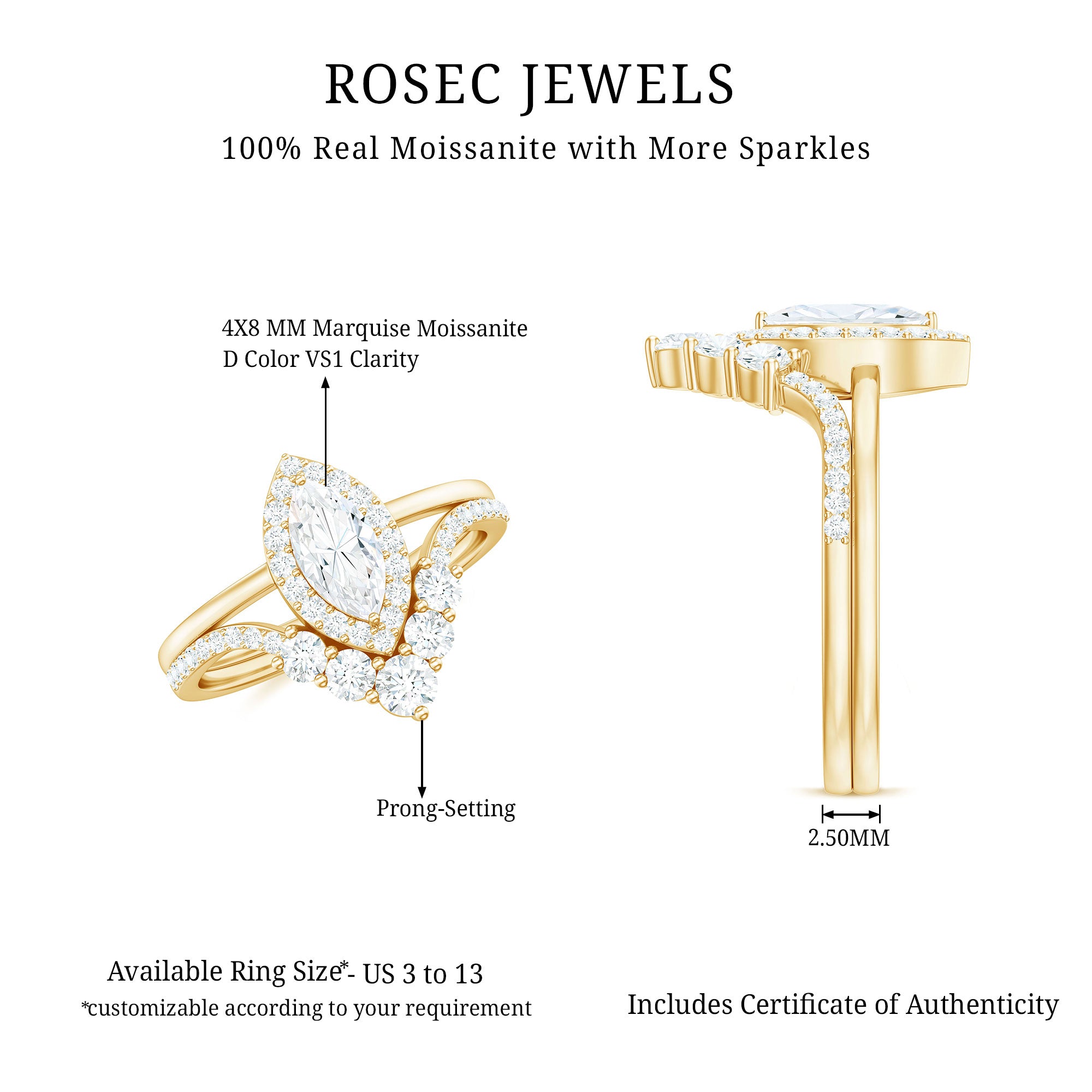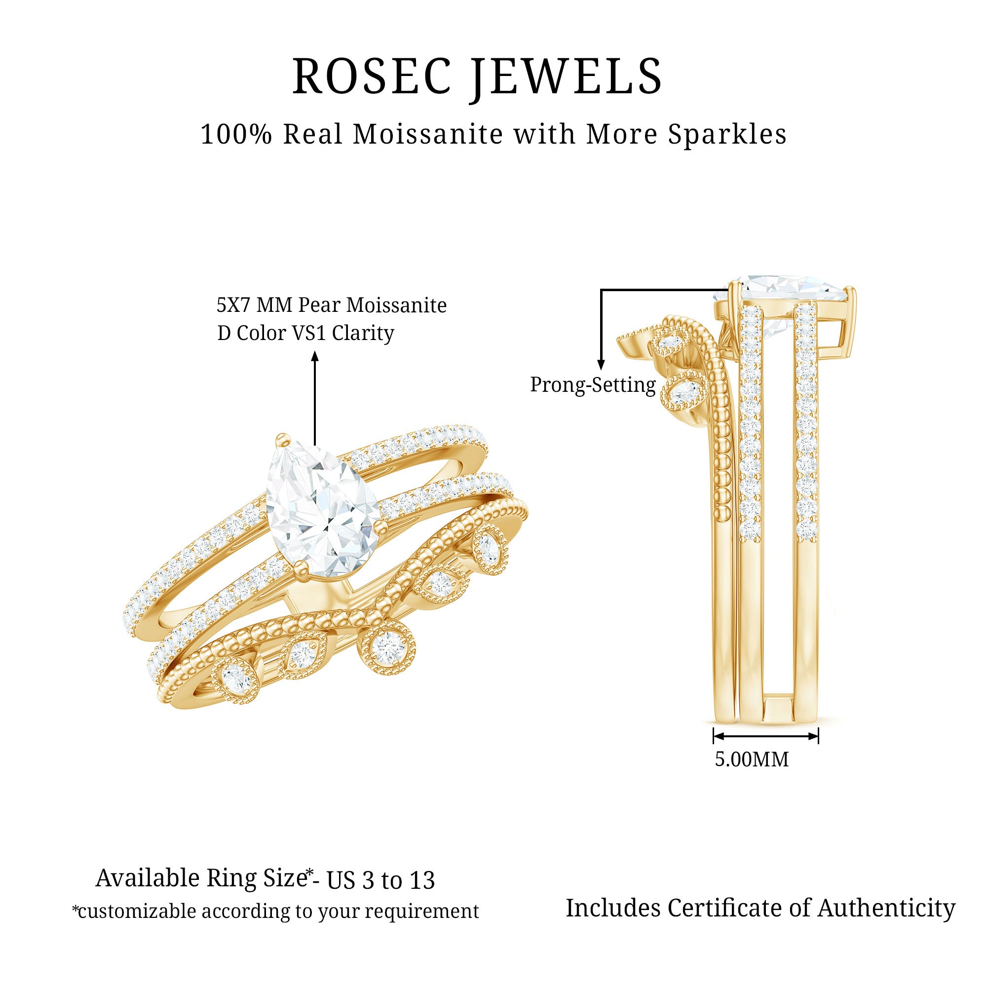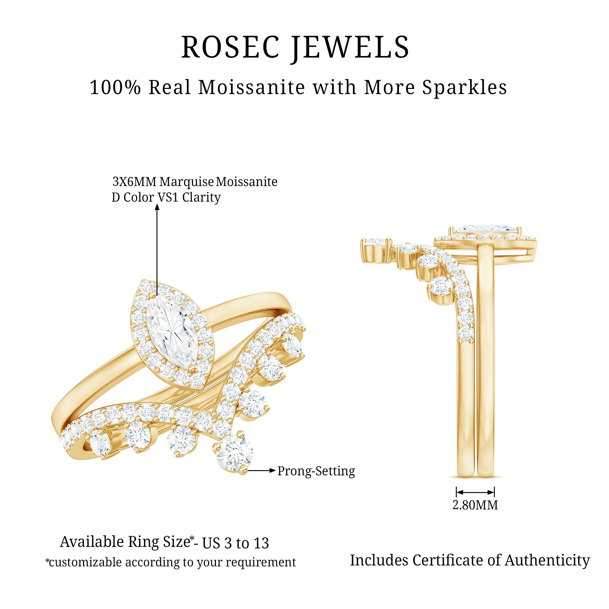 Rosec Jewels handcrafts moissanite wedding ring set with utmost care and perfection that you’ll fall in love with every single piece. The moissanite we choose to mount on men’s and women’s moissanite wedding bands are of highest quality. Moissanite is an ethical stone and now it has been widely accepted for traditional vows. So why don’t you witness the moissanite love in person?