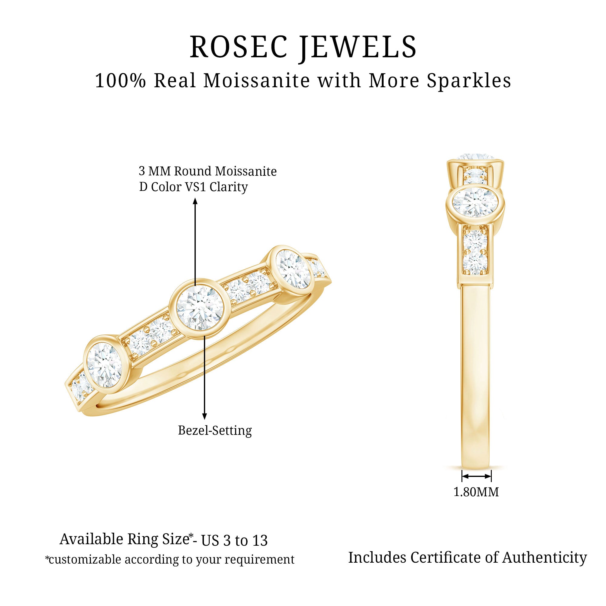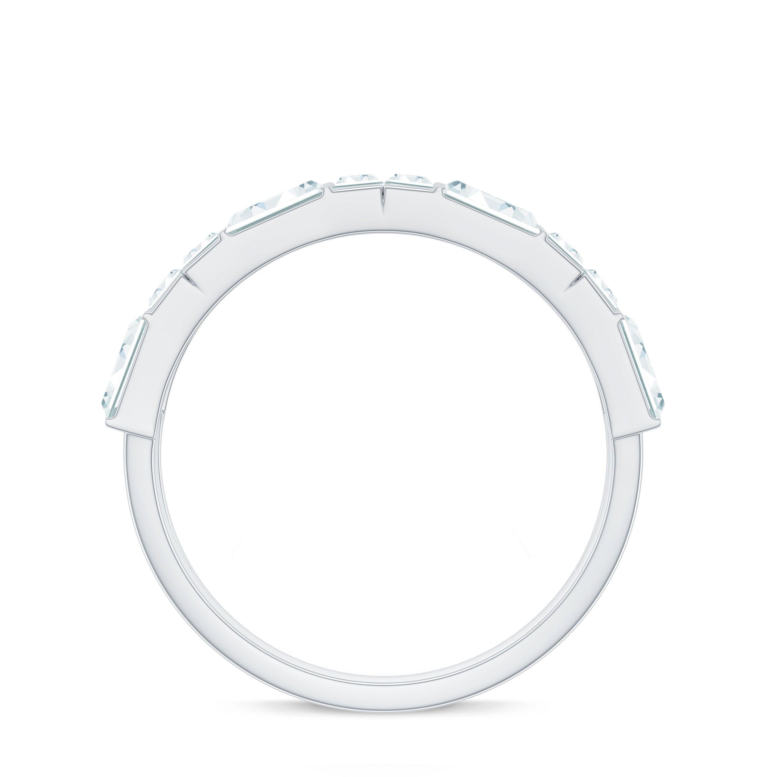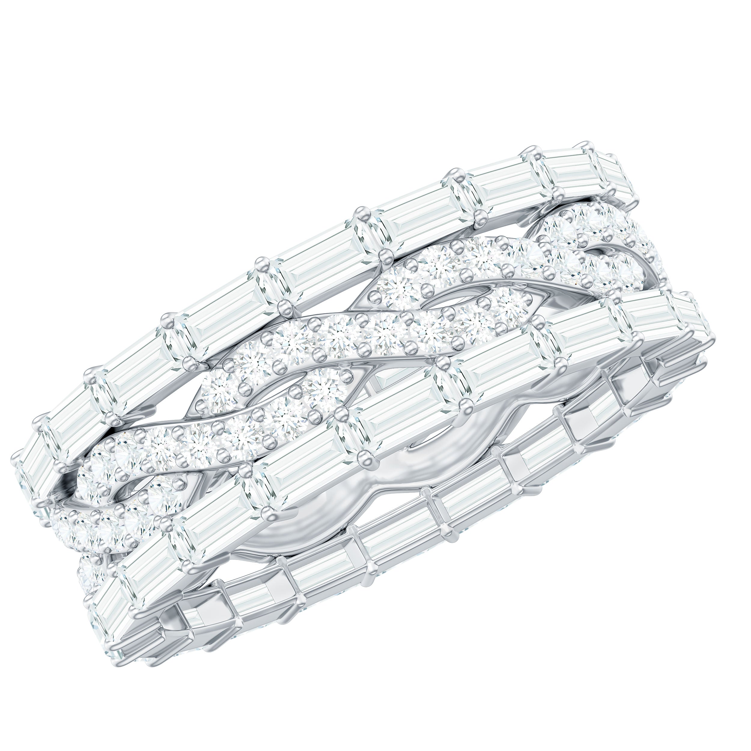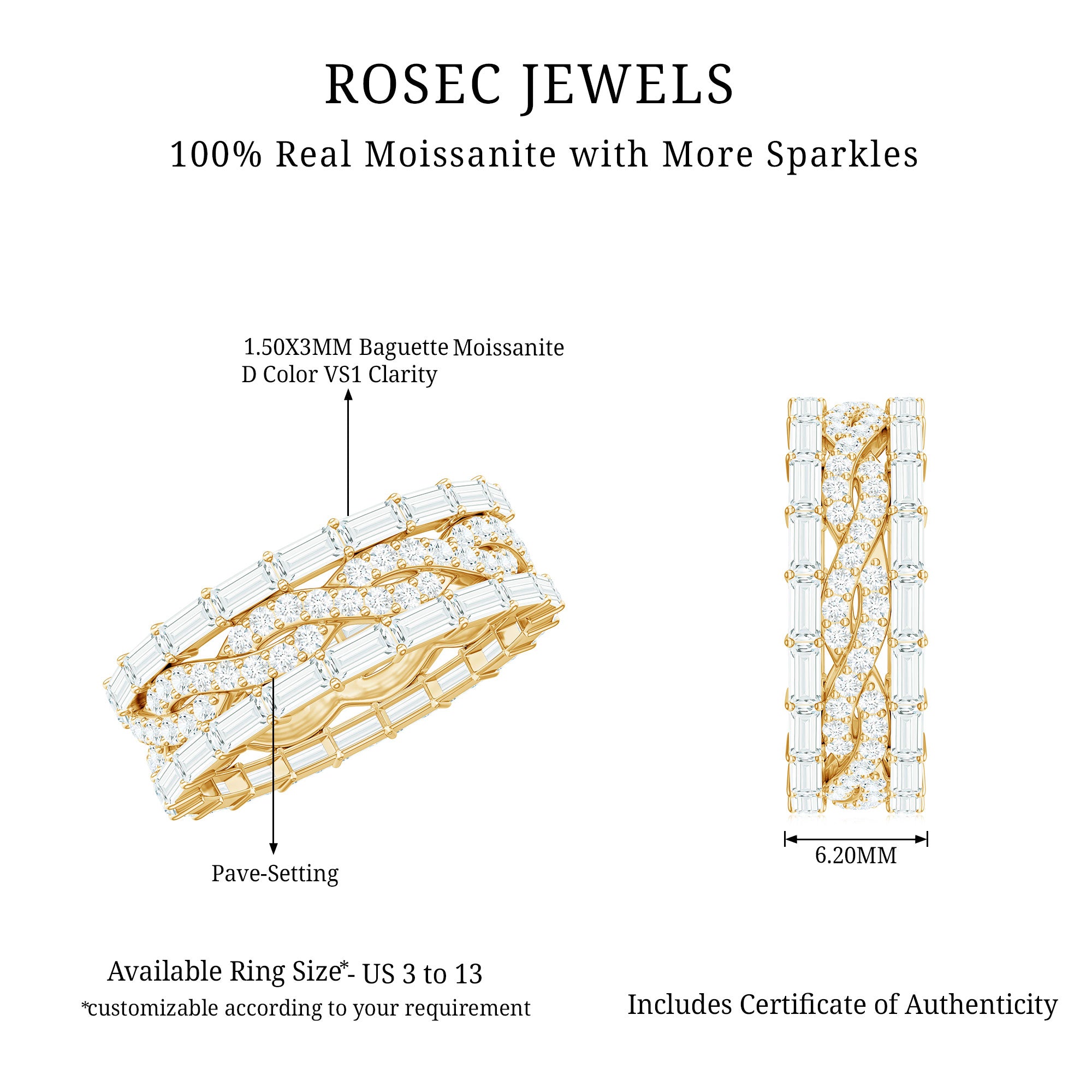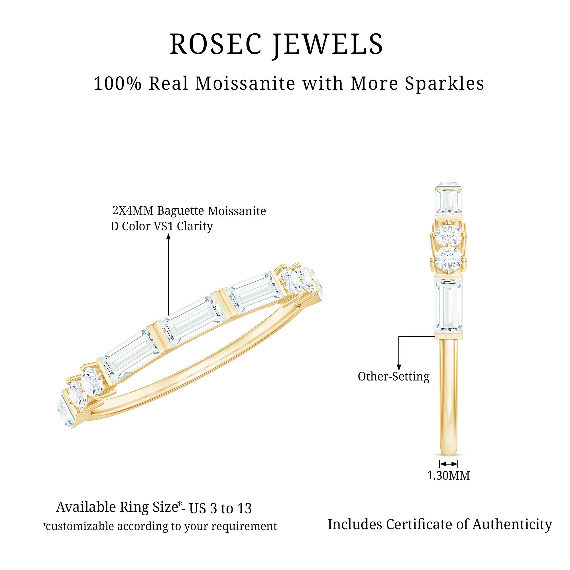 Moissanite is the best alternative to diamond for all the great reasons. The brilliant and fierce moissanite stackable wedding bands can withstand the test of time. Couple are considering moissanite wedding bands leaving behind the diamond ones as moissanite is pretty affordable. Being an Eco-friendly and cruelty-free stone gives moissanite a plus point for sustainability loving brides.