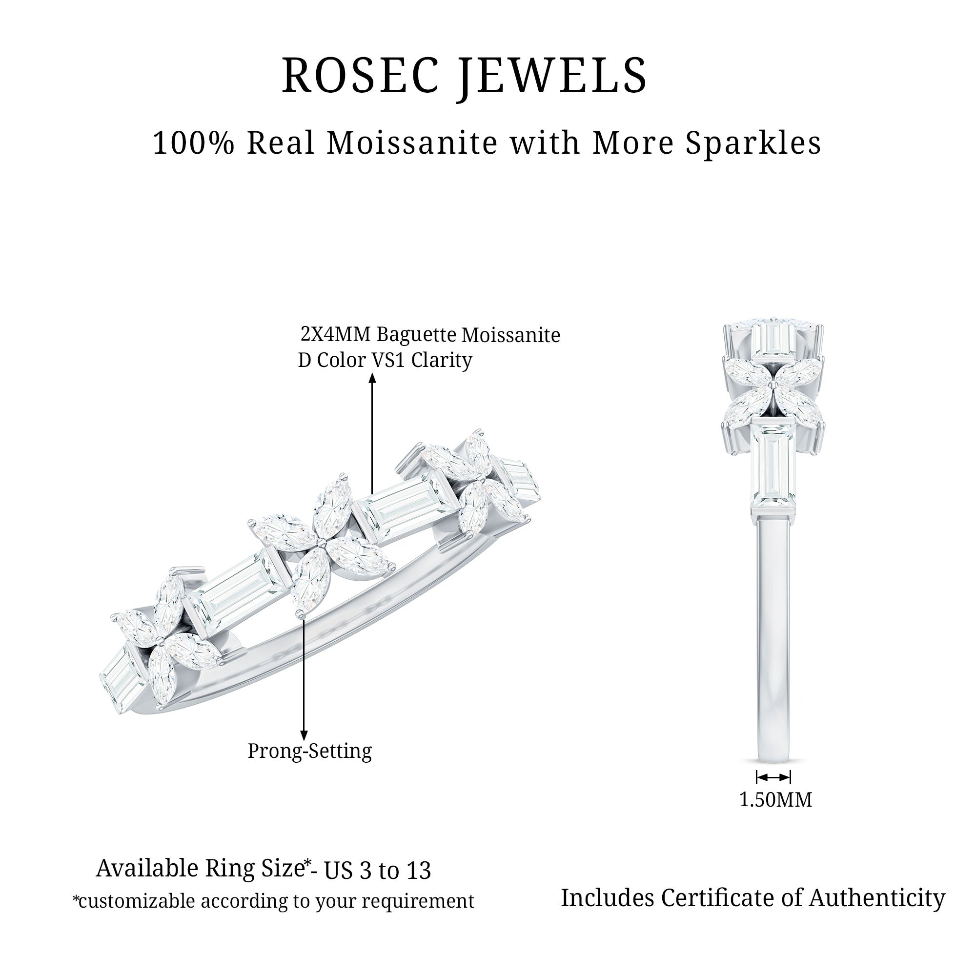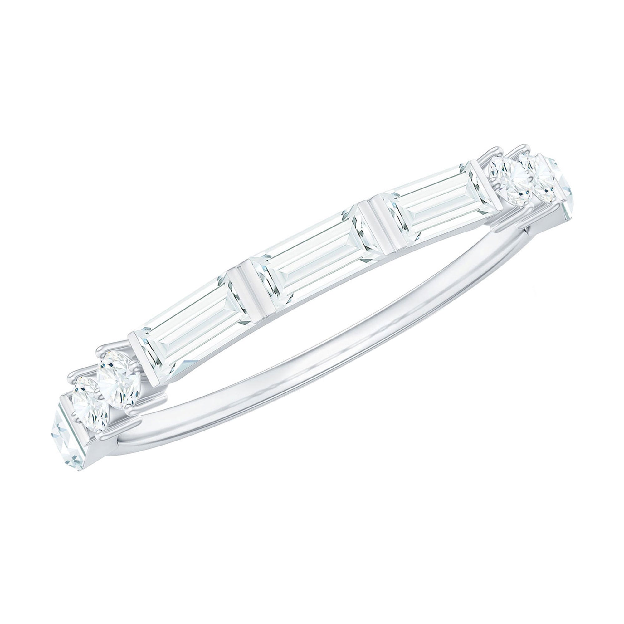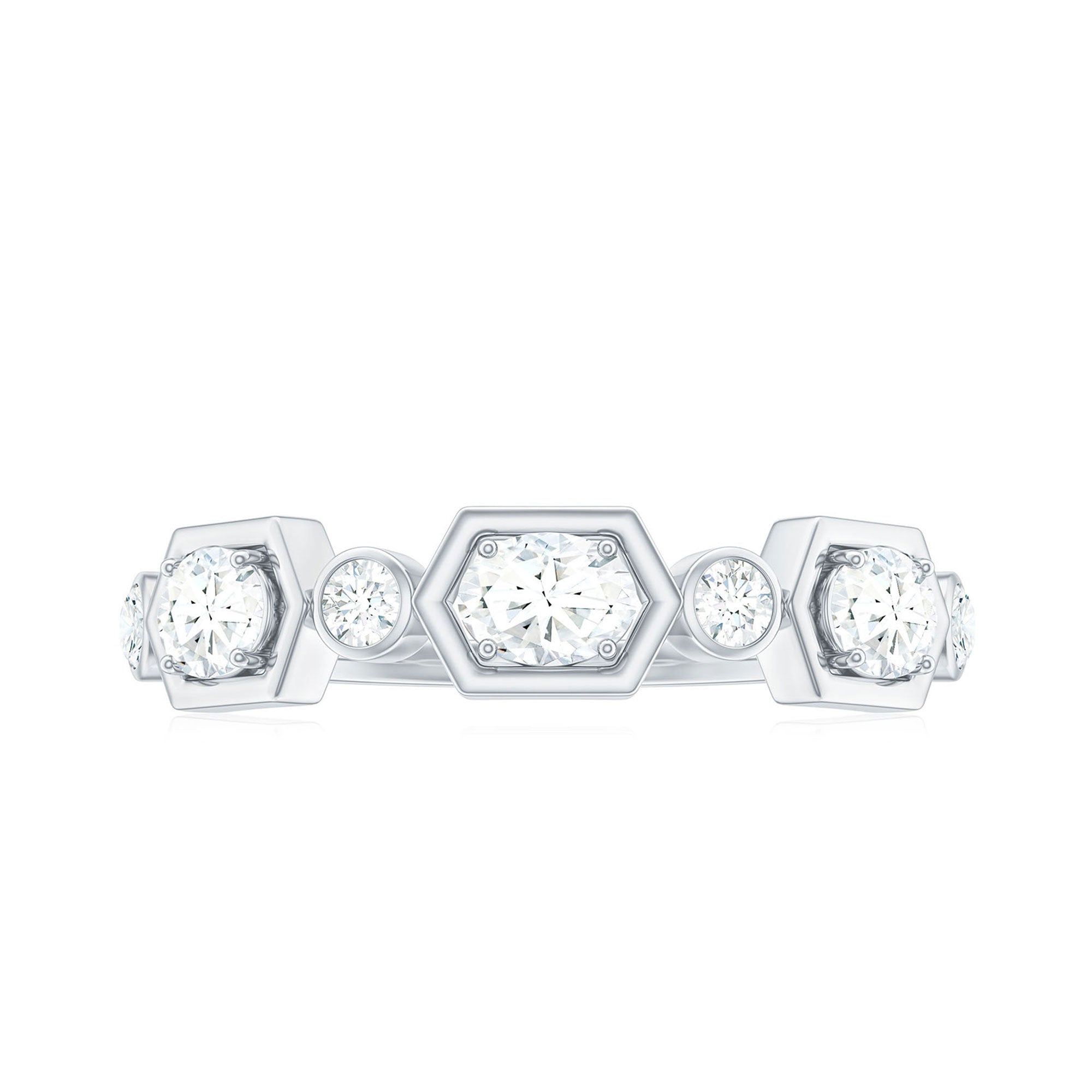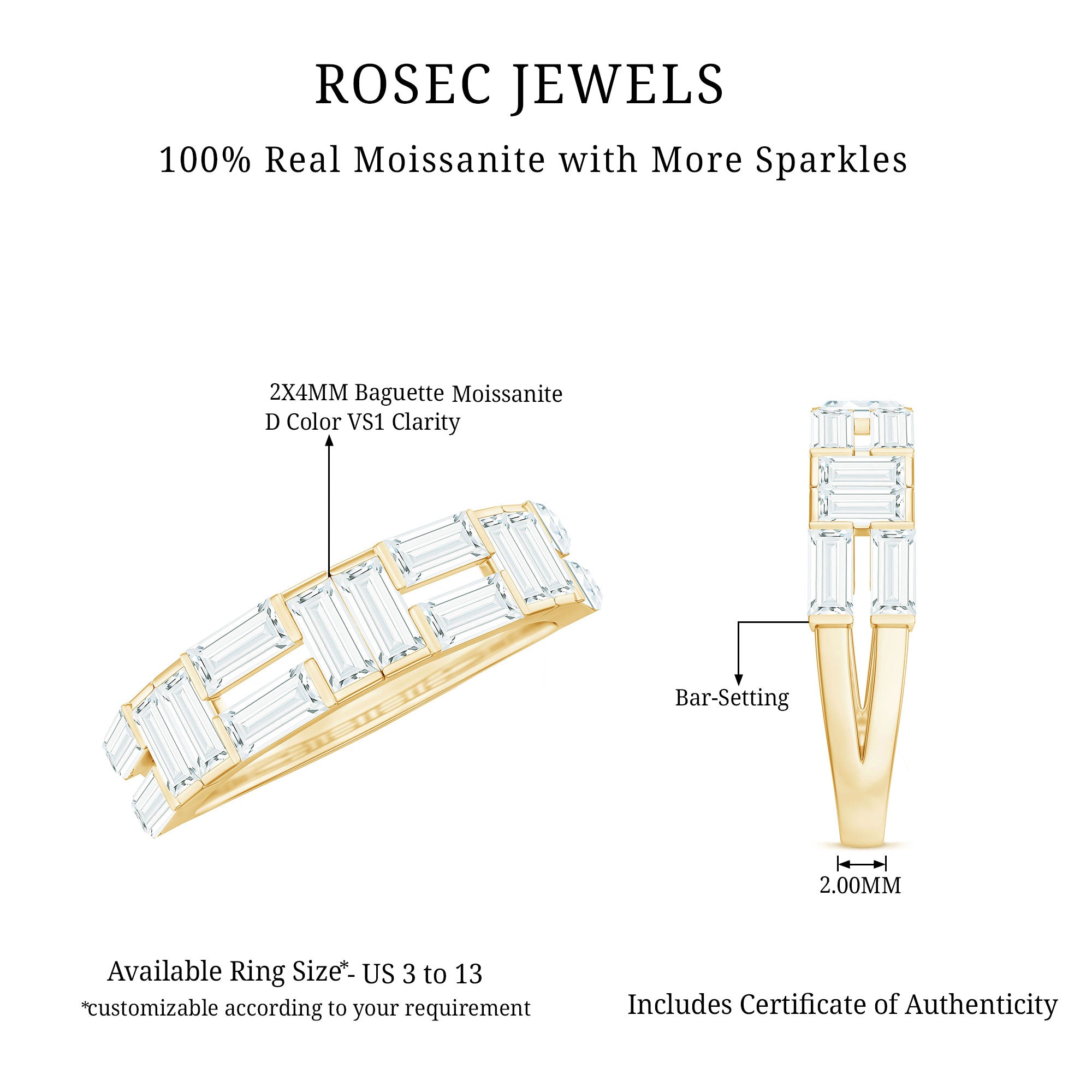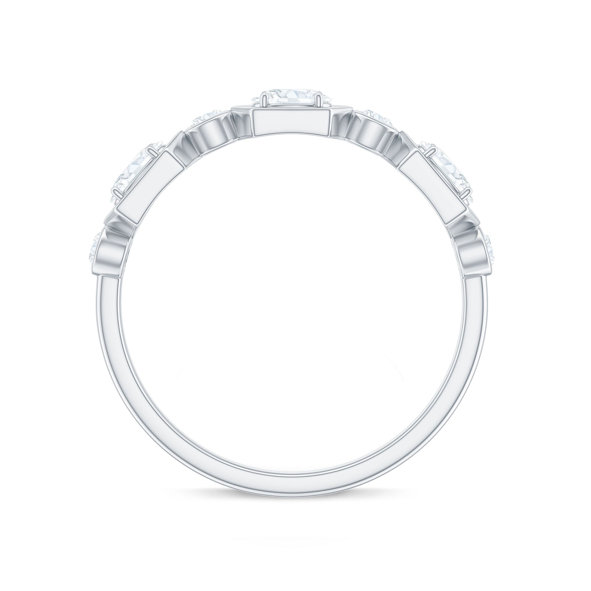 Moissanite is the best alternative to diamond for all the great reasons. The brilliant and fierce moissanite stackable wedding bands can withstand the test of time. Couple are considering moissanite wedding bands leaving behind the diamond ones as moissanite is pretty affordable. Being an Eco-friendly and cruelty-free stone gives moissanite a plus point for sustainability loving brides.