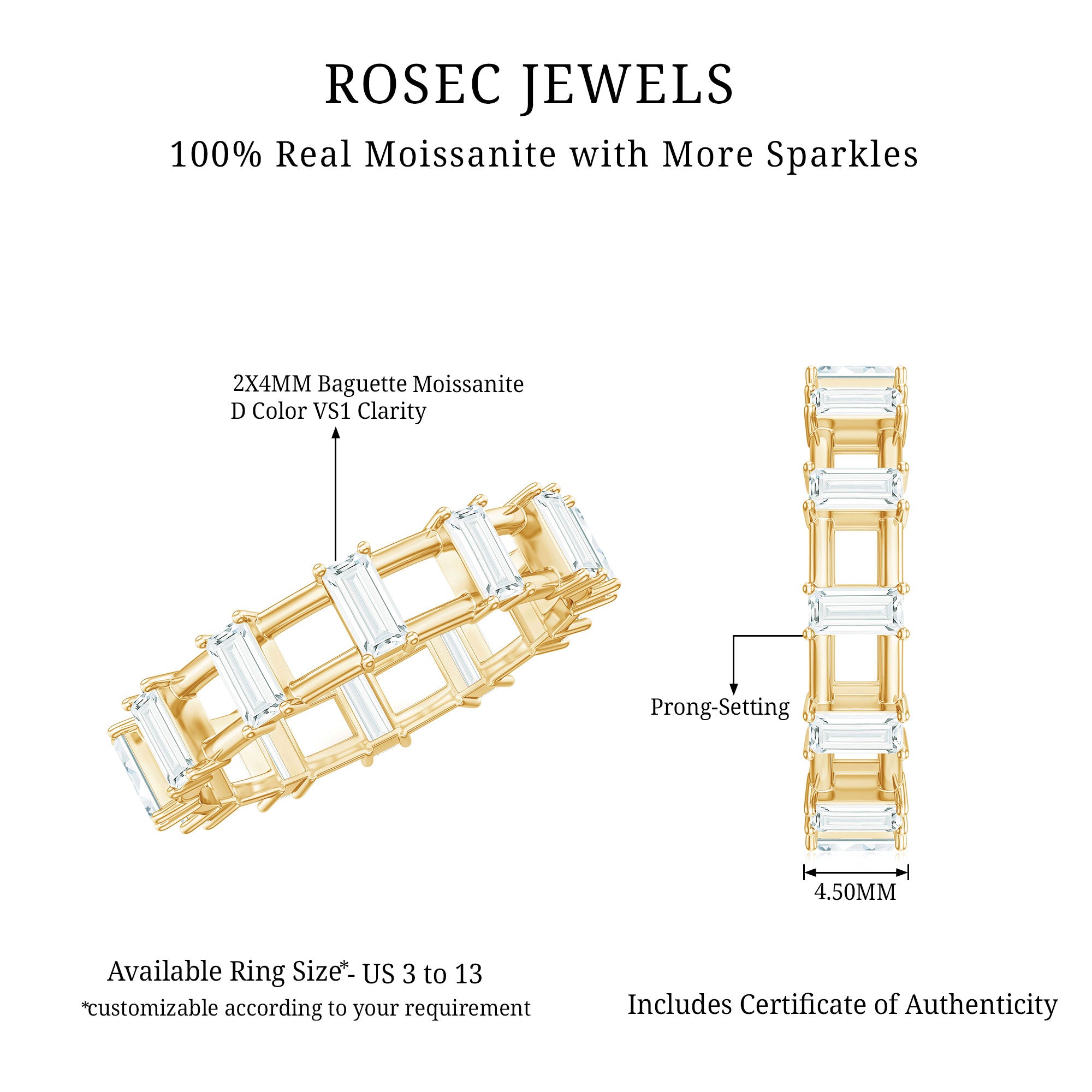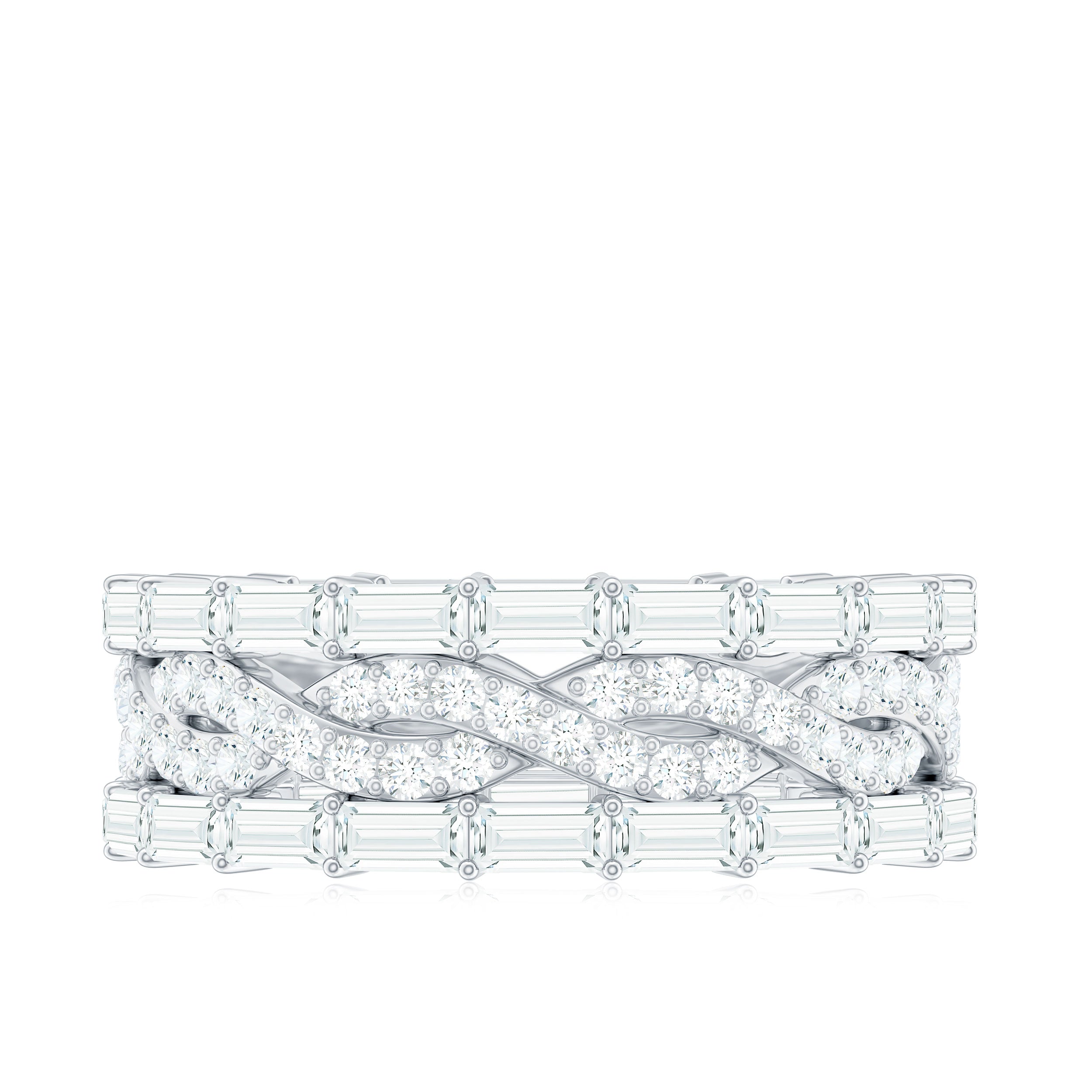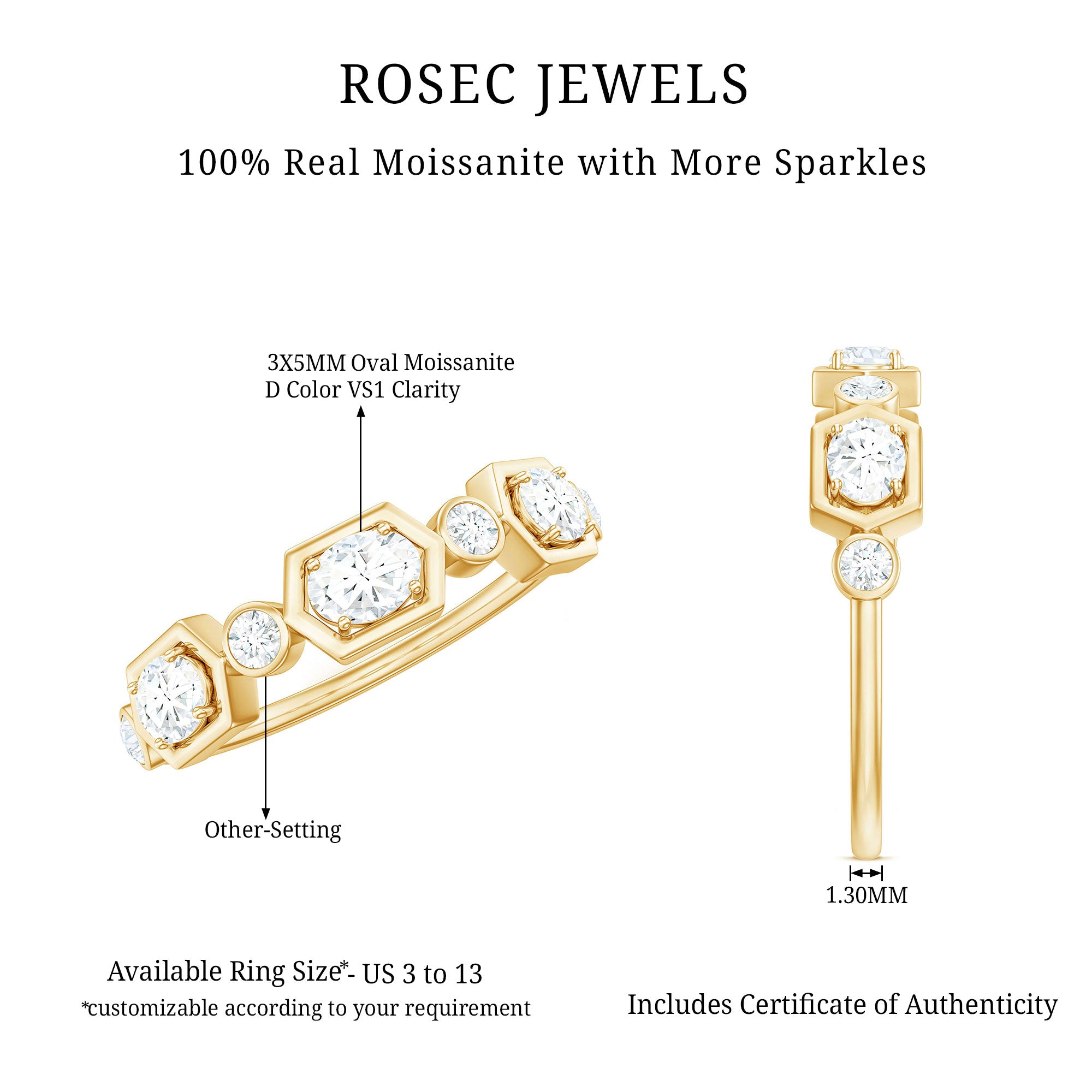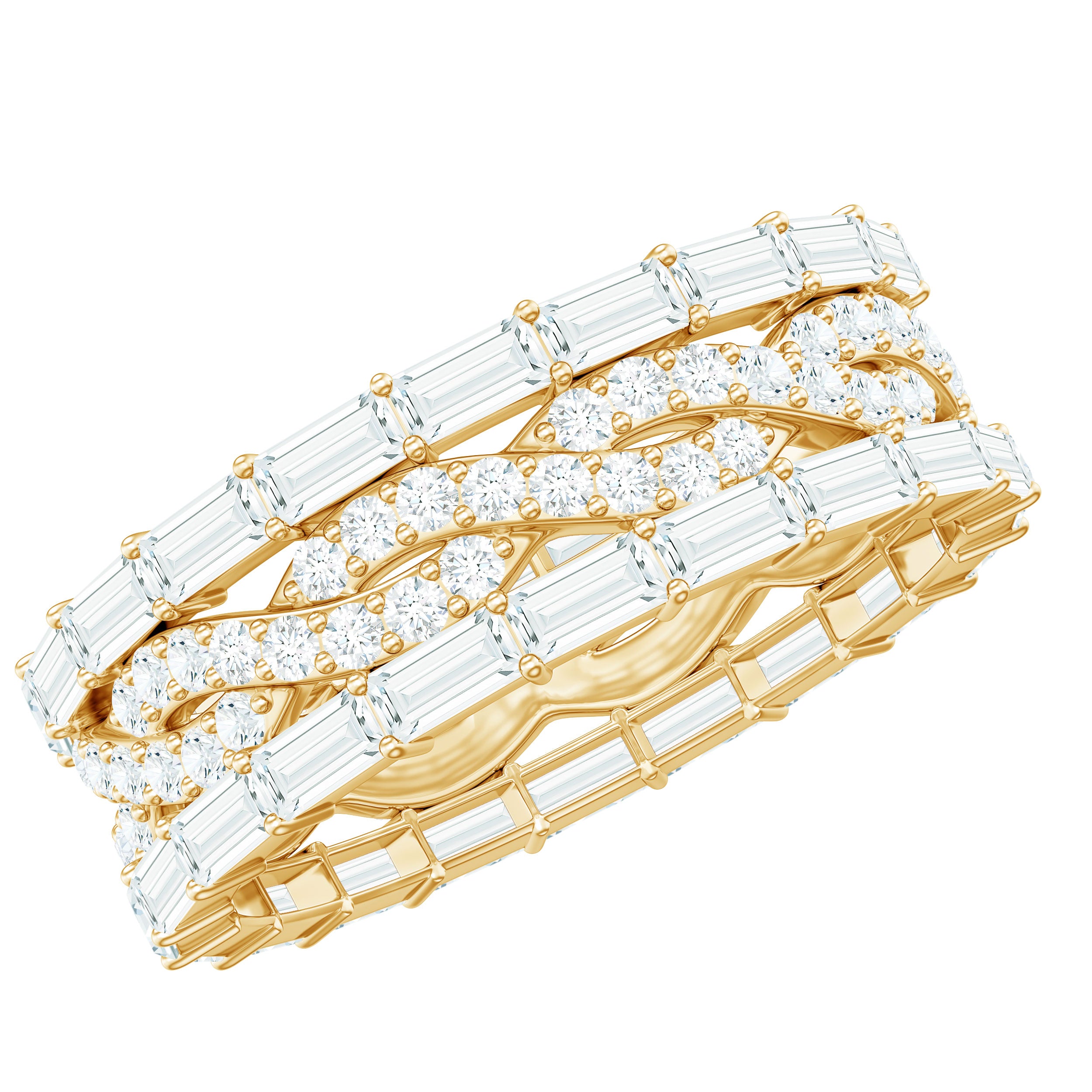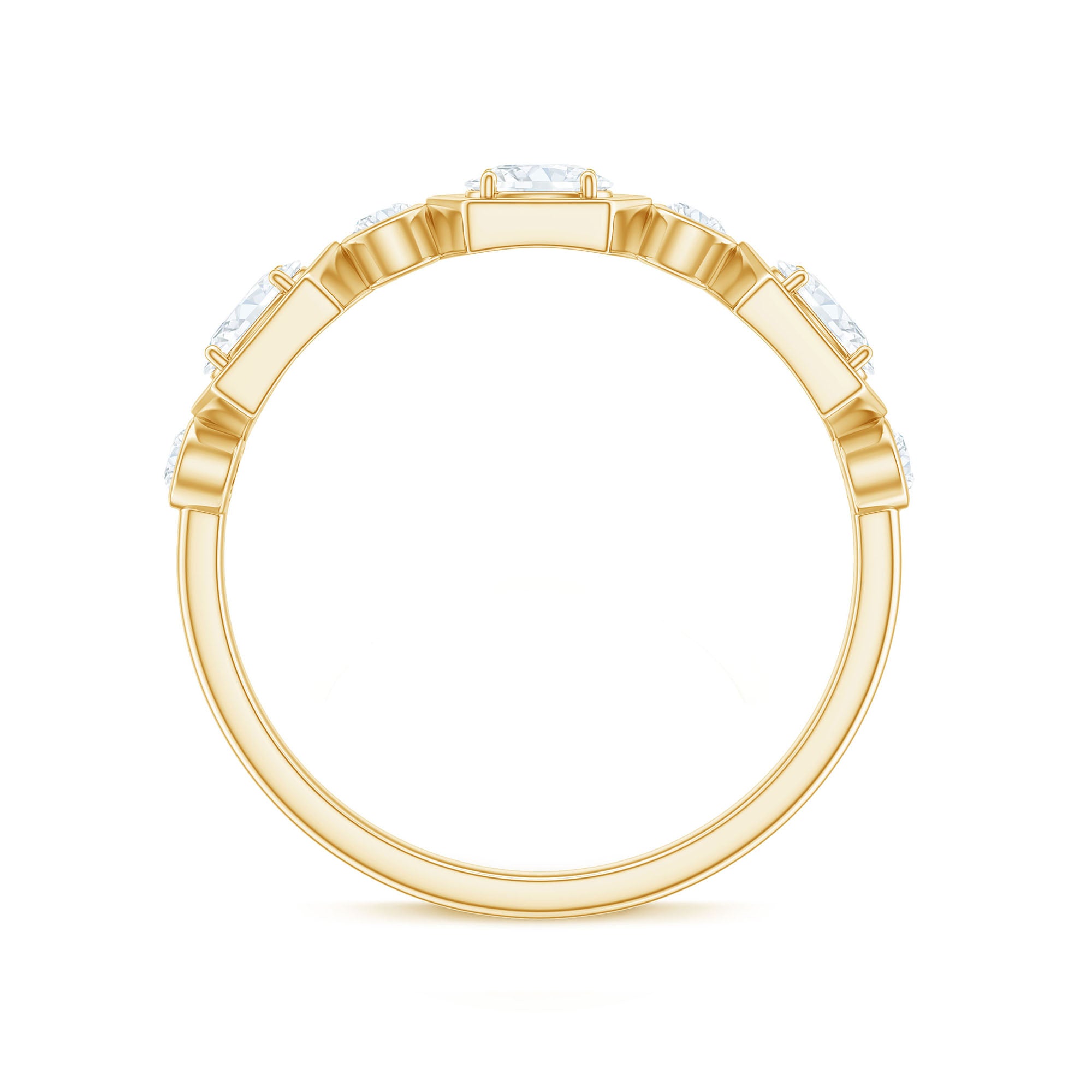 Moissanite is the best alternative to diamond for all the great reasons. The brilliant and fierce moissanite stackable wedding bands can withstand the test of time. Couple are considering moissanite wedding bands leaving behind the diamond ones as moissanite is pretty affordable. Being an Eco-friendly and cruelty-free stone gives moissanite a plus point for sustainability loving brides.