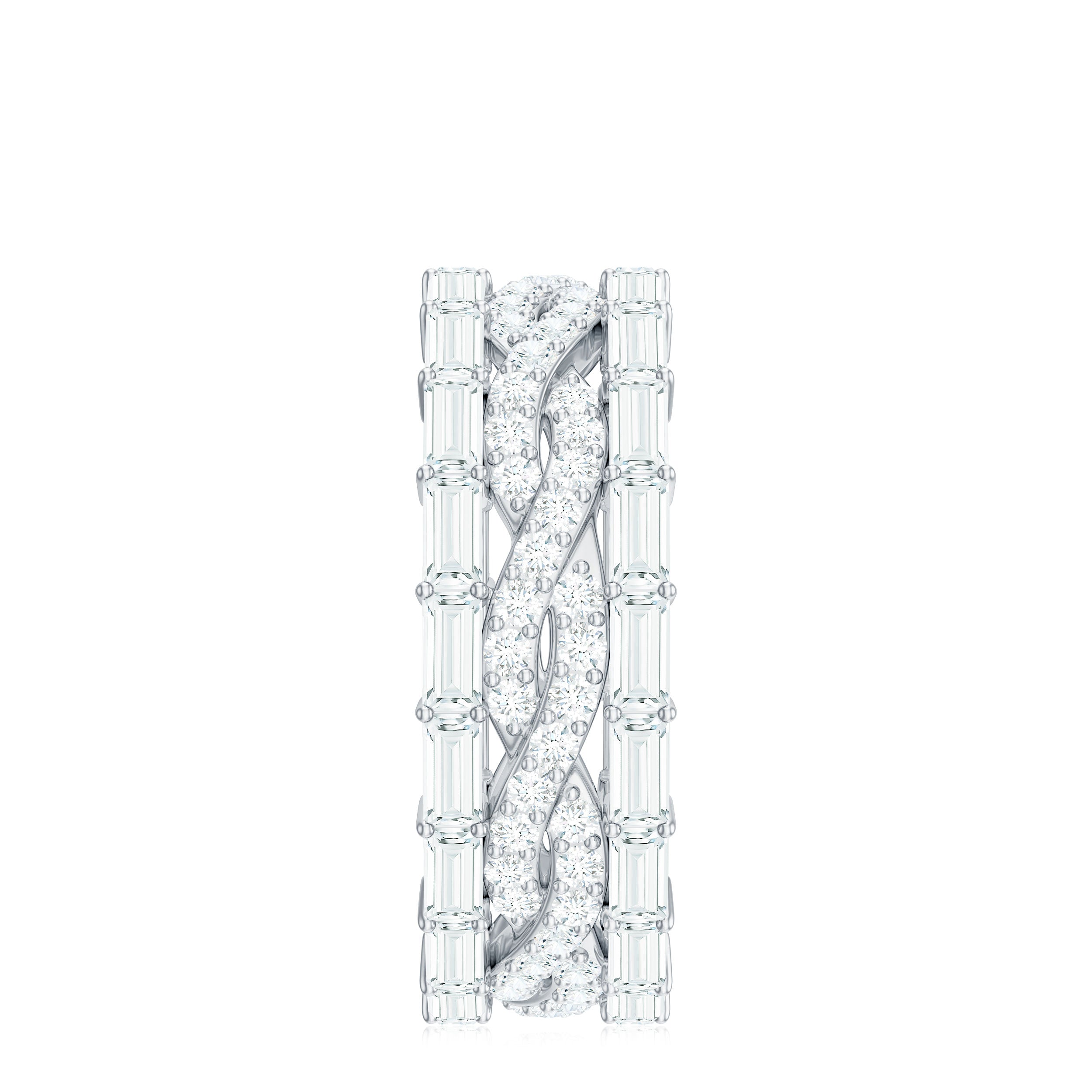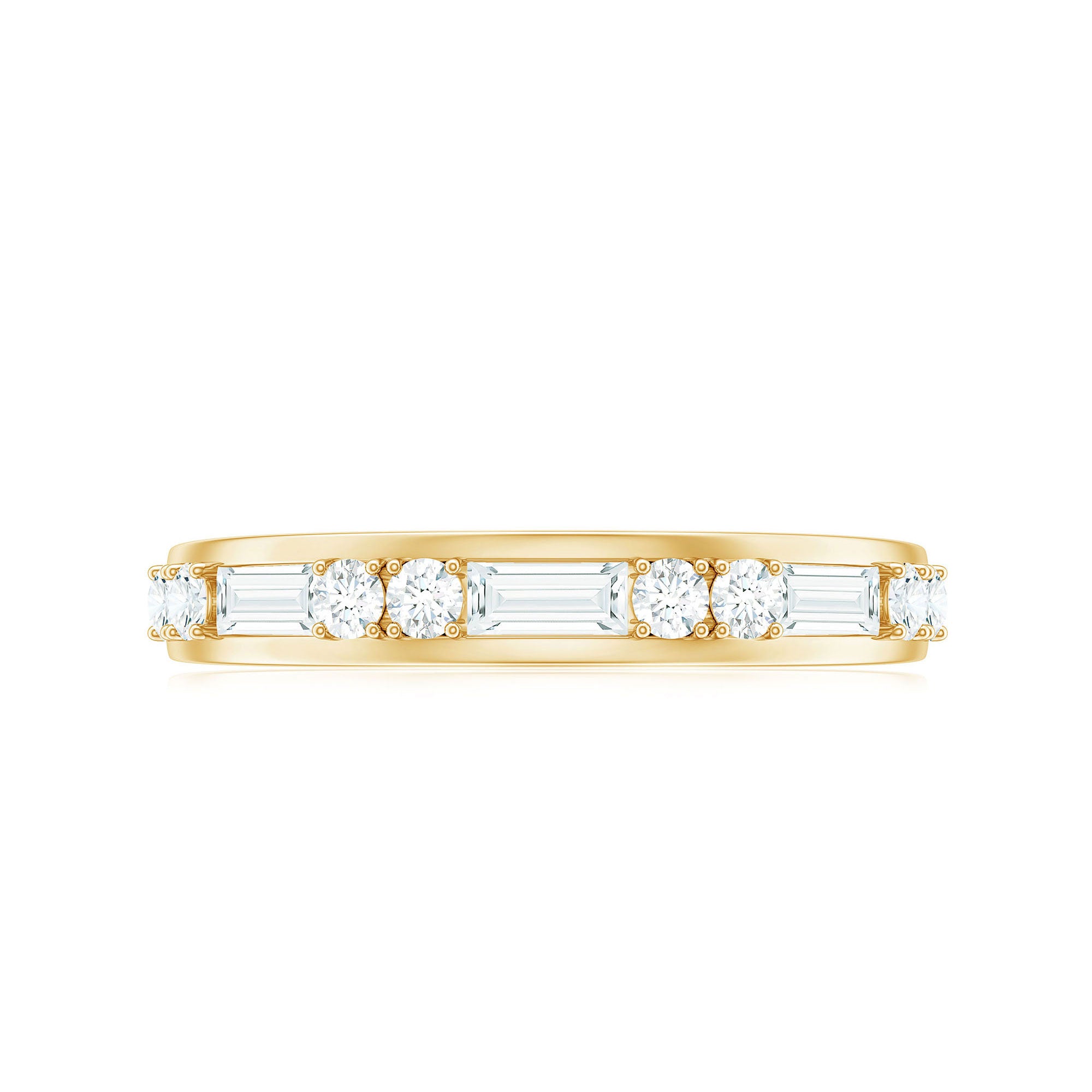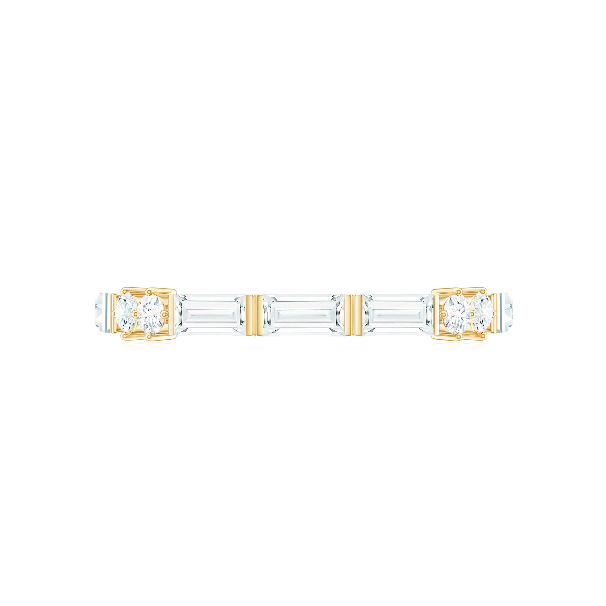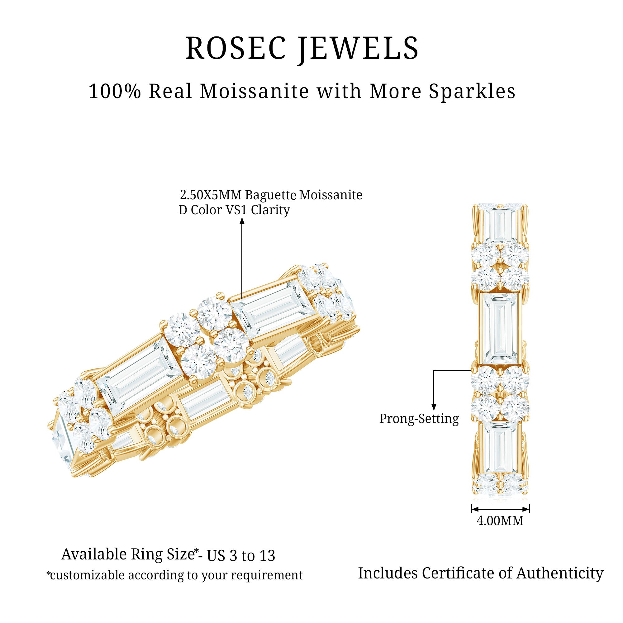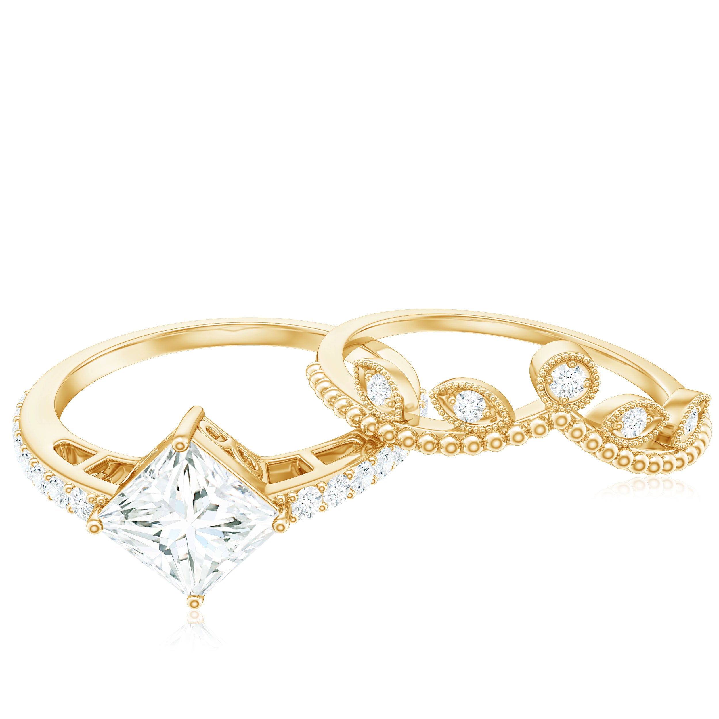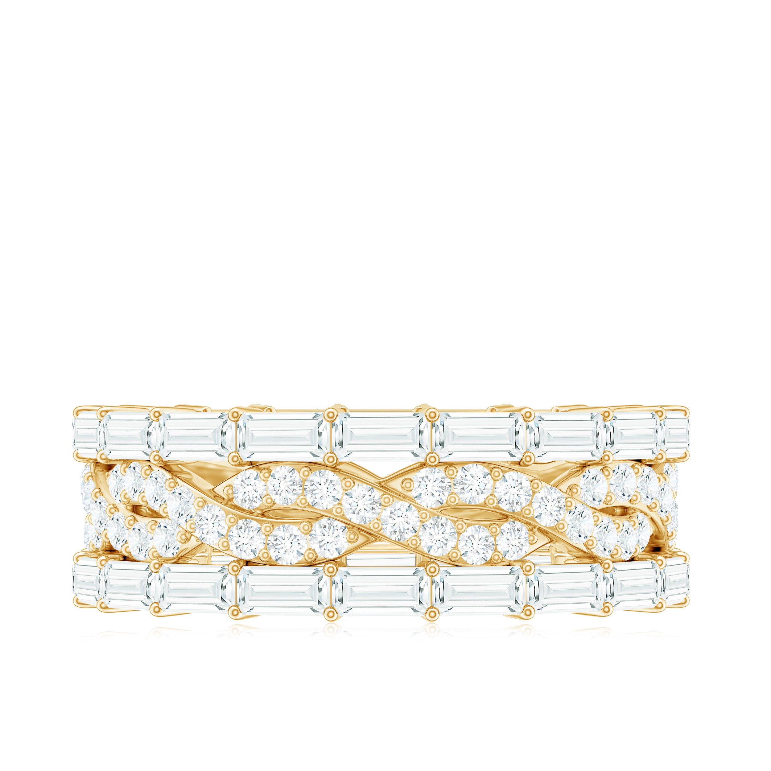 Moissanite is the best alternative to diamond for all the great reasons. The brilliant and fierce moissanite stackable wedding bands can withstand the test of time. Couple are considering moissanite wedding bands leaving behind the diamond ones as moissanite is pretty affordable. Being an Eco-friendly and cruelty-free stone gives moissanite a plus point for sustainability loving brides.