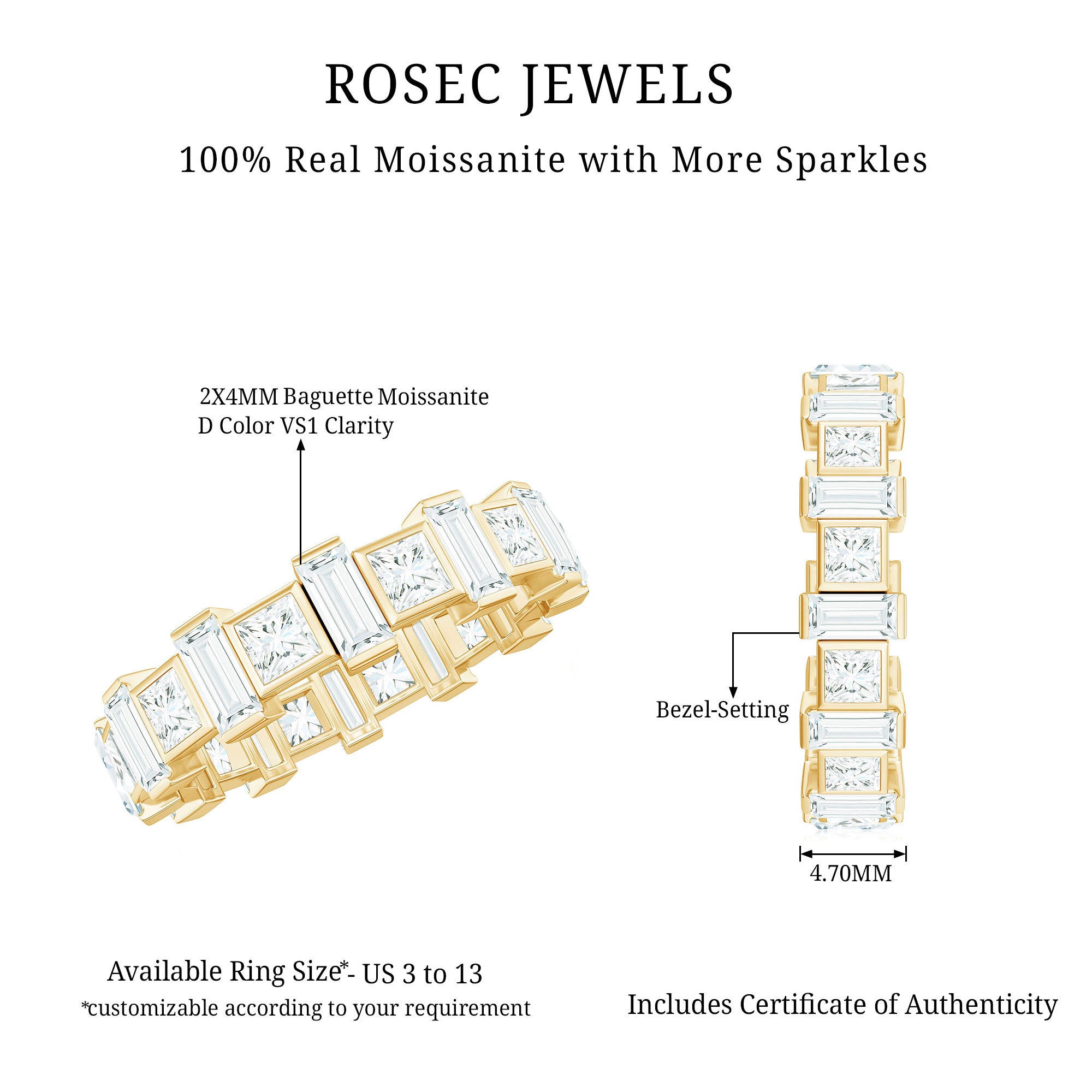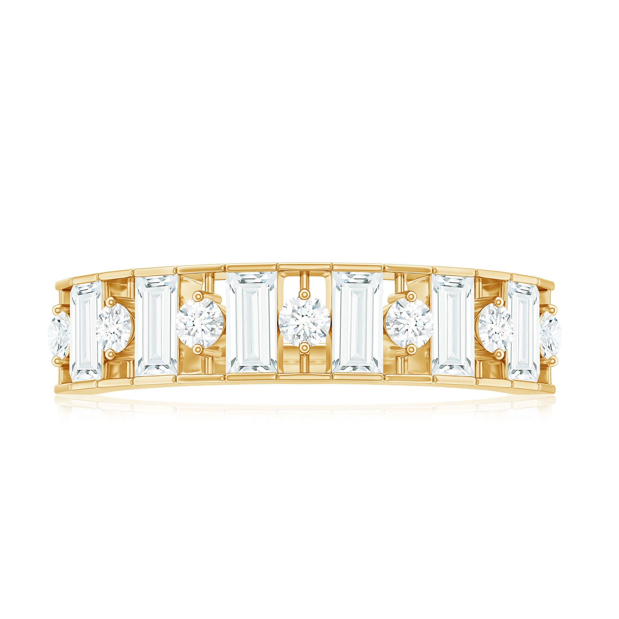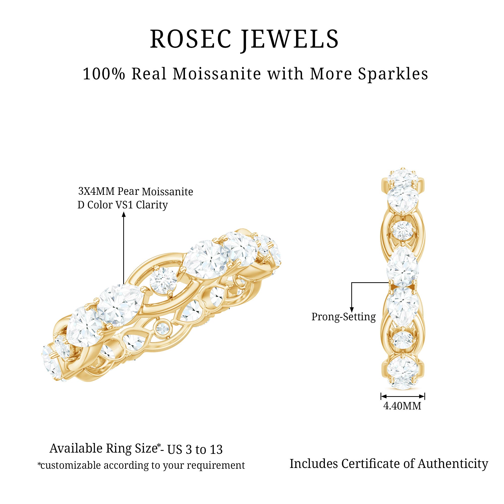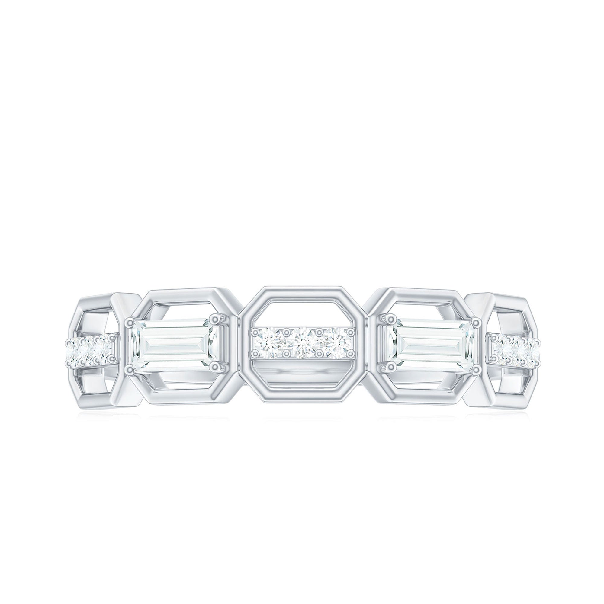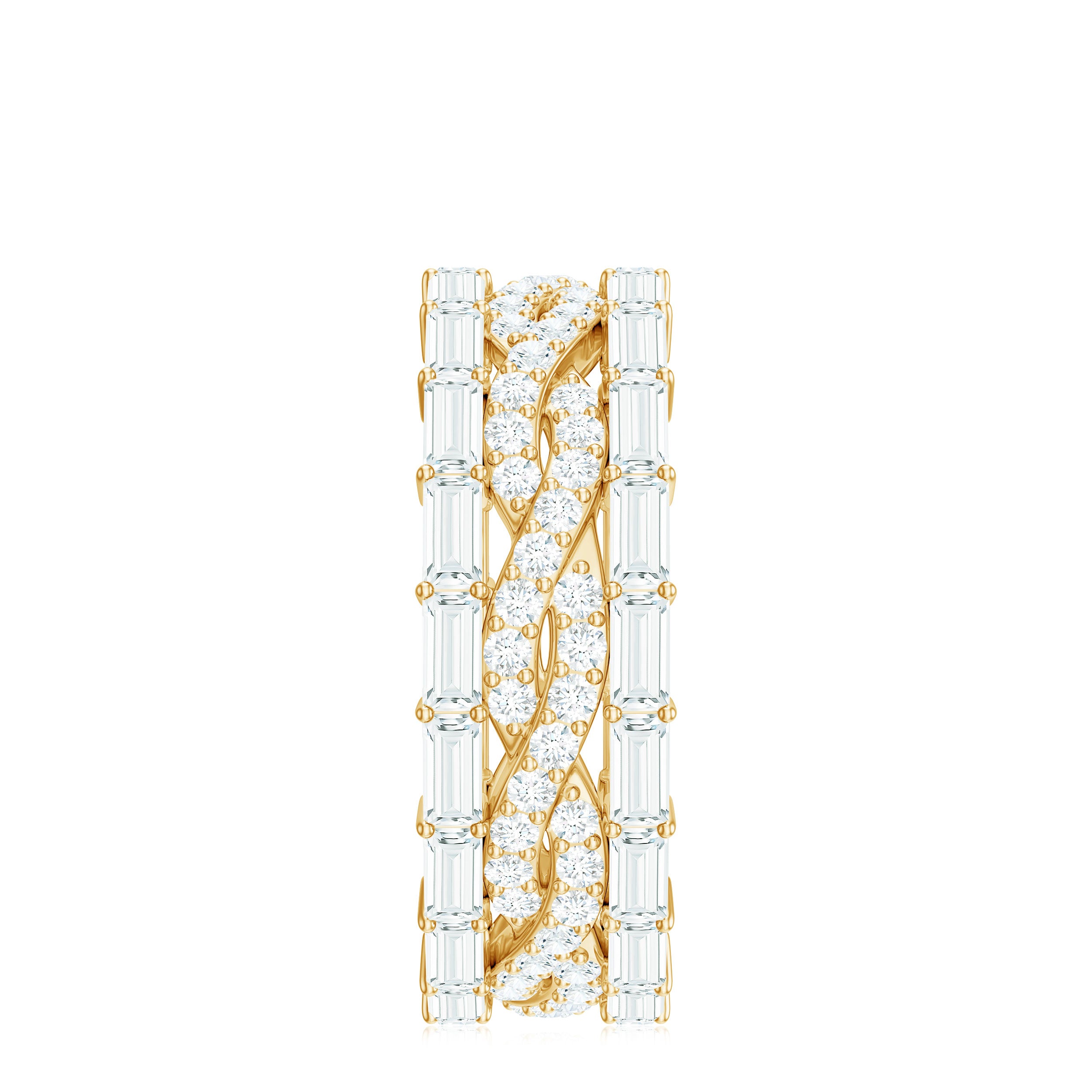 Moissanite is the best alternative to diamond for all the great reasons. The brilliant and fierce moissanite stackable wedding bands can withstand the test of time. Couple are considering moissanite wedding bands leaving behind the diamond ones as moissanite is pretty affordable. Being an Eco-friendly and cruelty-free stone gives moissanite a plus point for sustainability loving brides.