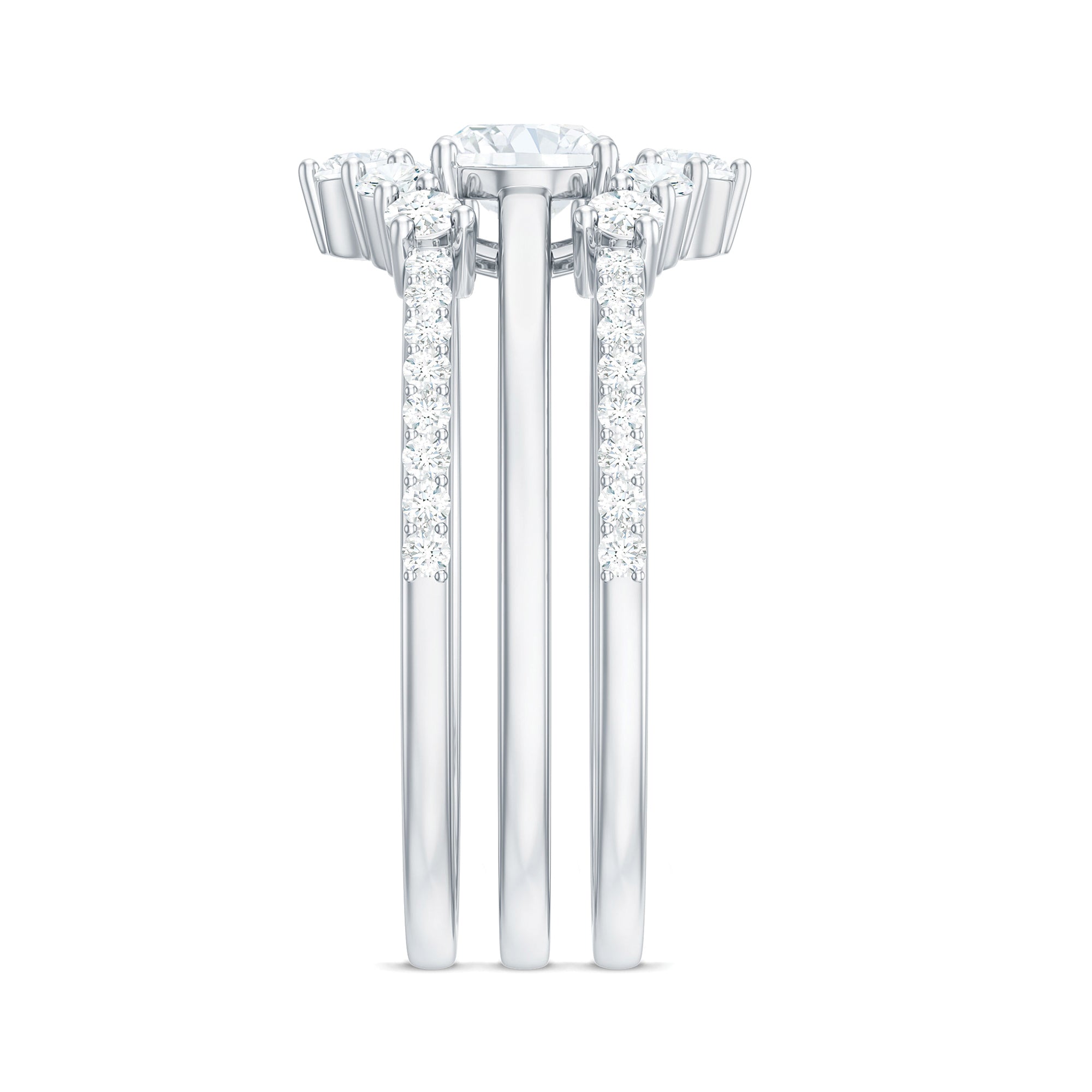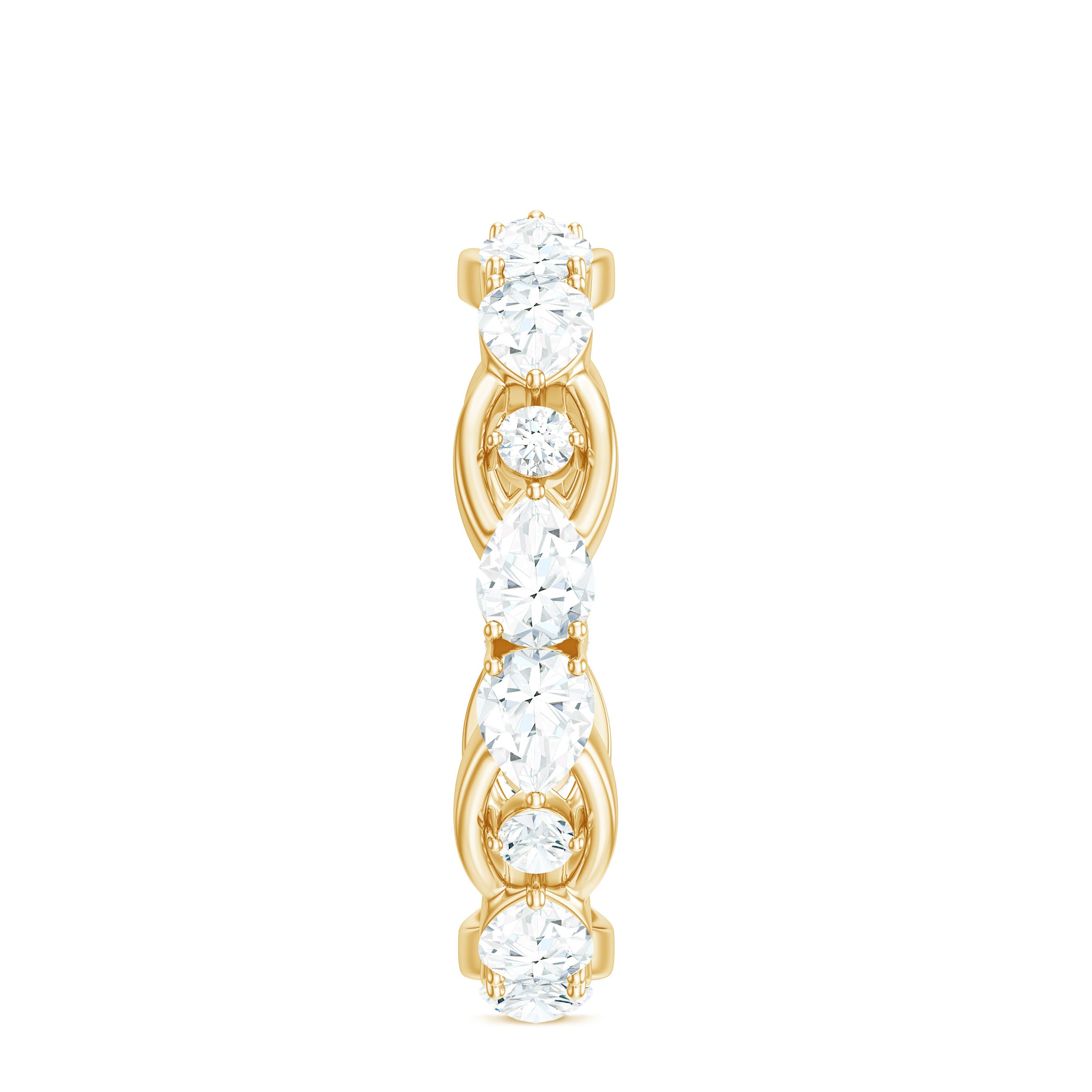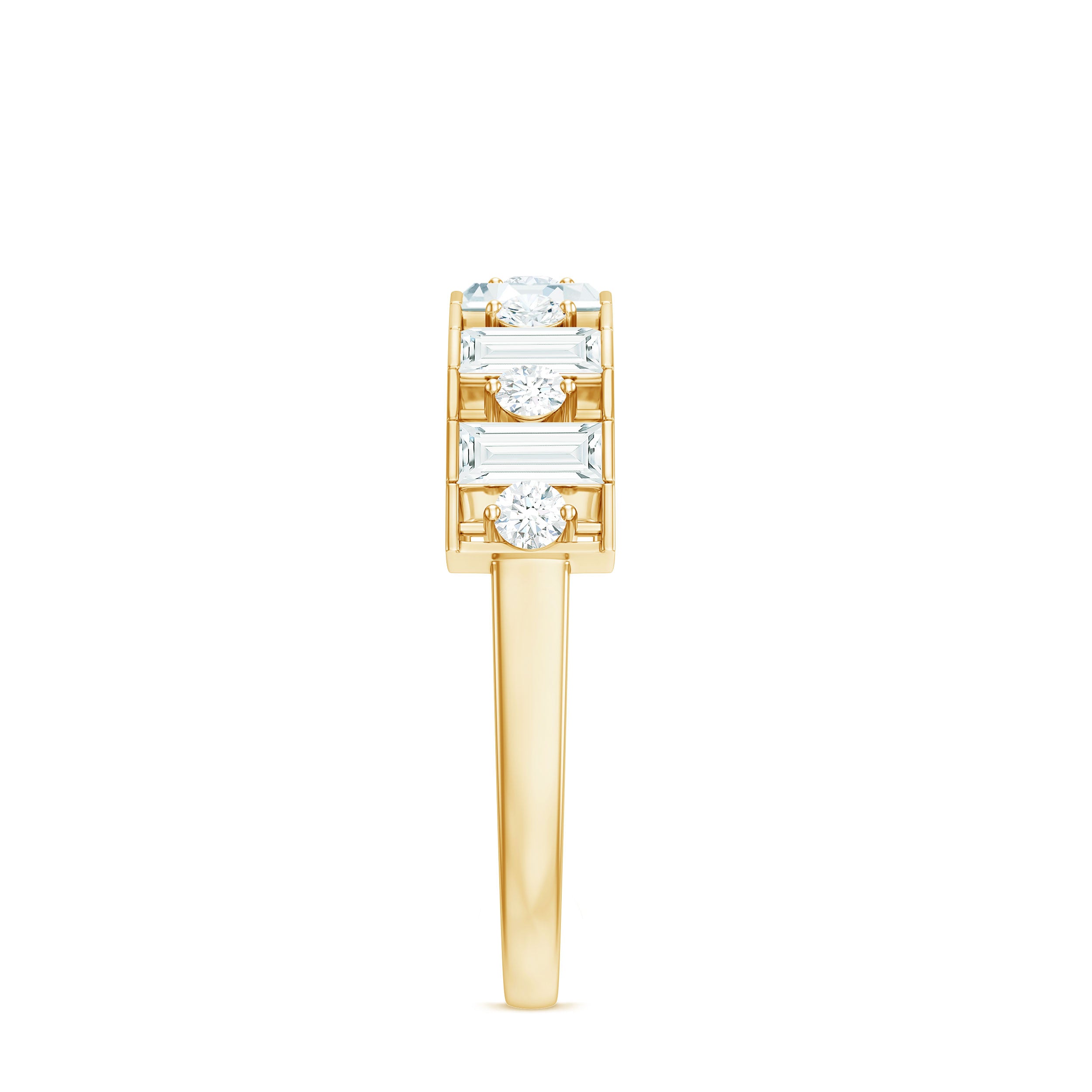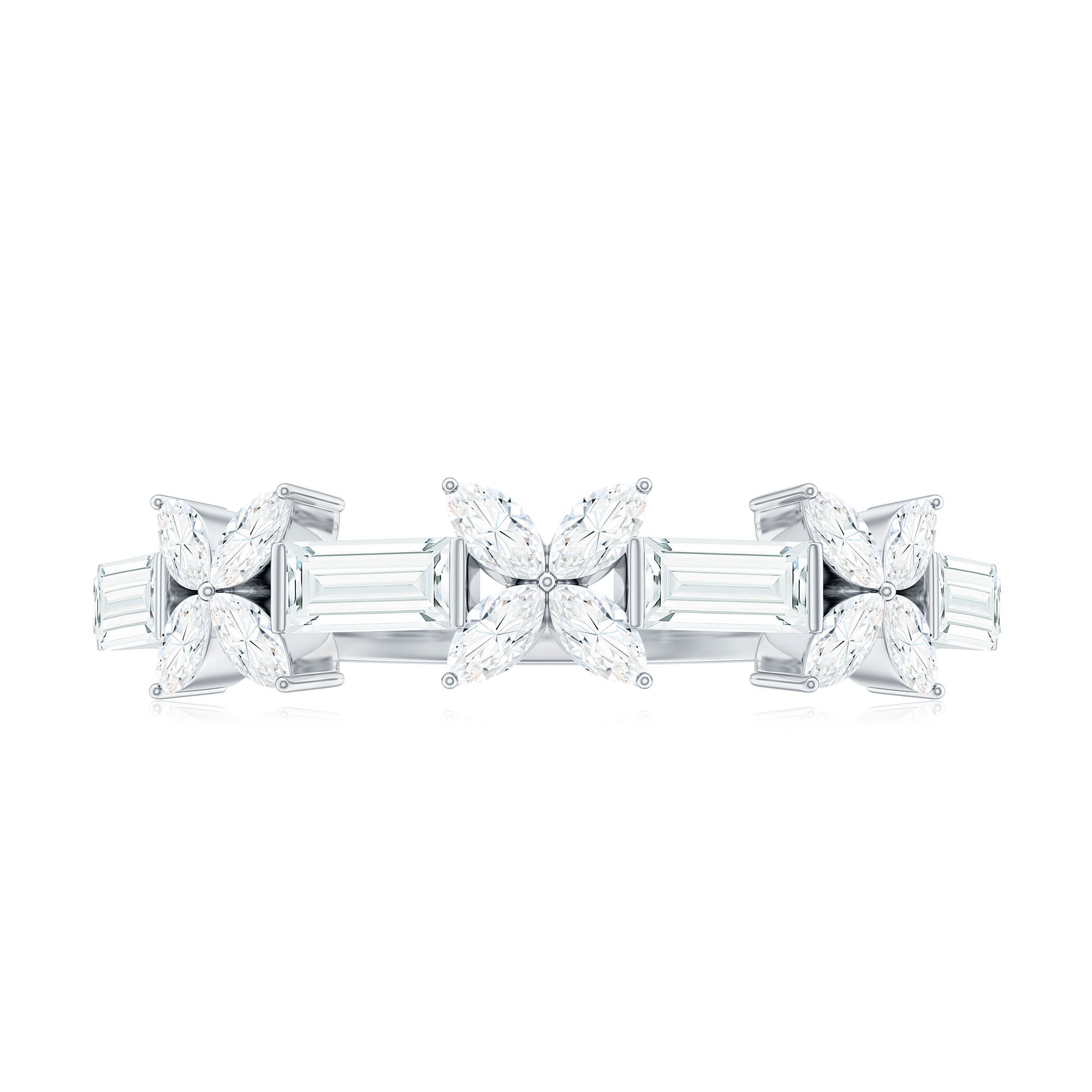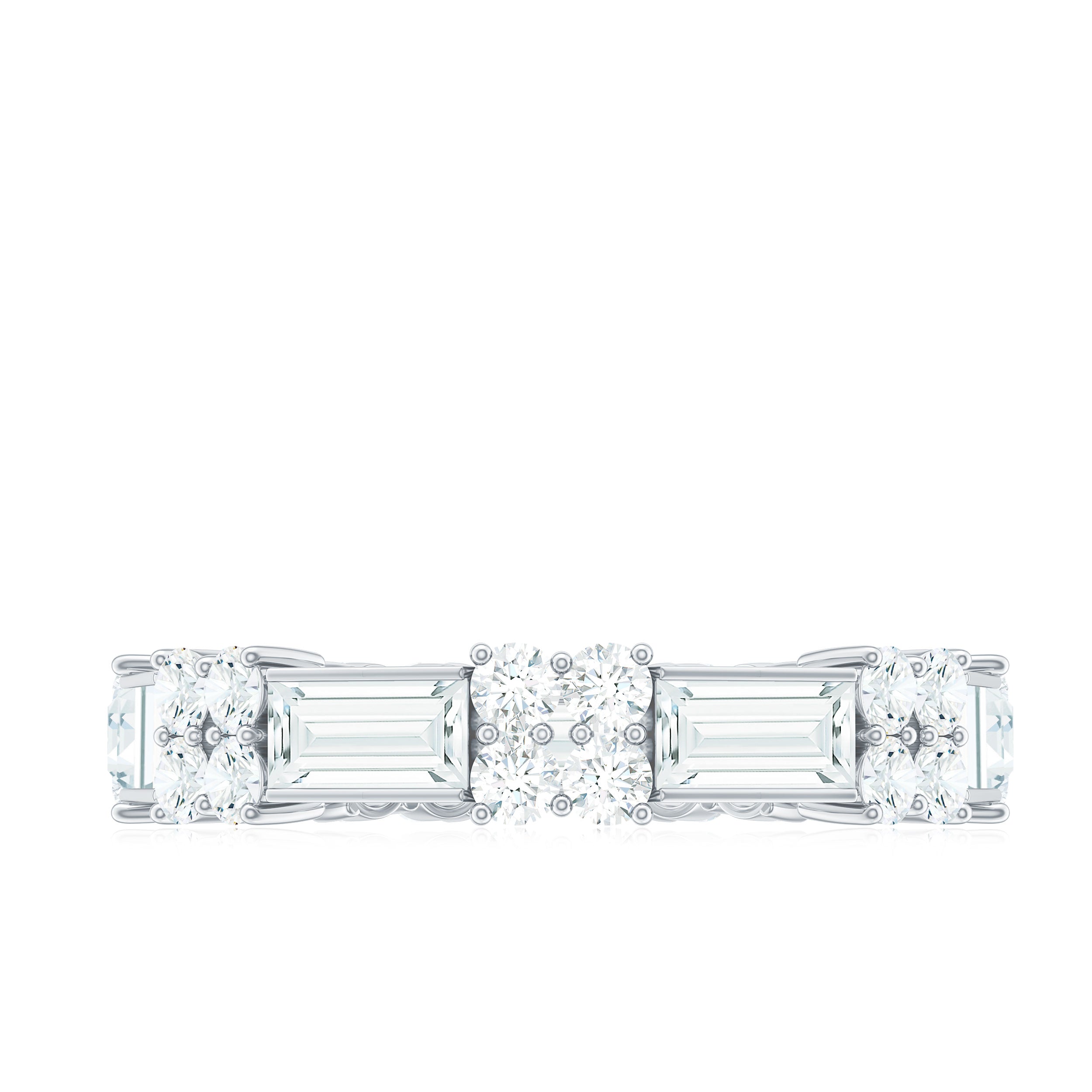 Moissanite is the best alternative to diamond for all the great reasons. The brilliant and fierce moissanite stackable wedding bands can withstand the test of time. Couple are considering moissanite wedding bands leaving behind the diamond ones as moissanite is pretty affordable. Being an Eco-friendly and cruelty-free stone gives moissanite a plus point for sustainability loving brides.