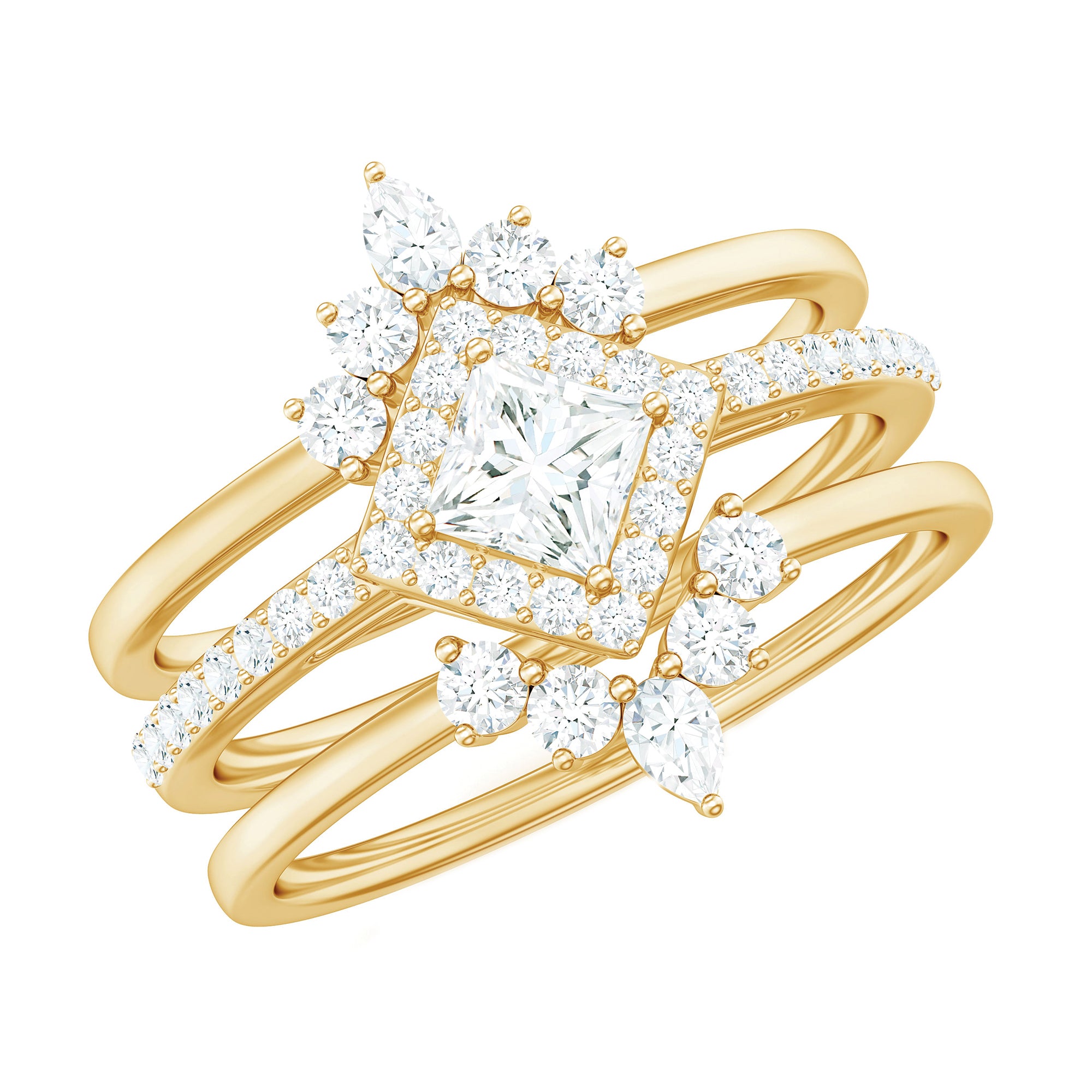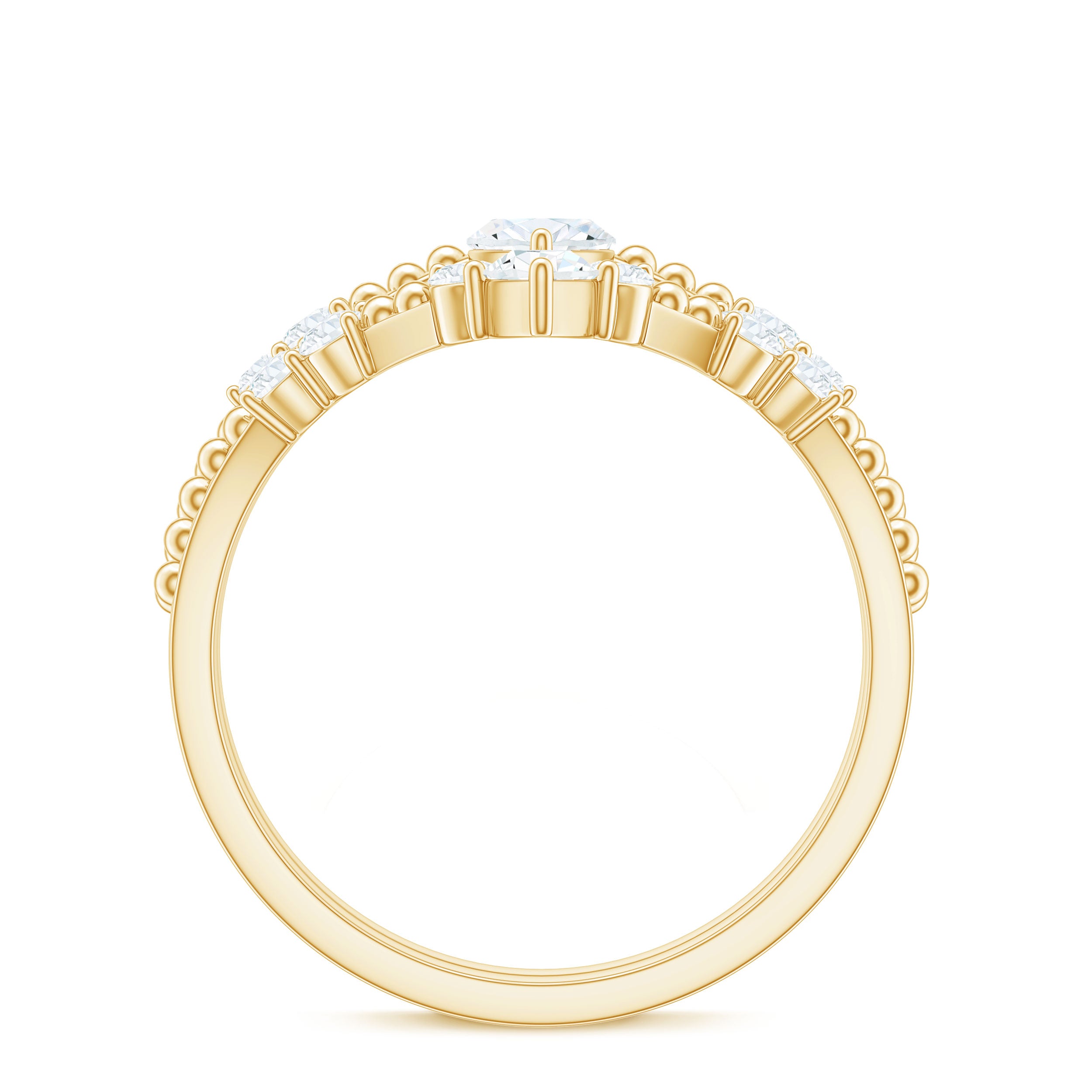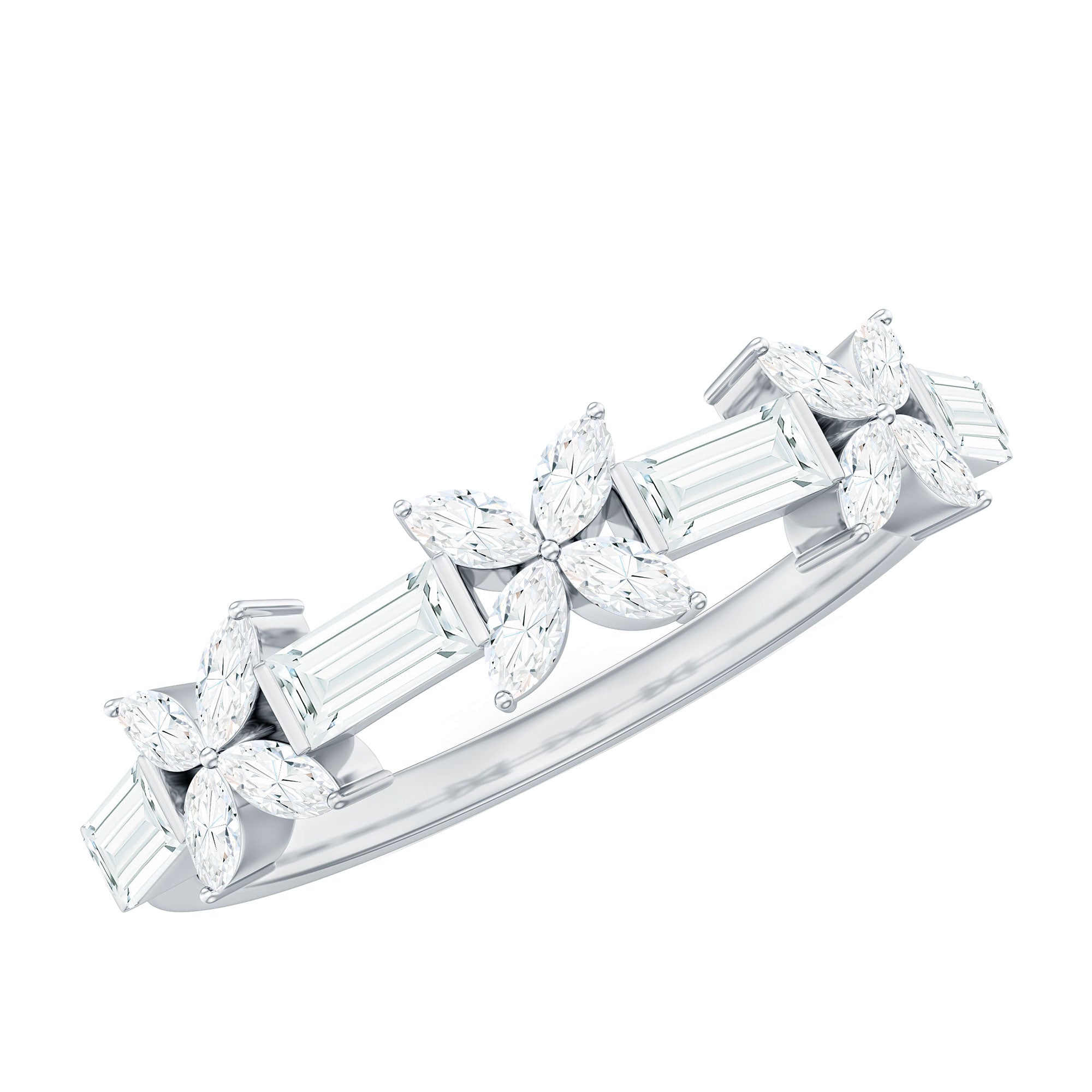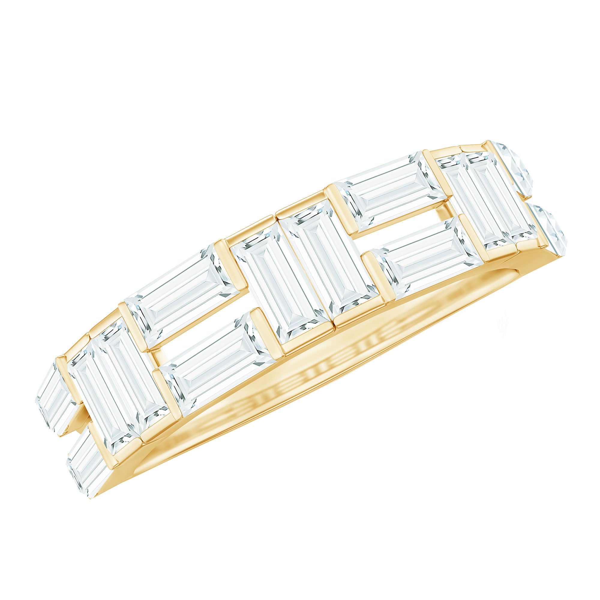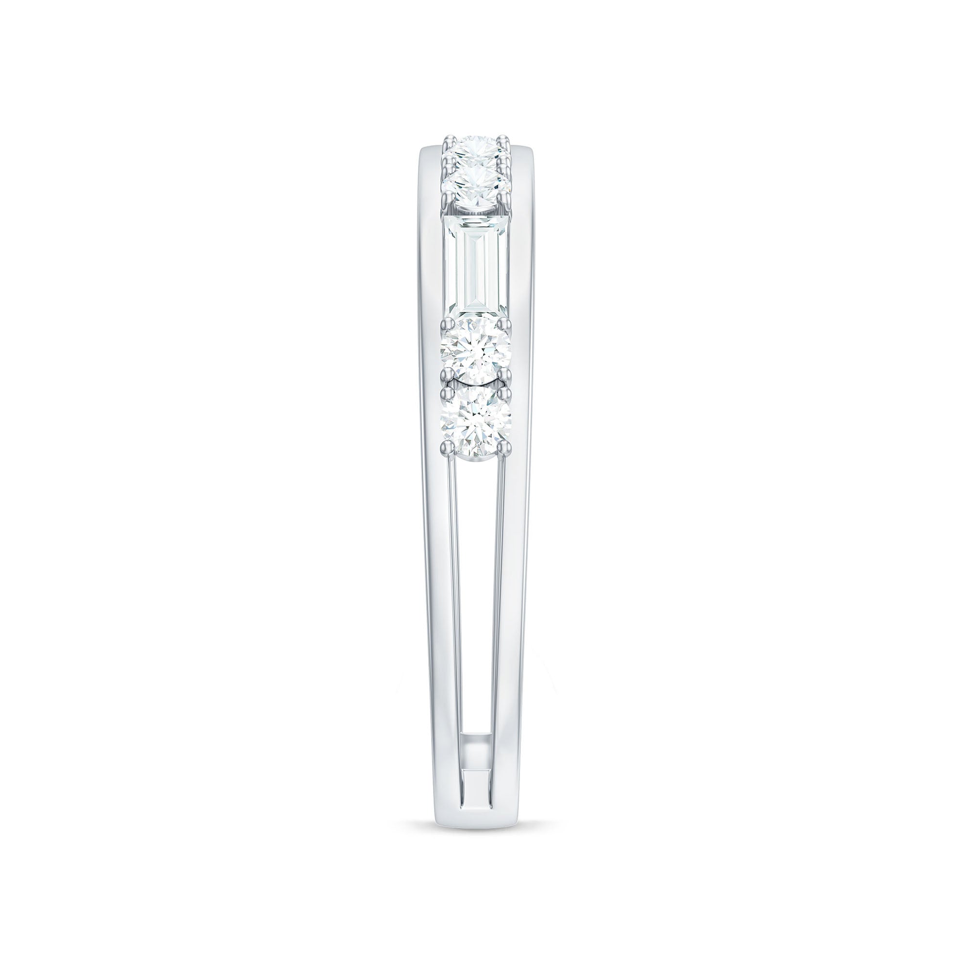Moissanite is the best alternative to diamond for all the great reasons. The brilliant and fierce moissanite stackable wedding bands can withstand the test of time. Couple are considering moissanite wedding bands leaving behind the diamond ones as moissanite is pretty affordable. Being an Eco-friendly and cruelty-free stone gives moissanite a plus point for sustainability loving brides.