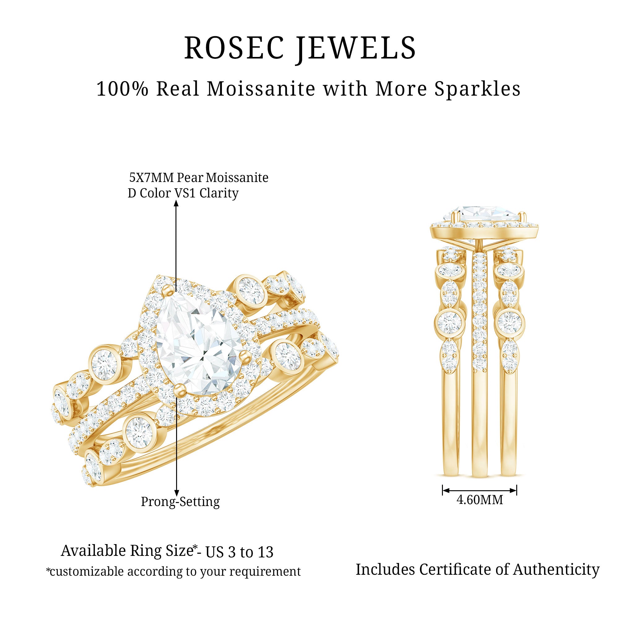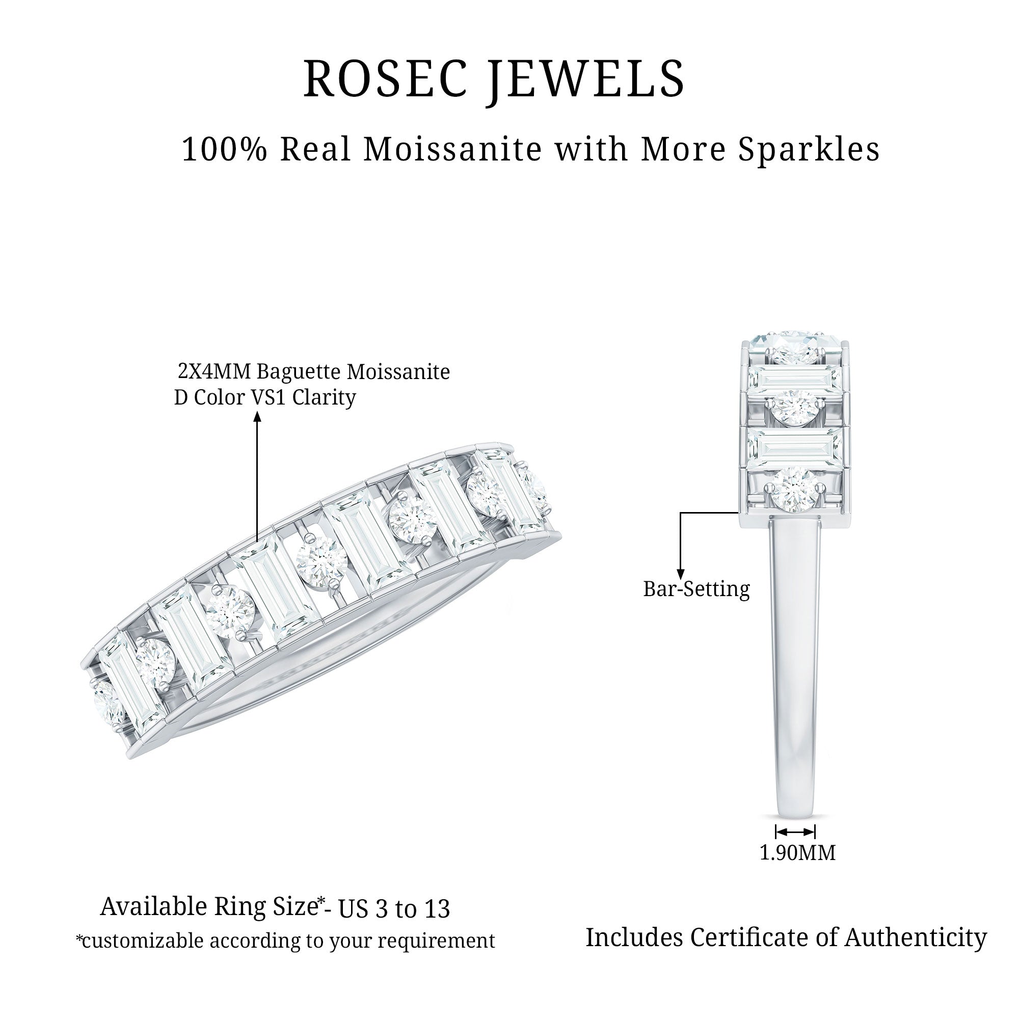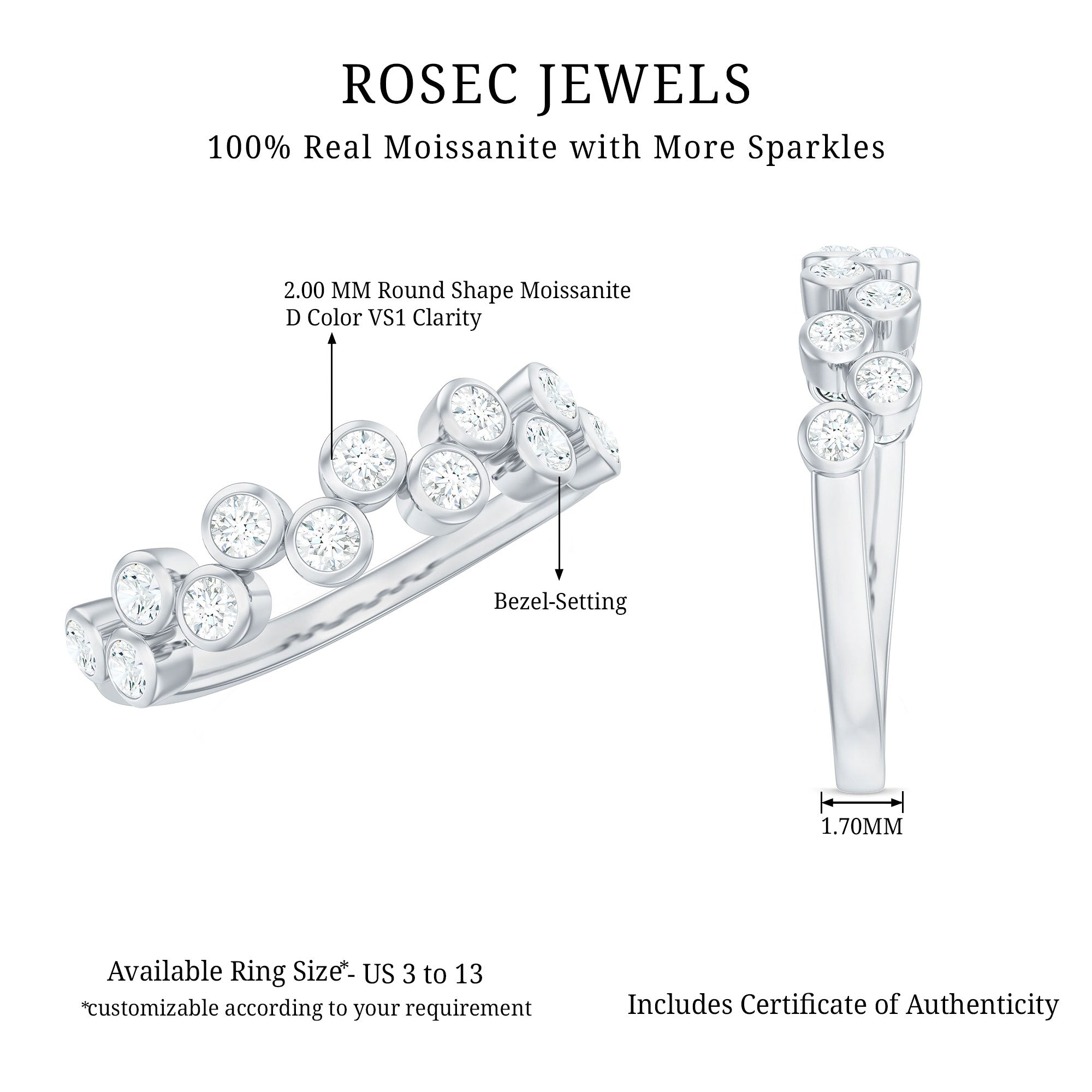 It will cost you somewhere between $500 to $1500, depending on how many stones the band have and the quality of stone. Rosec jewels has moissanite wedding sets under $500, you’ll be surprised to see the collection.