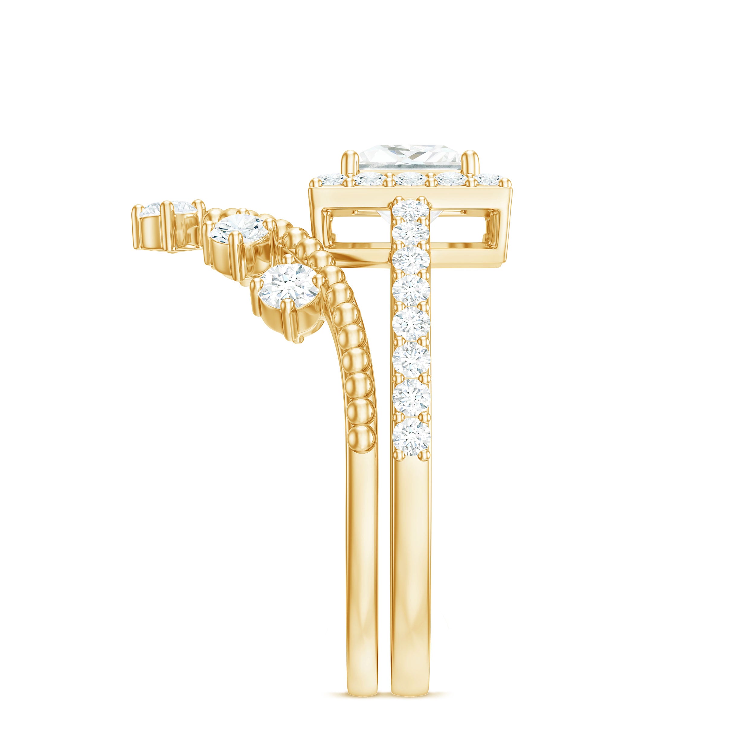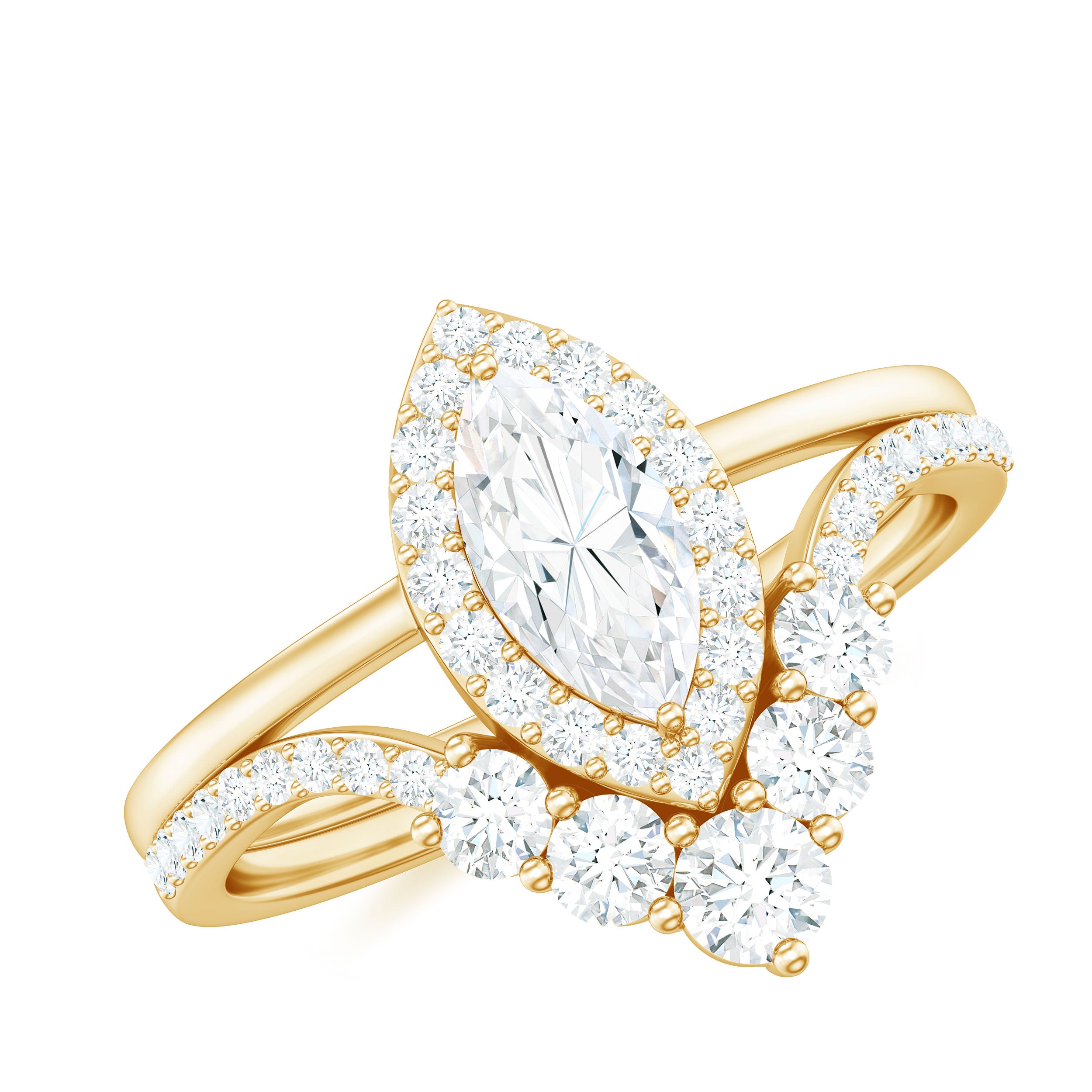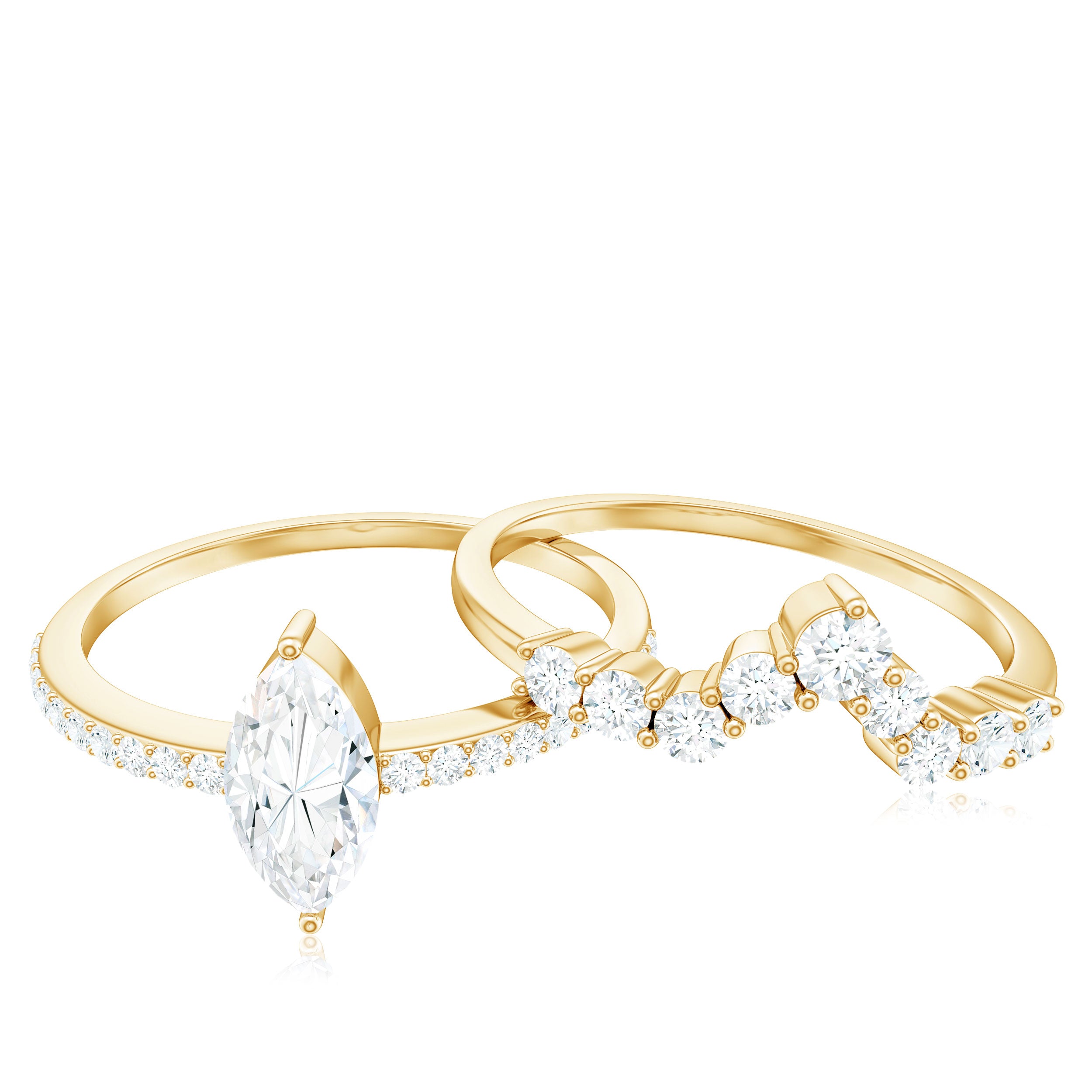 Moissanite Engagement rings indicates the proposal of marriage while Moissanite wedding bands are exchanged at the wedding ceremony.