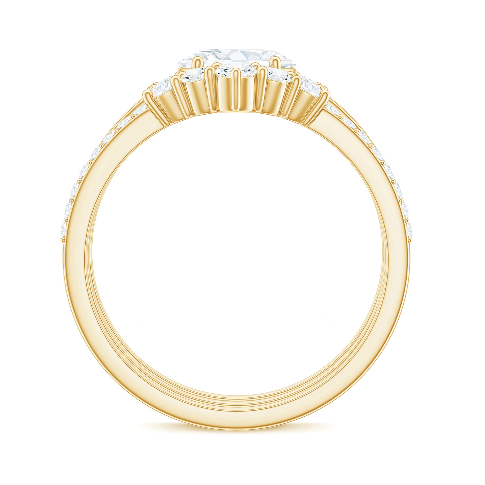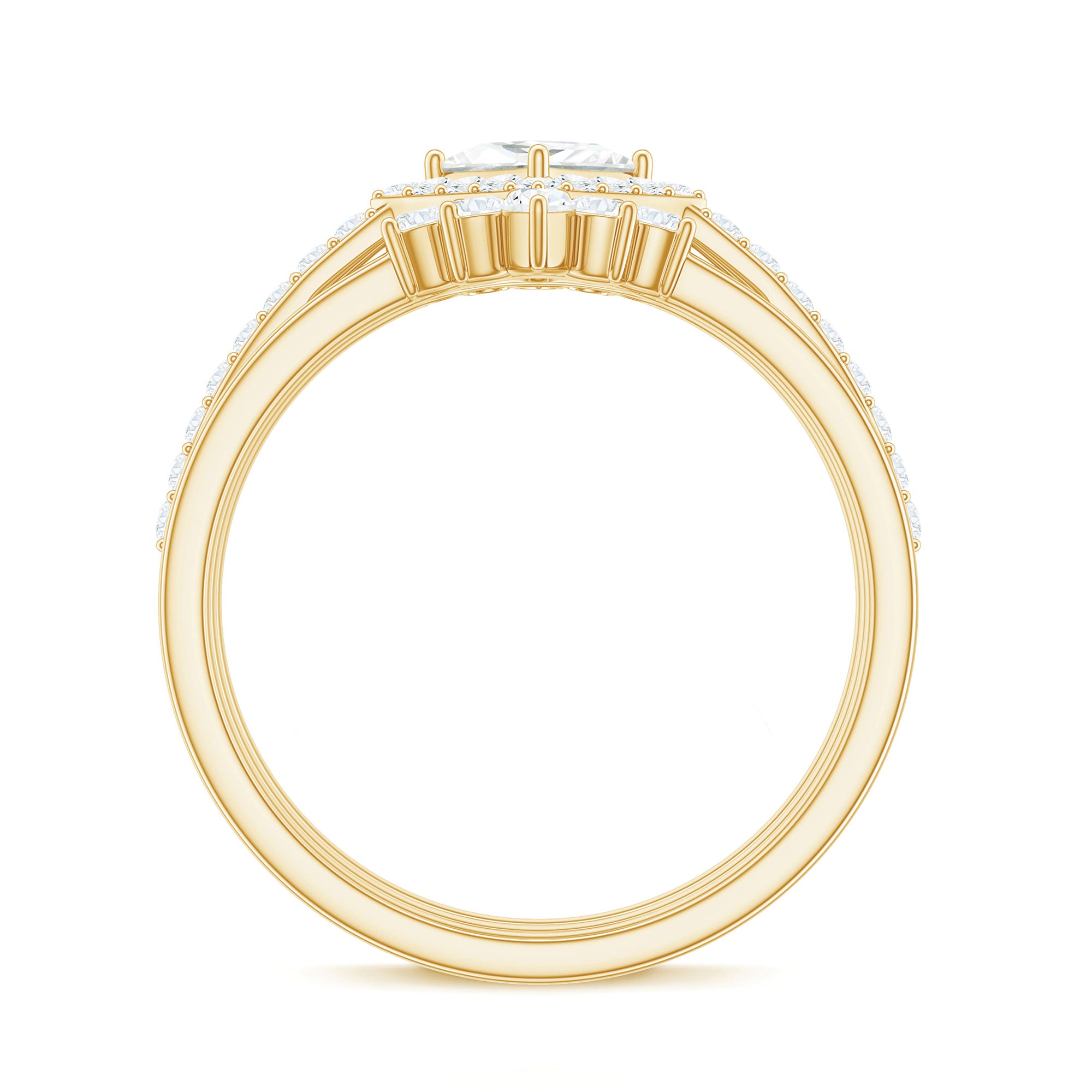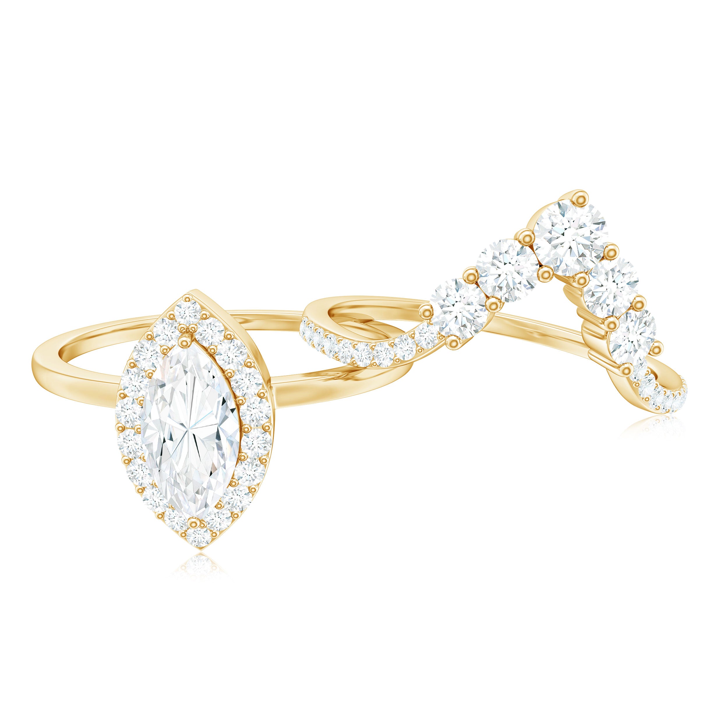 Moissanite Engagement rings indicates the proposal of marriage while Moissanite wedding bands are exchanged at the wedding ceremony.