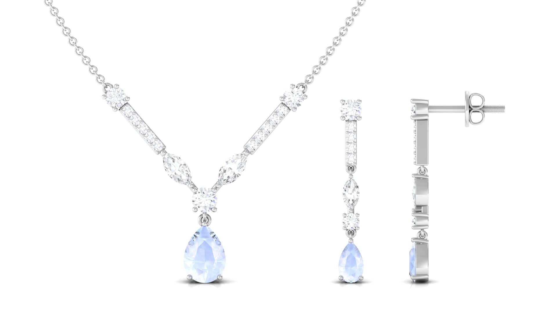 Basically, the cost of a moonstone necklace can be determined while focusing on different factors such as the gemstone's quality, design of the necklace, carat weight, and metal used to craft the pendant. The moonstone necklace at Rosec Jewels ranges from $339 to over $1149 for more intricate designs with larger stones. Still, you have a wide range of options to choose from, it can certainly go above $1200 for best quality moonstone jewelry.