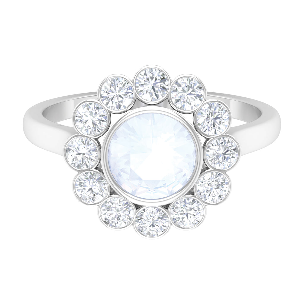A Halo adorns the sheeny Centerpiece of Moonstone a sparkling touch with the shimmering parade of Diamond/Moissanite all around. Also, if you’re all about glitz and glam but still like a little classic touch, a Moonstone Ring with Diamonds (in a Halo) could be your best bet. The best part? It doesn’t just bestow more character on your Moonstone; it best highlights its beauty by making it appear larger.