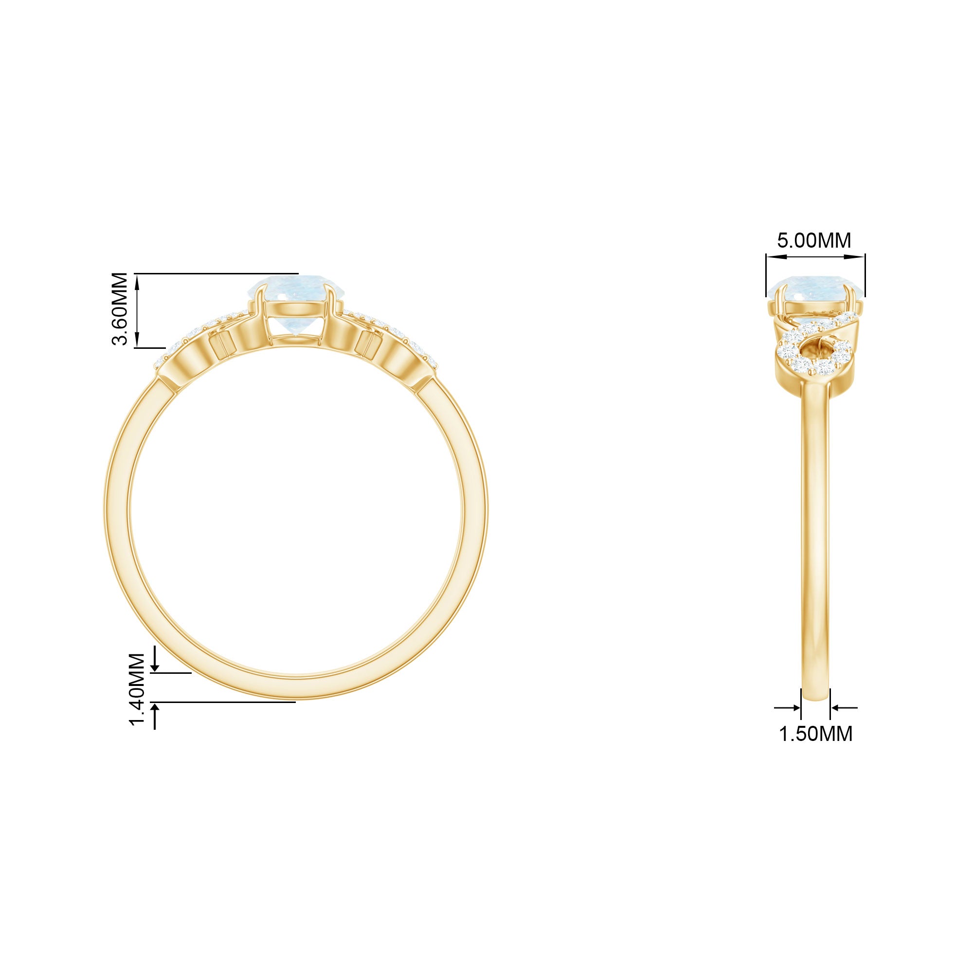 Extraordinary but undefined by a specific style, a Moonstone Promise Ring is a lot more minimalist than an Engagement Ring. It ranges from a Simple Moonstone Solitaire Ring that is quite understated thanks to its dainty size of 4 MM or less. Or it could be a lot more visually appealing when decorated with minimalist nature, infinity, or floral inspired motifs and sparkling accents of Diamond/Moissanite. Beyond that, this ring style oozes romance since it commemorates the promise of lifelong commitment, making the Moonstone Heart Ring the most meaningful pick in this category.