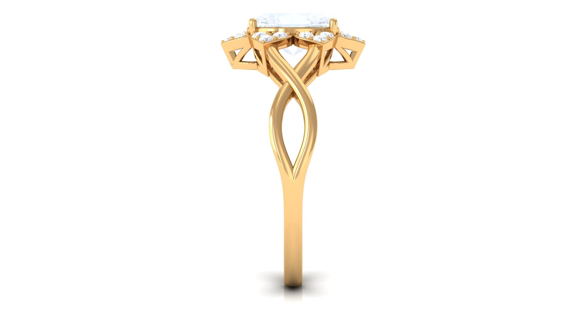 Easily the most sophisticated and Simple Moonstone Ring in the entire collection, a Solitaire Style features the Centerpiece of a Moonstone (of any shape) that stands out on its own. The Moonstone Solitaire here is at least 6 MM in size, which also makes it a one-of-a-kind choice of Moonstone Engagement Ring. It is fashioned in a versatile number of shapes that cater to just as many senses of style. While a Round or Oval Moonstone Ring exudes a conventional touch, a ring adorned with a princess, marquise, or pear-cut Moonstone is more on the fancier side of the spectrum. On the other hand, if you’re on the hunt for an Antique Moonstone Ring, go for the one fashioned in Emerald, Cushion, or Asscher cut Center stone.