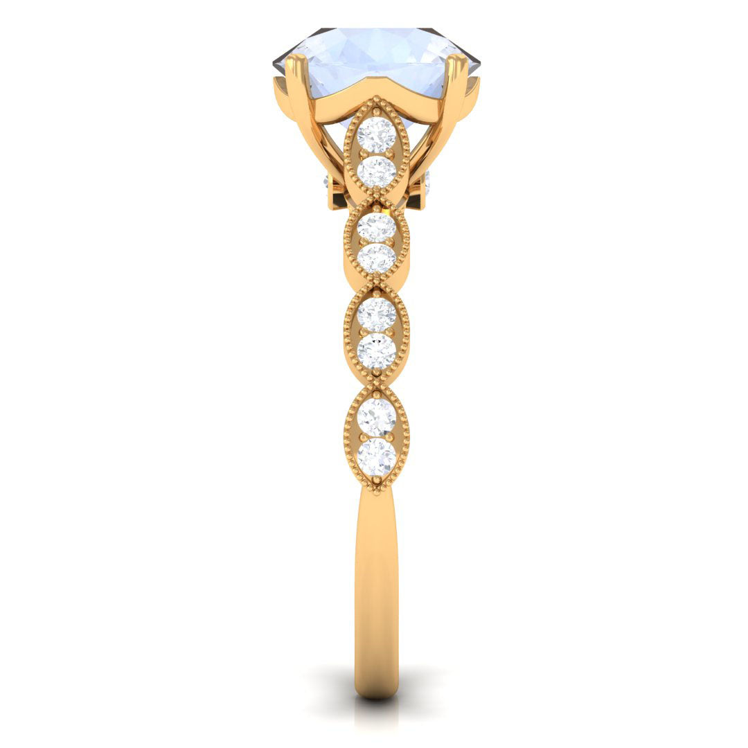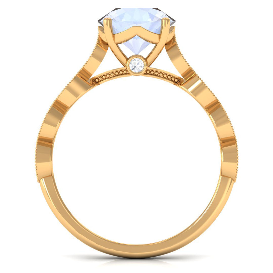 Nothing short of a piece of ancient art, a Vintage Moonstone Ring complements the surreal charm of Moonstone with ornate designs from the Victorian, Edwardian, and Art Deco Eras. Precisely, this Unique Moonstone Ring is skillfully crafted with intricately crafted abstract patterns as well as milgrain and filigree detailing. For those who like an heirloom touch in their emblem of love, this also makes for a beautiful Moonstone Engagement Ring.