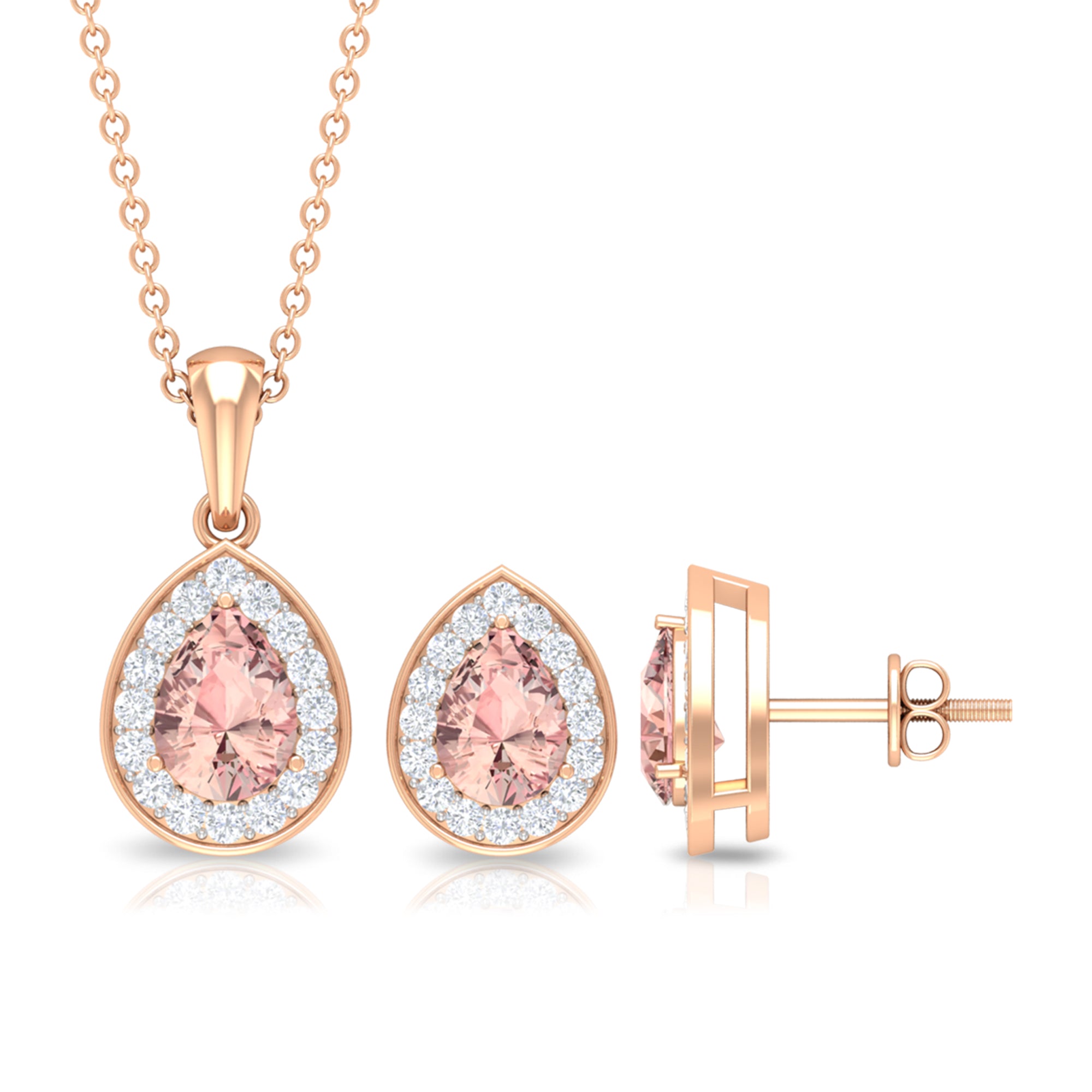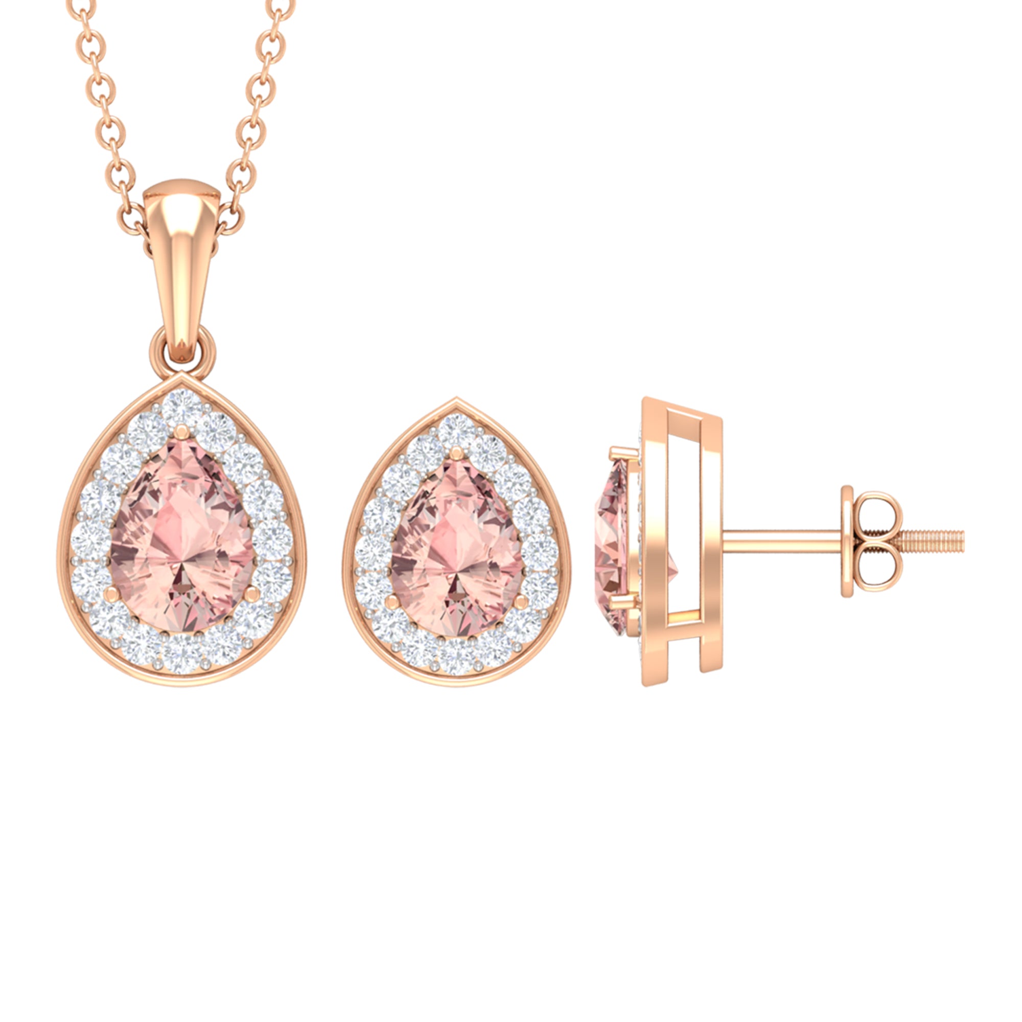 Meant for the sparkle-loving women, a Halo encircles the center stone of Morganite with a parade of diamond/moissanite all around. The best part? A Morganite Halo Necklace is a favorite for not only lending more character (and larger-looking size) to the Morganite but also for the kind of eye-catching color contrast that it offers to its pretty pink hue.