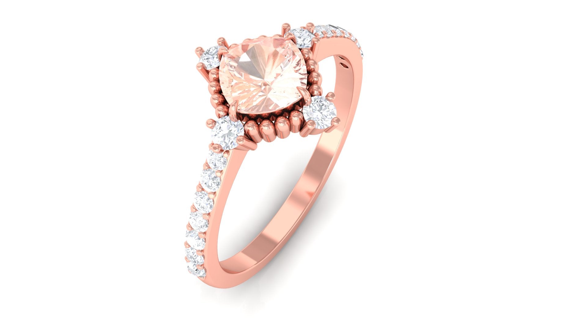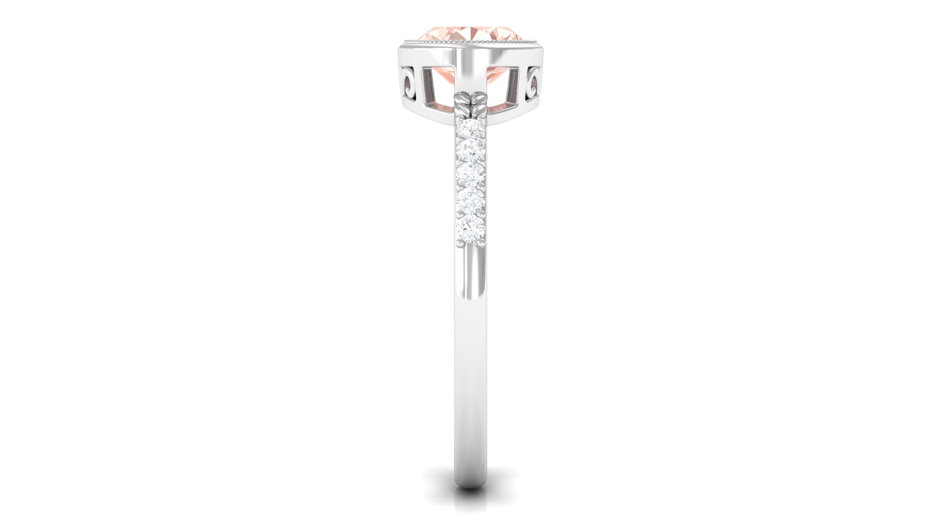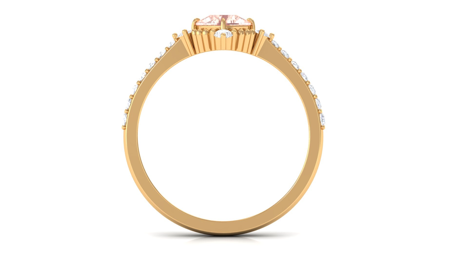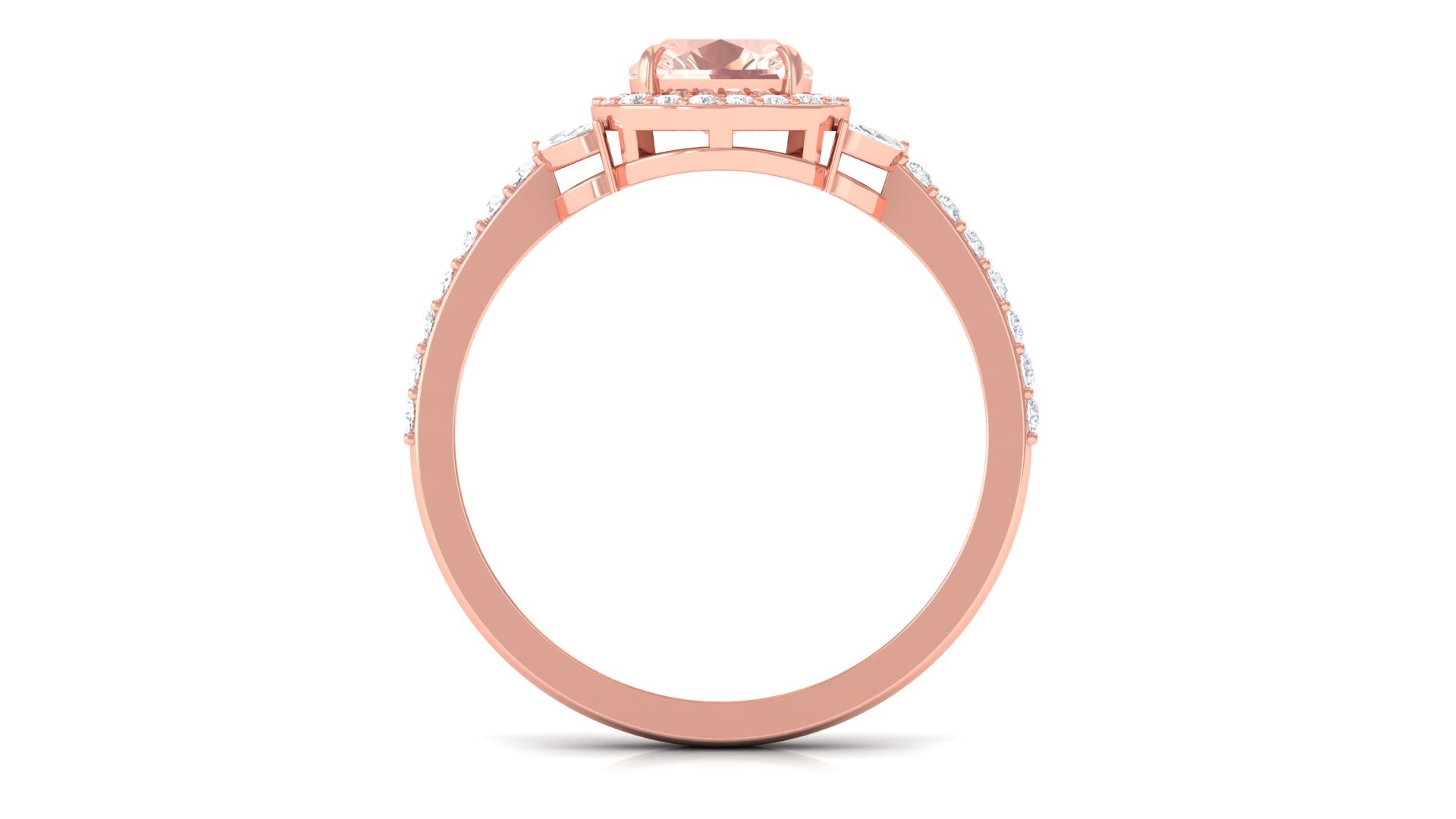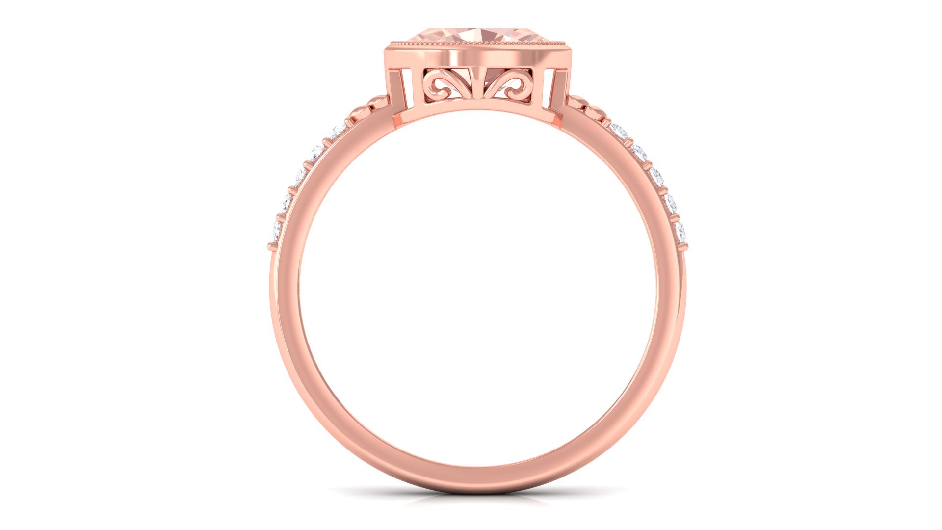 Forever in trend, a Solitaire Morganite Ring boasts a solo centerpiece of Morganite (that is meant to shine out with its enormous size of 6 MM or more). This style makes for one of the most classic cum conventional choices in the Morganite Engagement Ring. What’s more, this timeless style offers you a wide scope of versatility. It ranges from a Round Morganite Ring for the traditional bride to fancier ones like Marquise, Pear, or Princess Cut Solitaire Ring for the bride who likes to keep up with the trends. On the other hand, if nothing appeals quite like a little vintage touch, you can rely on old-school shapes like an Asscher, Cushion, or Emerald Cut Morganite Ring.