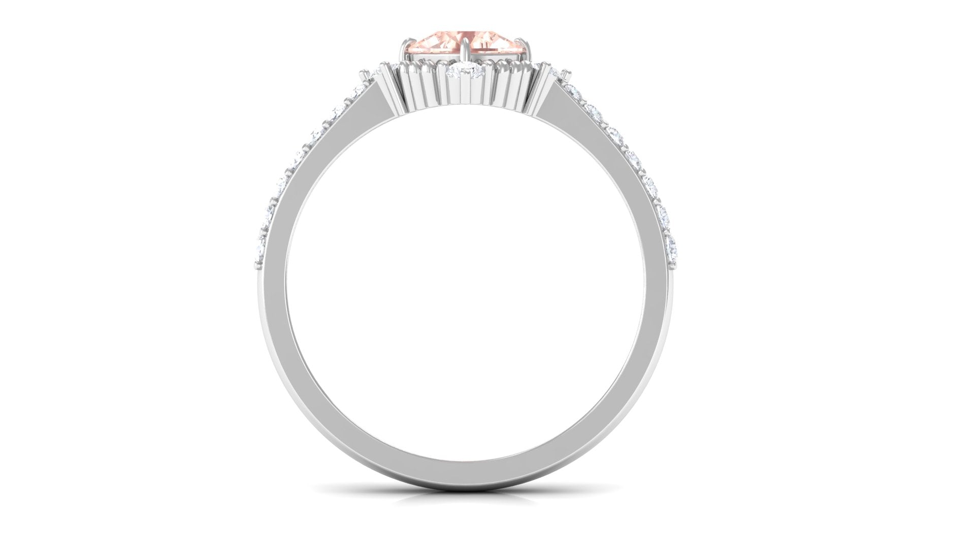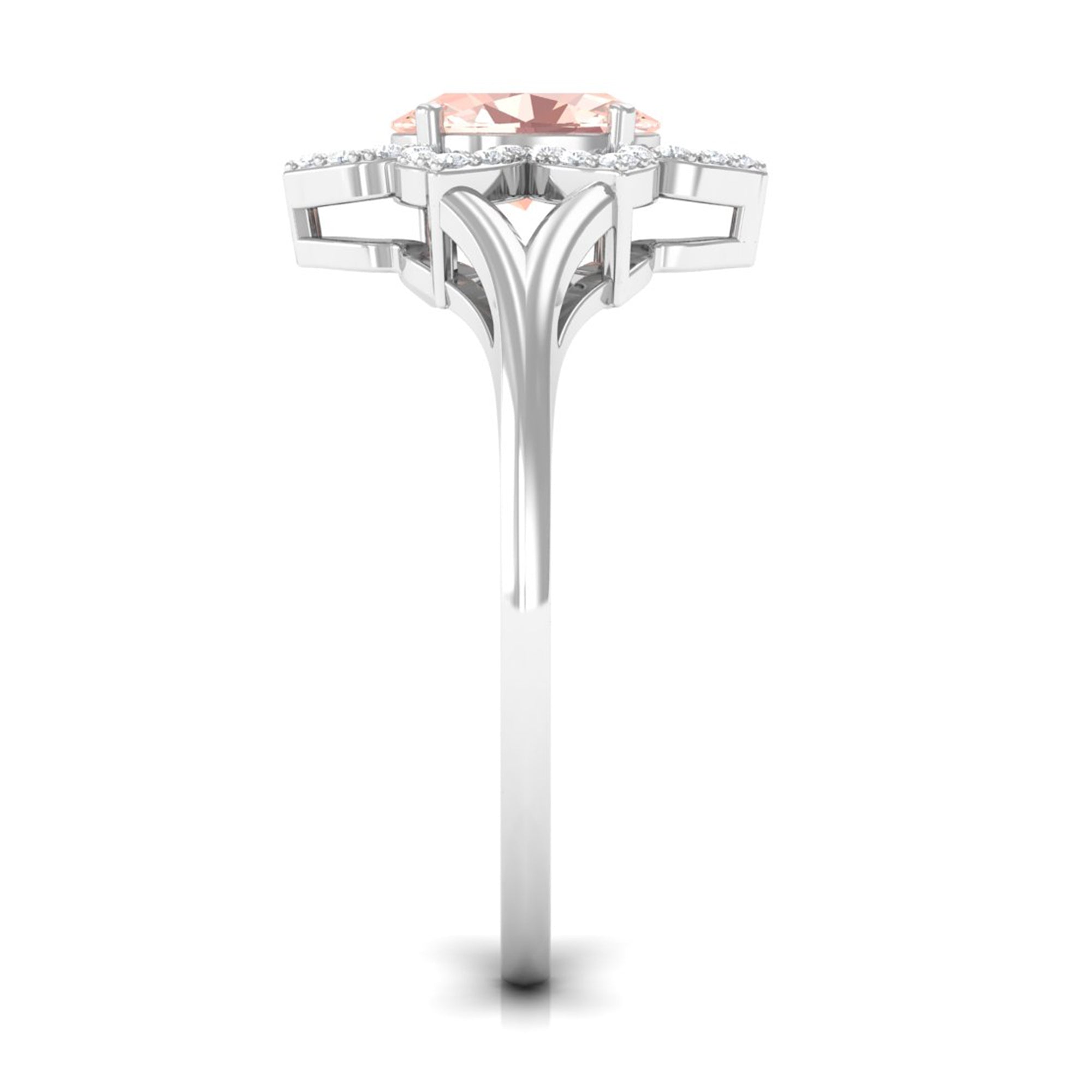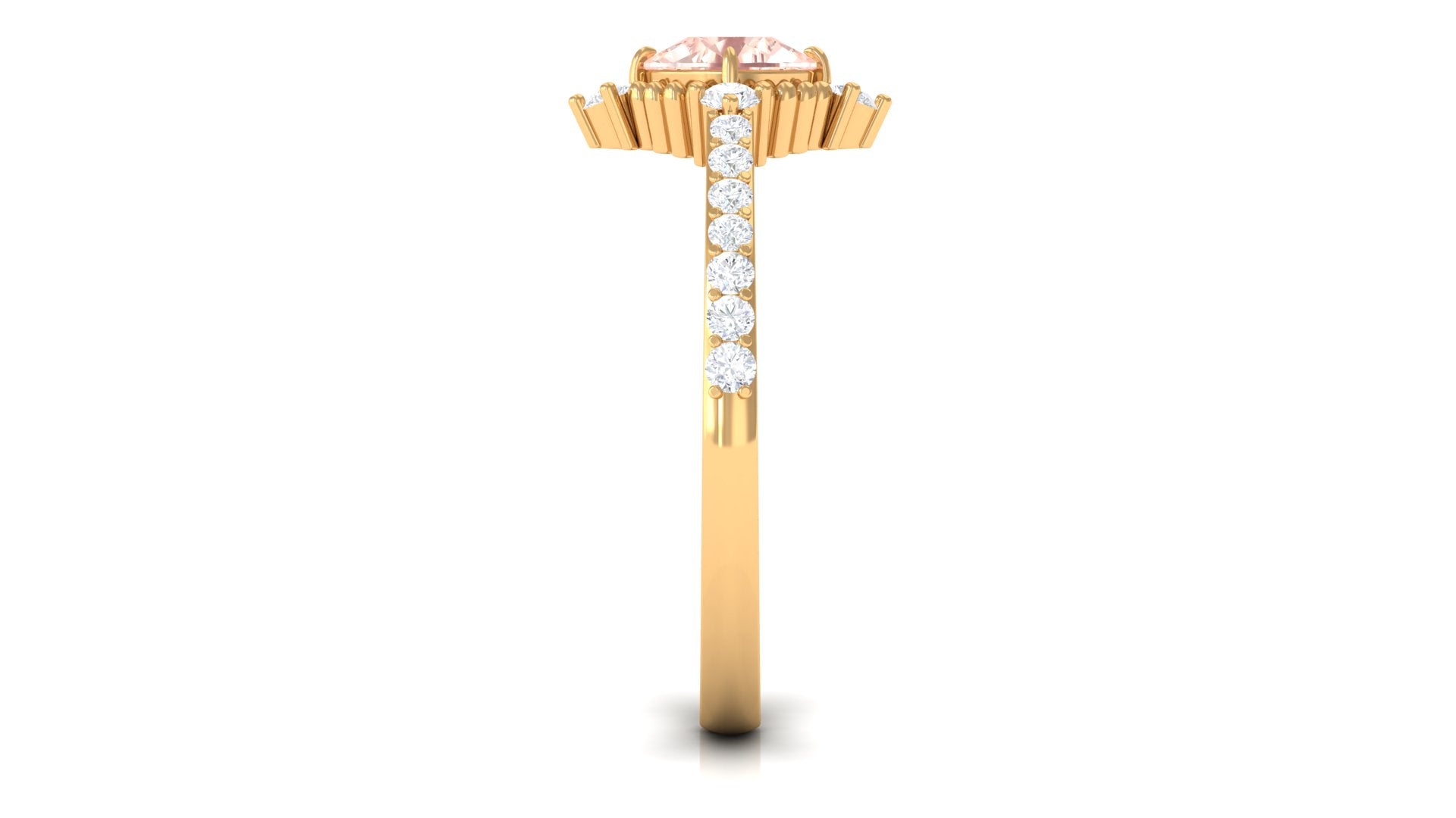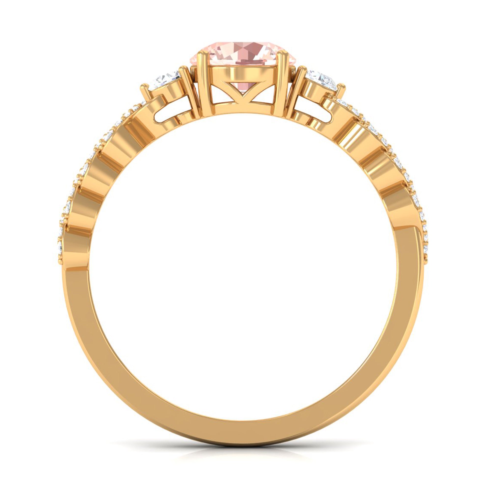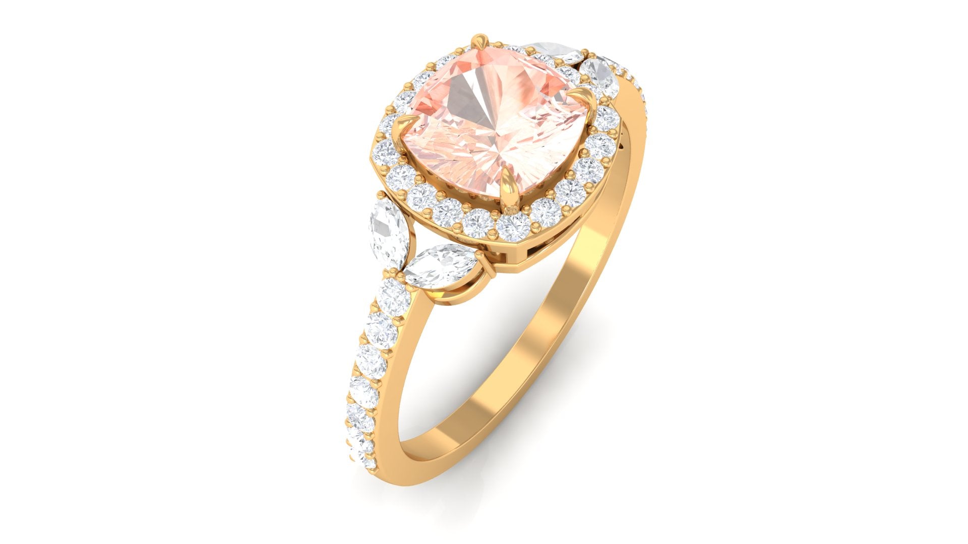 Forever in trend, a Solitaire Morganite Ring boasts a solo centerpiece of Morganite (that is meant to shine out with its enormous size of 6 MM or more). This style makes for one of the most classic cum conventional choices in the Morganite Engagement Ring. What’s more, this timeless style offers you a wide scope of versatility. It ranges from a Round Morganite Ring for the traditional bride to fancier ones like Marquise, Pear, or Princess Cut Solitaire Ring for the bride who likes to keep up with the trends. On the other hand, if nothing appeals quite like a little vintage touch, you can rely on old-school shapes like an Asscher, Cushion, or Emerald Cut Morganite Ring.