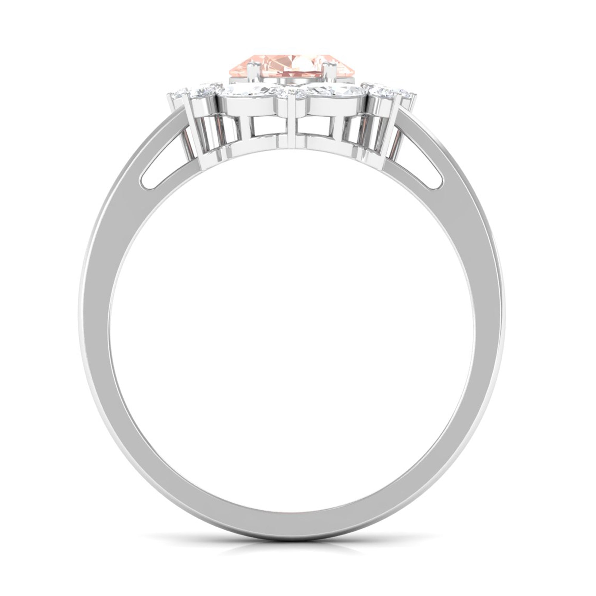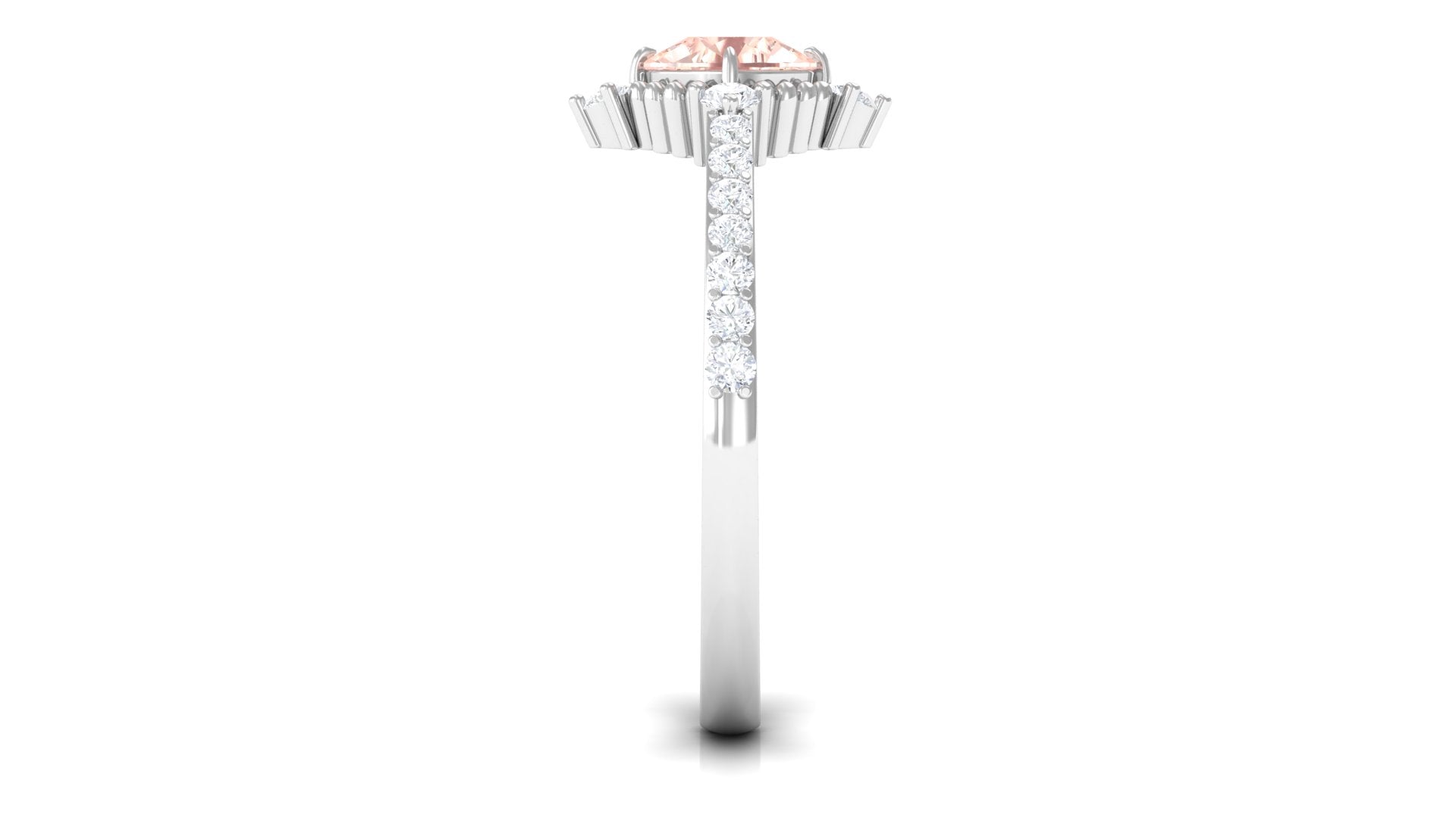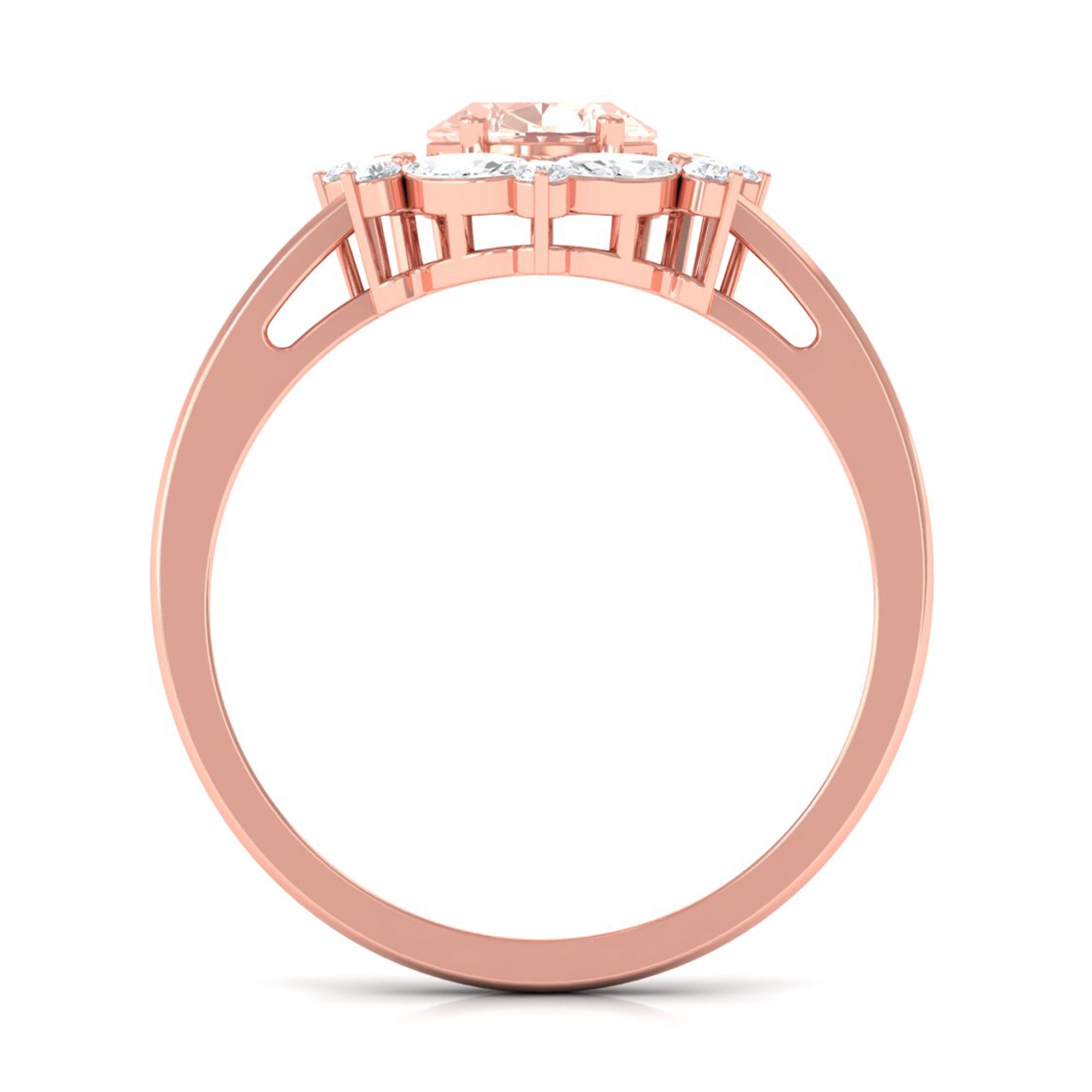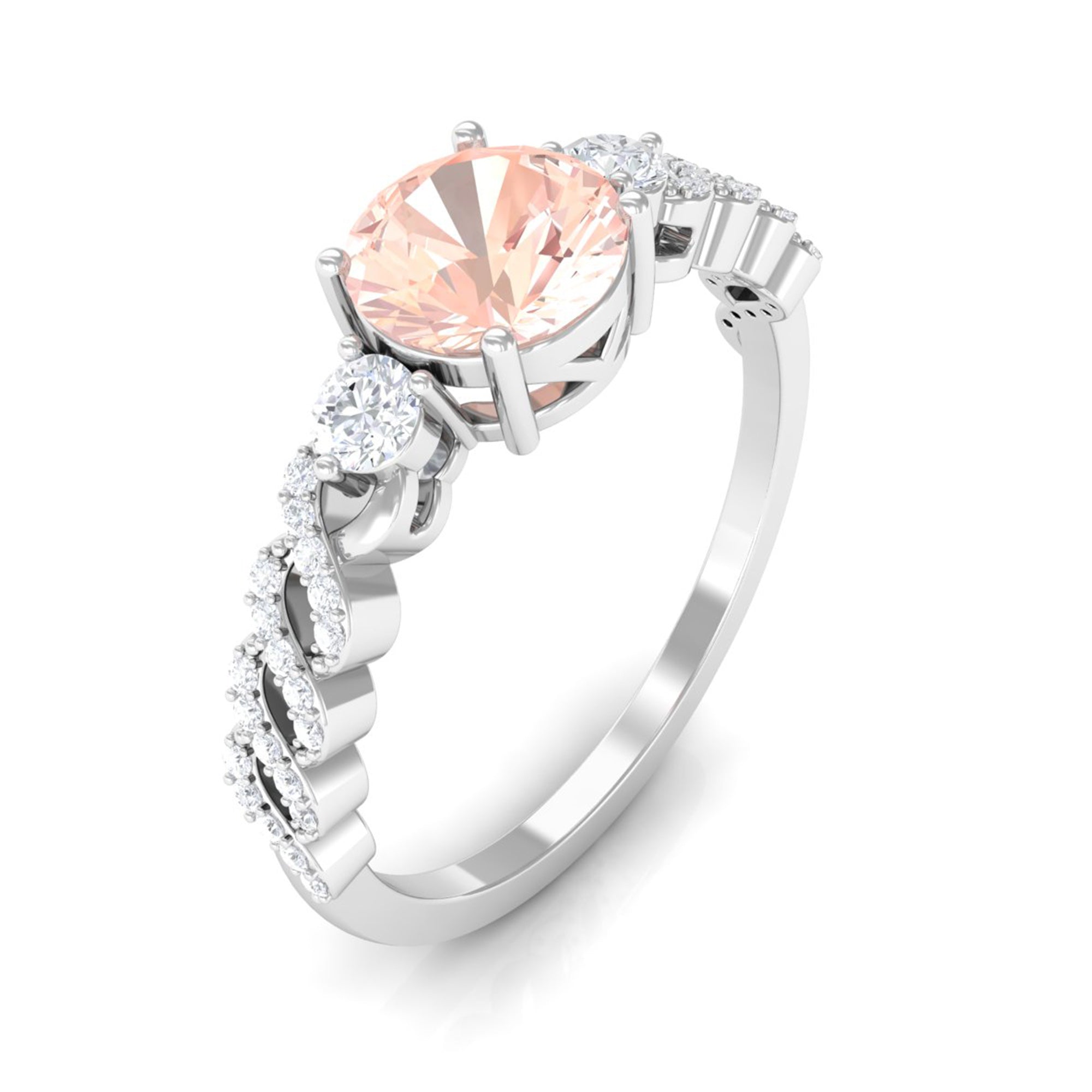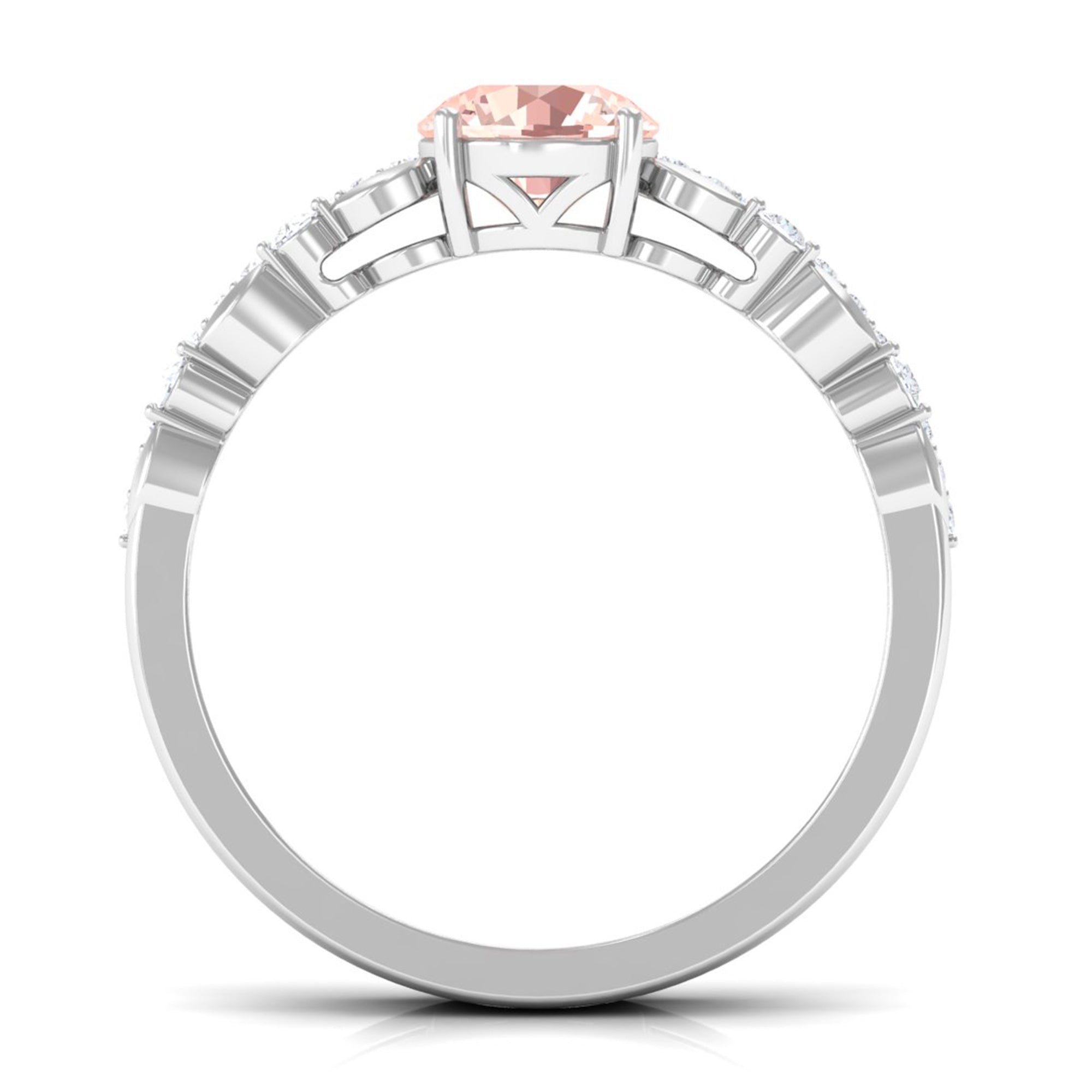 Forever in trend, a Solitaire Morganite Ring boasts a solo centerpiece of Morganite (that is meant to shine out with its enormous size of 6 MM or more). This style makes for one of the most classic cum conventional choices in the Morganite Engagement Ring. What’s more, this timeless style offers you a wide scope of versatility. It ranges from a Round Morganite Ring for the traditional bride to fancier ones like Marquise, Pear, or Princess Cut Solitaire Ring for the bride who likes to keep up with the trends. On the other hand, if nothing appeals quite like a little vintage touch, you can rely on old-school shapes like an Asscher, Cushion, or Emerald Cut Morganite Ring.