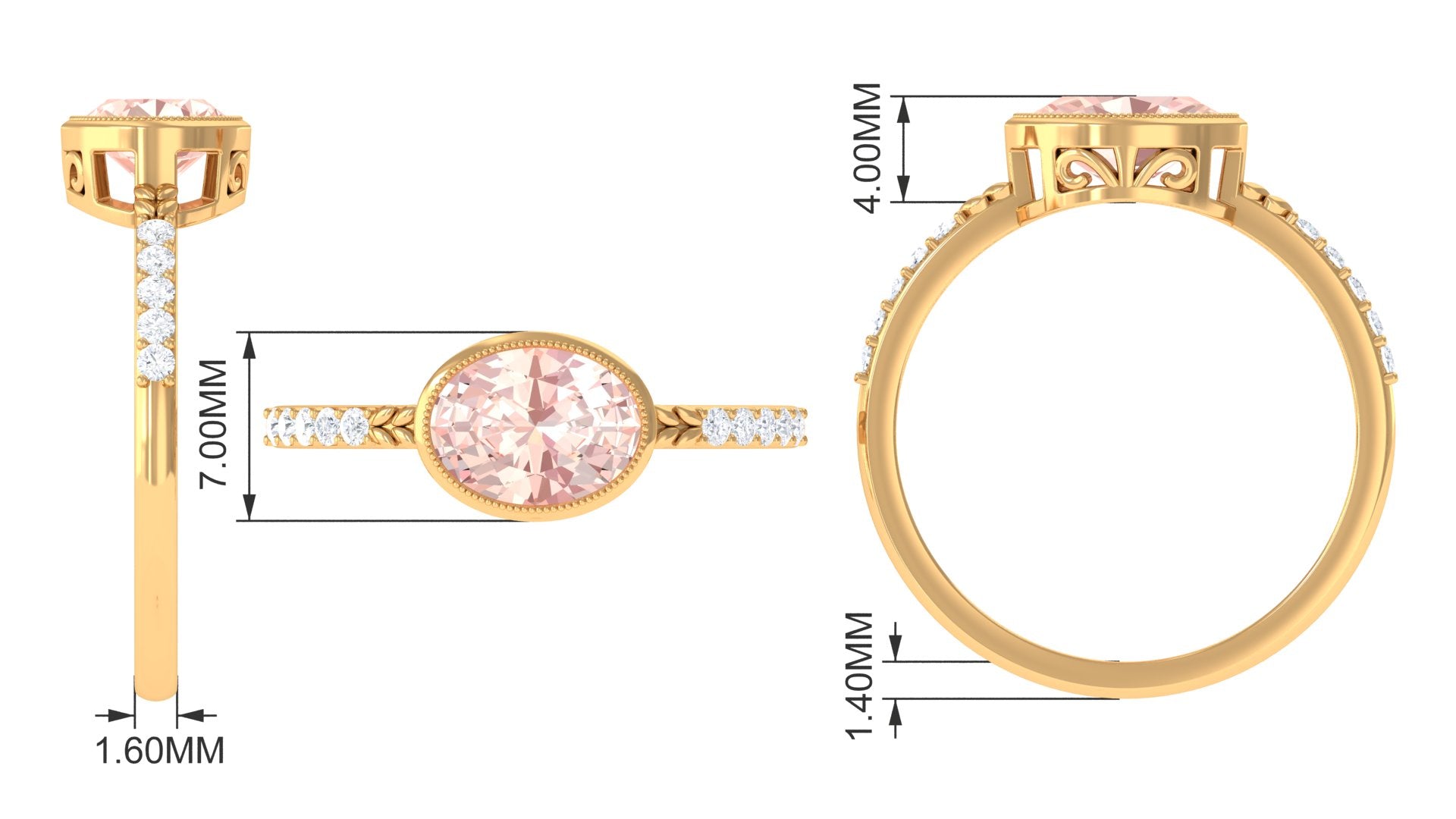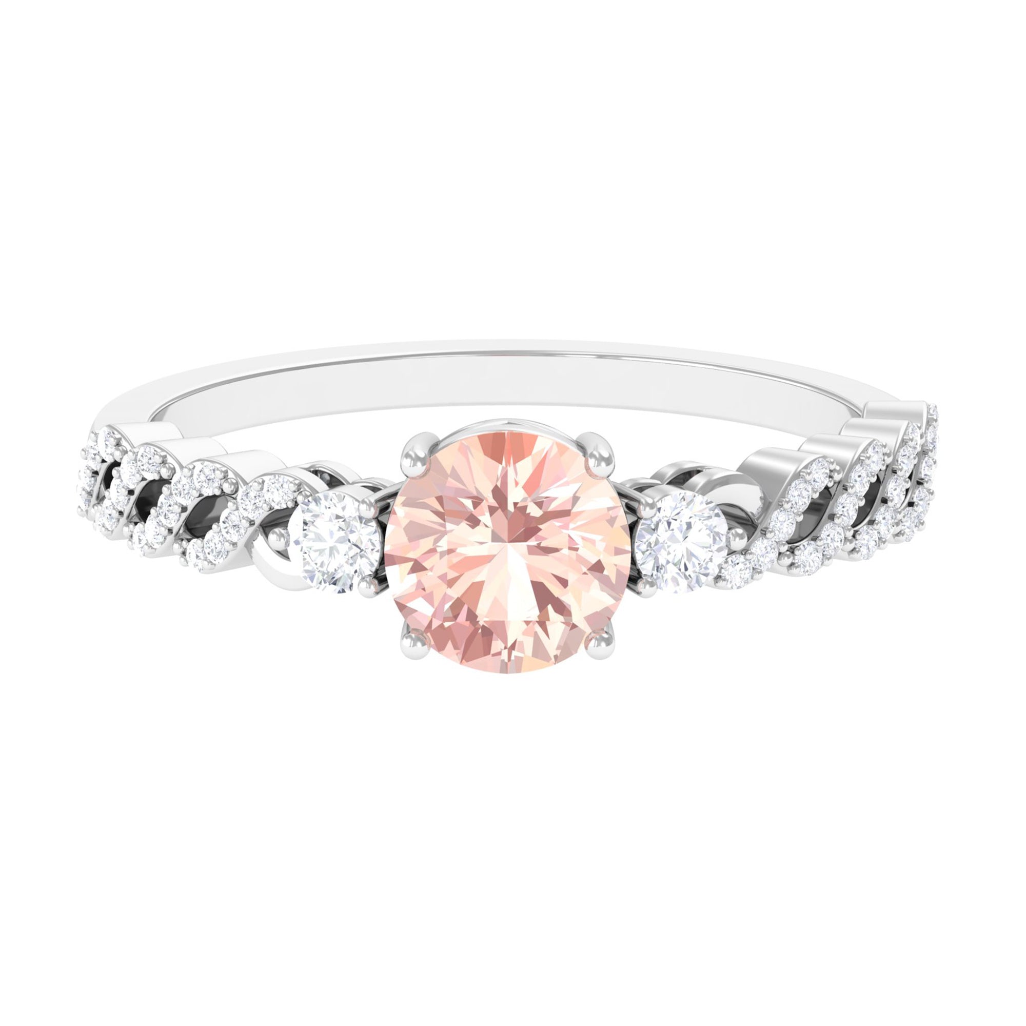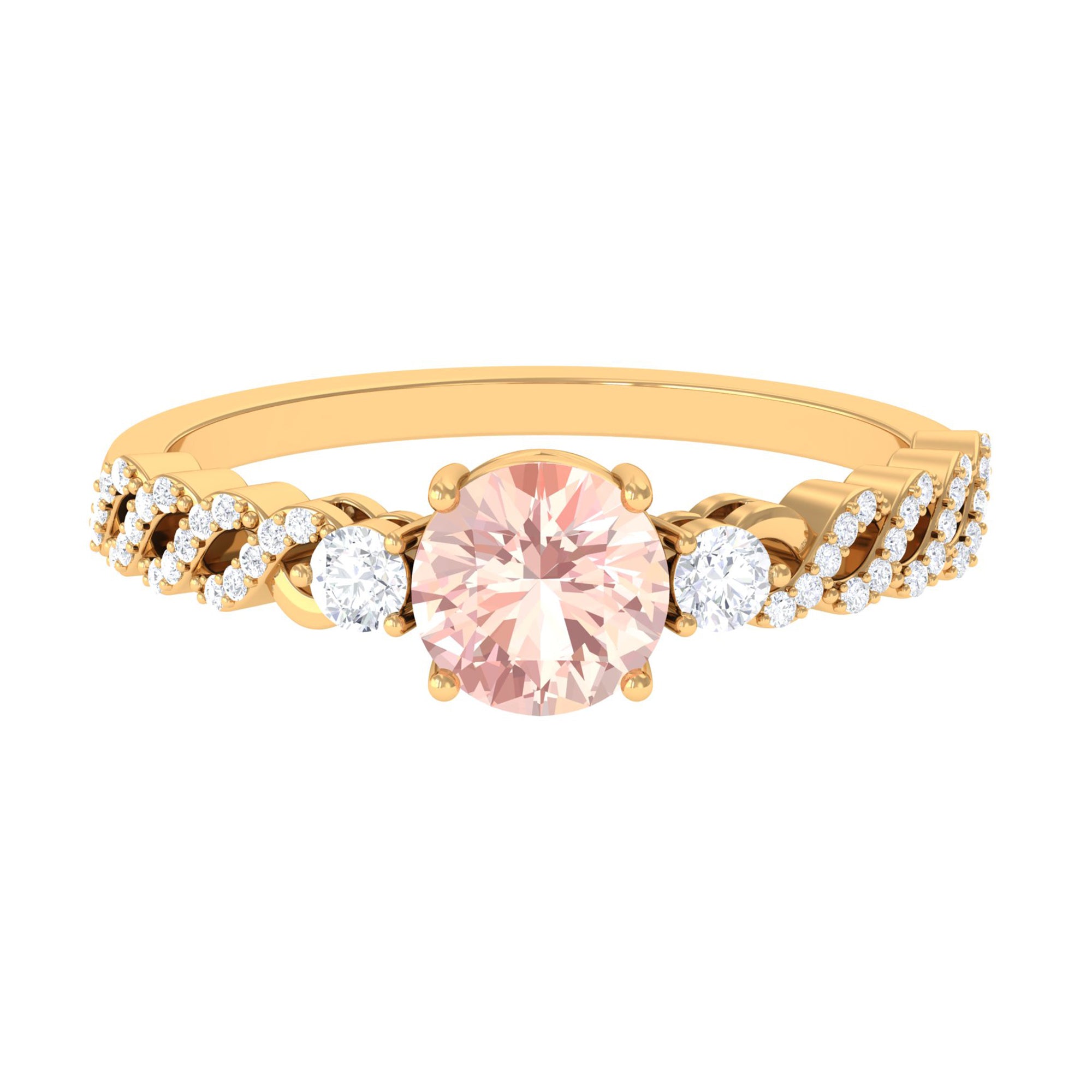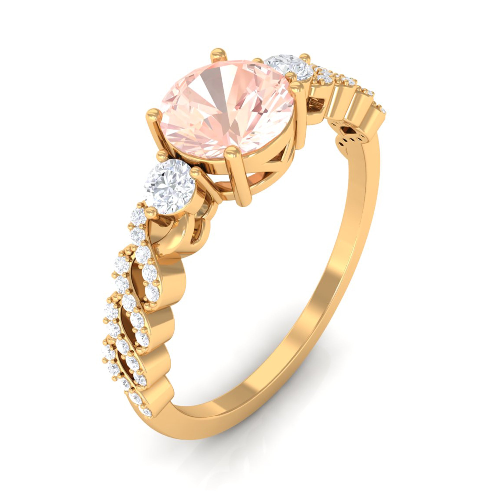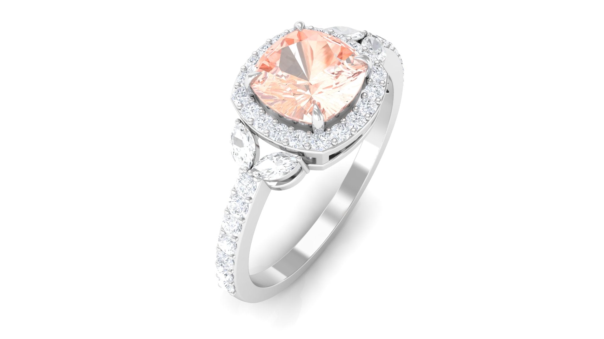 Forever in trend, a Solitaire Morganite Ring boasts a solo centerpiece of Morganite (that is meant to shine out with its enormous size of 6 MM or more). This style makes for one of the most classic cum conventional choices in the Morganite Engagement Ring. What’s more, this timeless style offers you a wide scope of versatility. It ranges from a Round Morganite Ring for the traditional bride to fancier ones like Marquise, Pear, or Princess Cut Solitaire Ring for the bride who likes to keep up with the trends. On the other hand, if nothing appeals quite like a little vintage touch, you can rely on old-school shapes like an Asscher, Cushion, or Emerald Cut Morganite Ring.