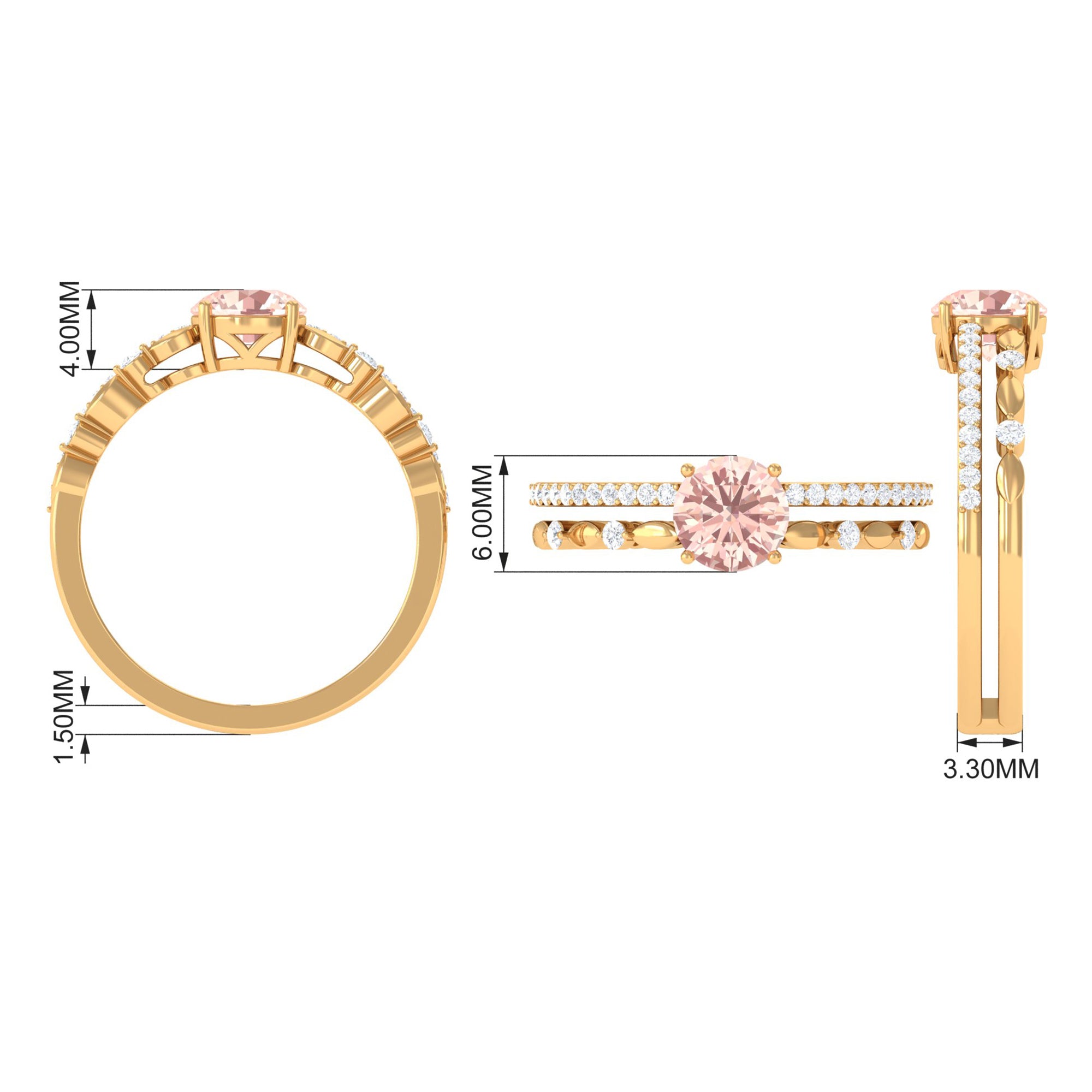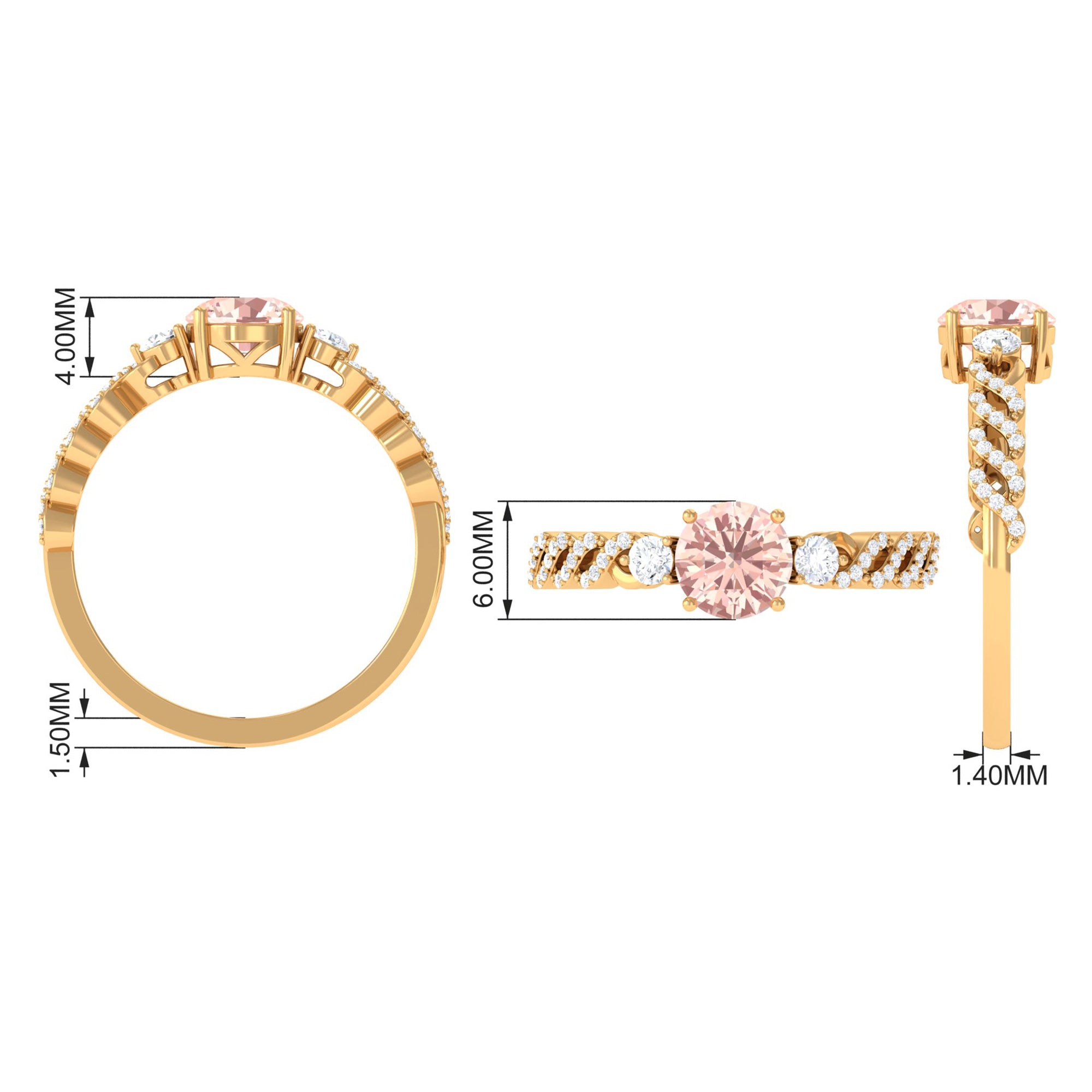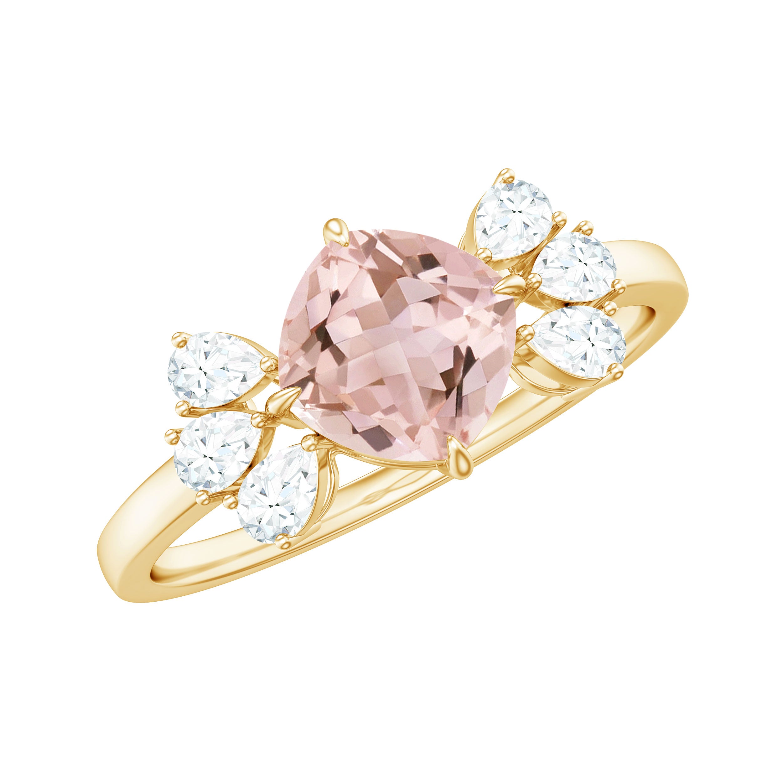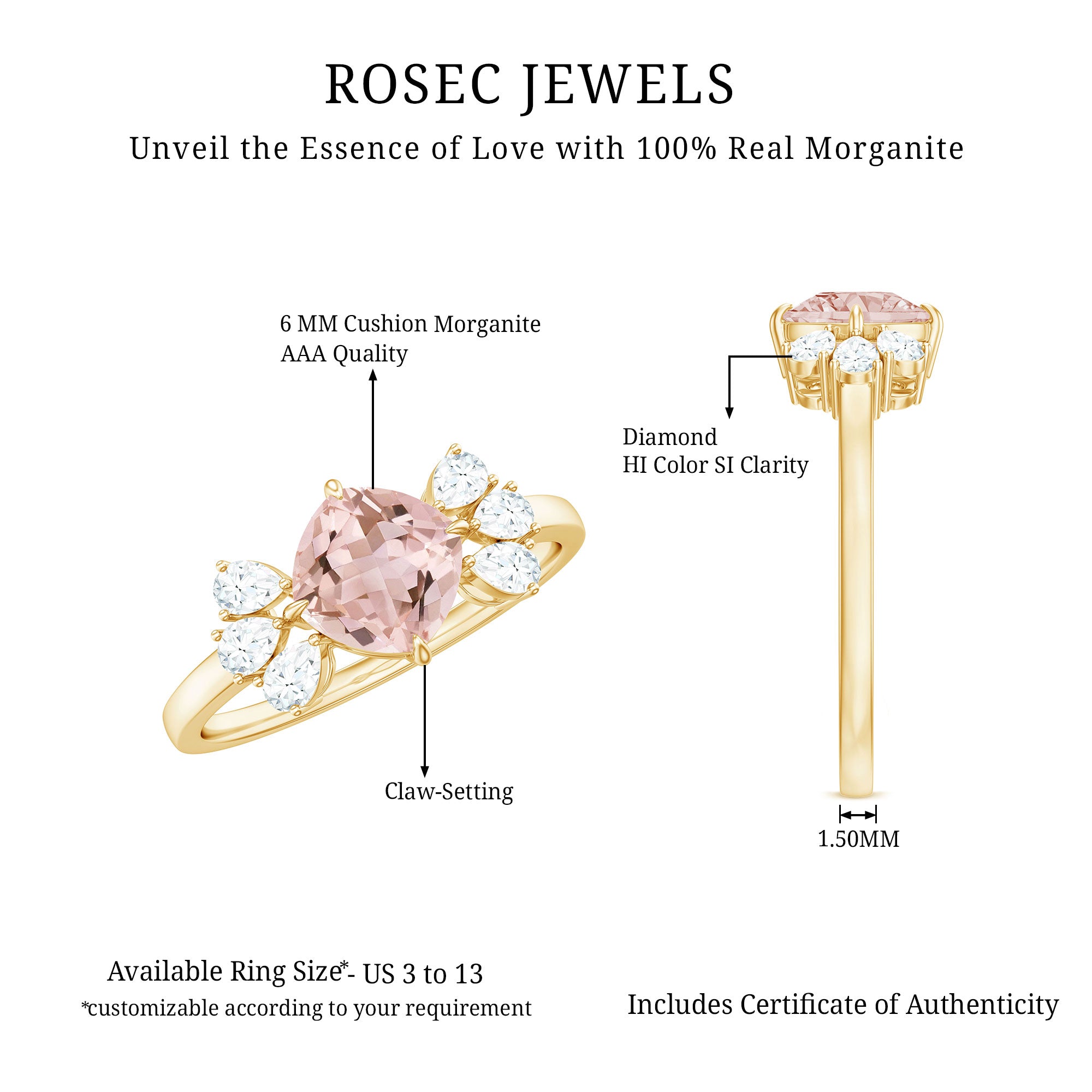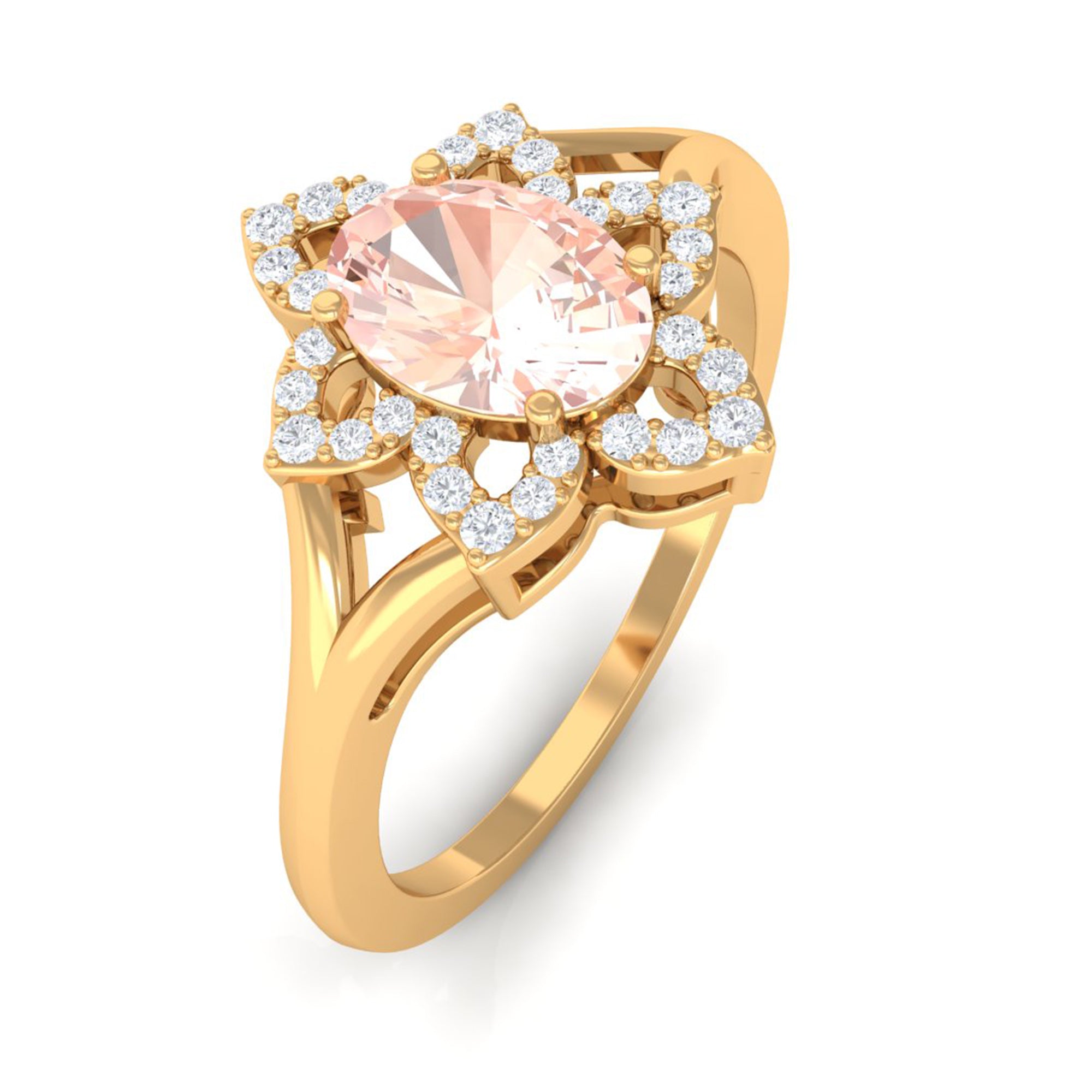 Forever in trend, a Solitaire Morganite Ring boasts a solo centerpiece of Morganite (that is meant to shine out with its enormous size of 6 MM or more). This style makes for one of the most classic cum conventional choices in the Morganite Engagement Ring. What’s more, this timeless style offers you a wide scope of versatility. It ranges from a Round Morganite Ring for the traditional bride to fancier ones like Marquise, Pear, or Princess Cut Solitaire Ring for the bride who likes to keep up with the trends. On the other hand, if nothing appeals quite like a little vintage touch, you can rely on old-school shapes like an Asscher, Cushion, or Emerald Cut Morganite Ring.