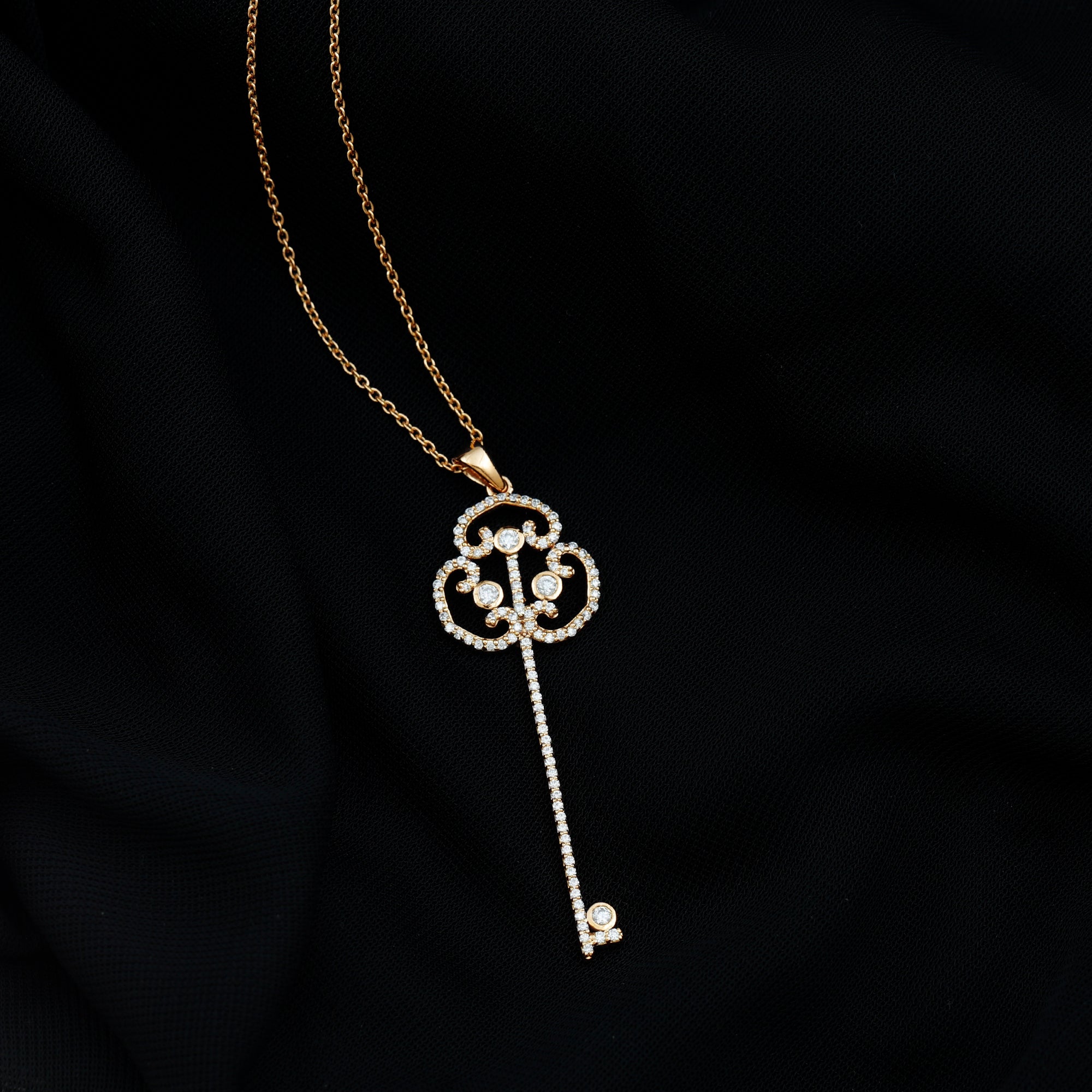Key Necklace: Key shaped metal frame is adorned with dainty gemstones in necklaces, and is chosen to represent freedom, milestones, unlocking new beginnings.