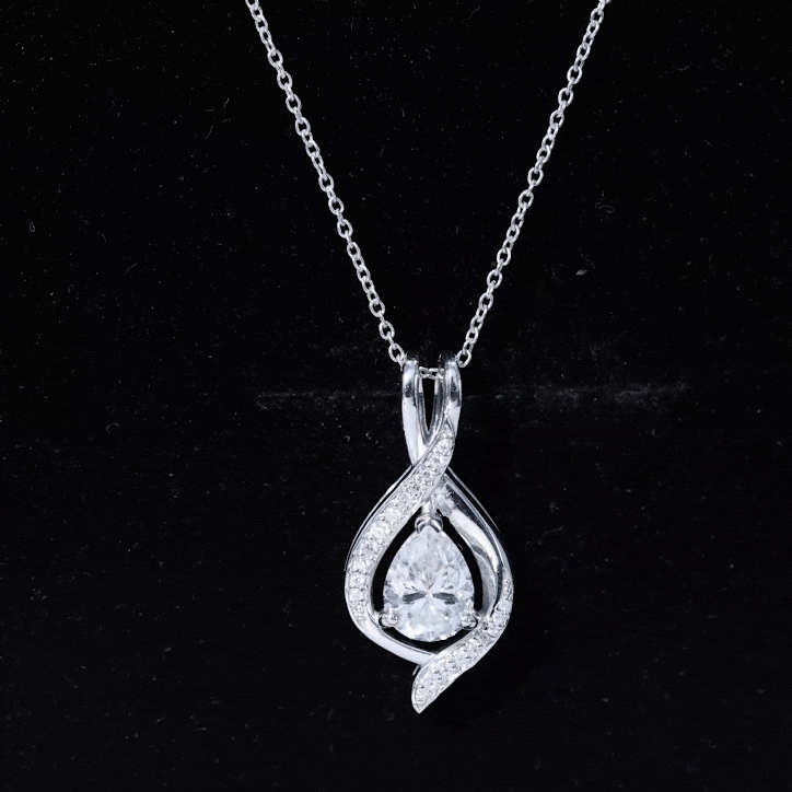 A pendant is a charm decorated with gemstones that hangs from a metal chain. While a necklace is a complete neck jewelry piece that comes with both a pendant and a chain.