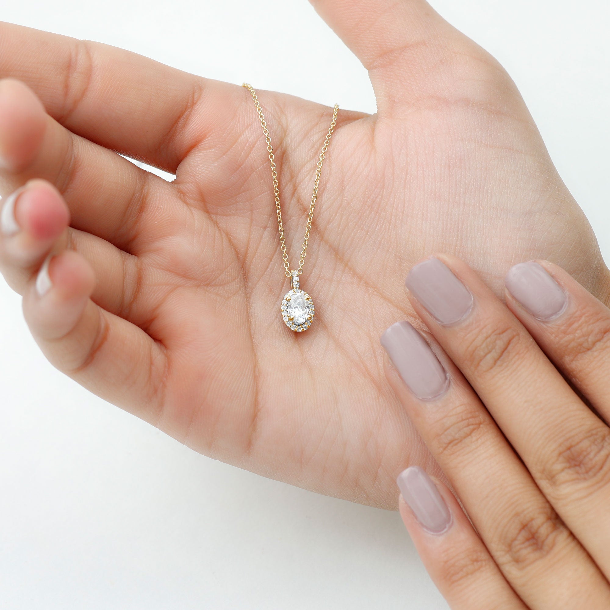 Halo Necklace: Halo necklaces are for those who love extra sparkle in their necklaces, besides the shine of single gemstone. Central gemstone is surrounded by dainty shining or colored gemstones of different shapes to make different designs. Elegant and eye-catching, these necklaces are statement pieces for your every moment.