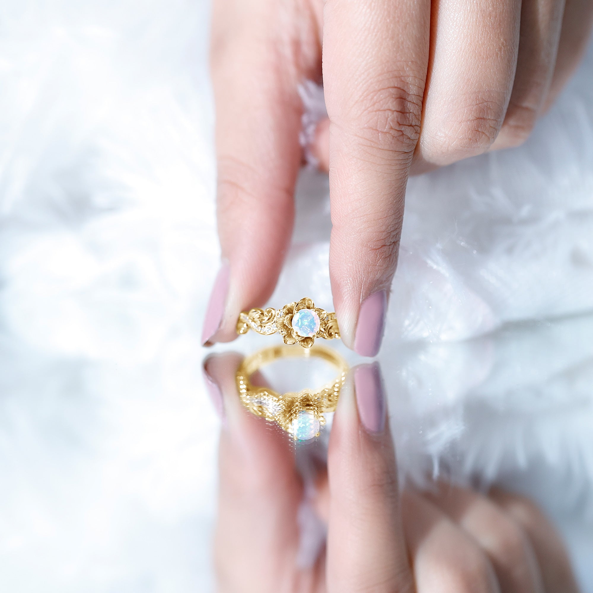 Each opal is unique, just like every love story. this property making it a perfect choice for those who want their engagement ring to reflect their distinct relationship. The ethereal beauty of Ethiopian opals also adds a sense of mystery, making it a perfect choice for proposal.