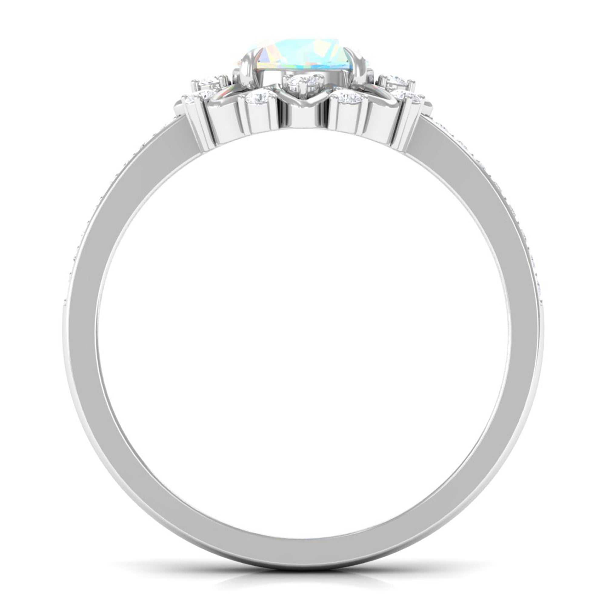 Ethiopian opal rings for women are a unique and vibrant choice for engagement rings. The opal natural play of colors, often shifting between fiery reds, deep blues, and soft greens. Our unique opal and diamond engagement ring symbolizes the dynamic nature of love.