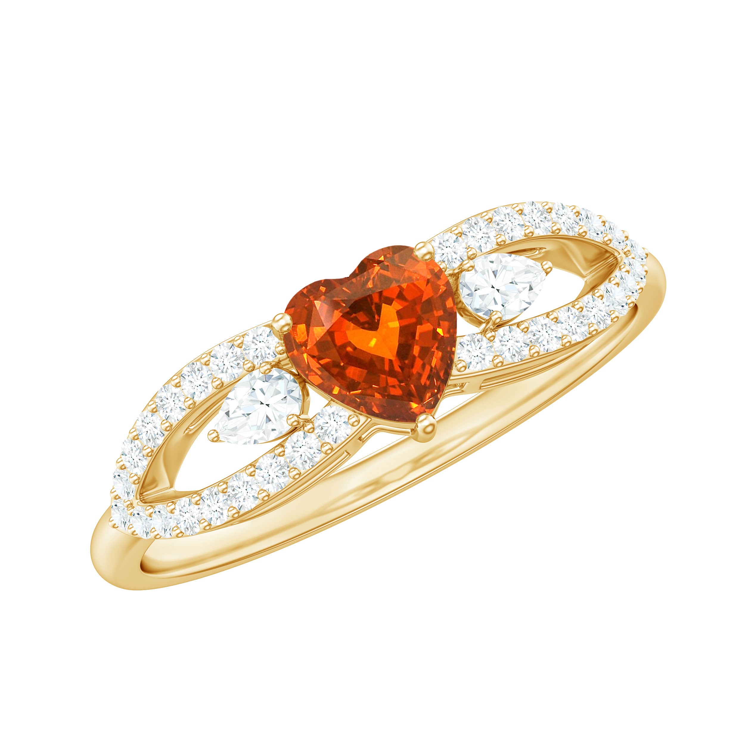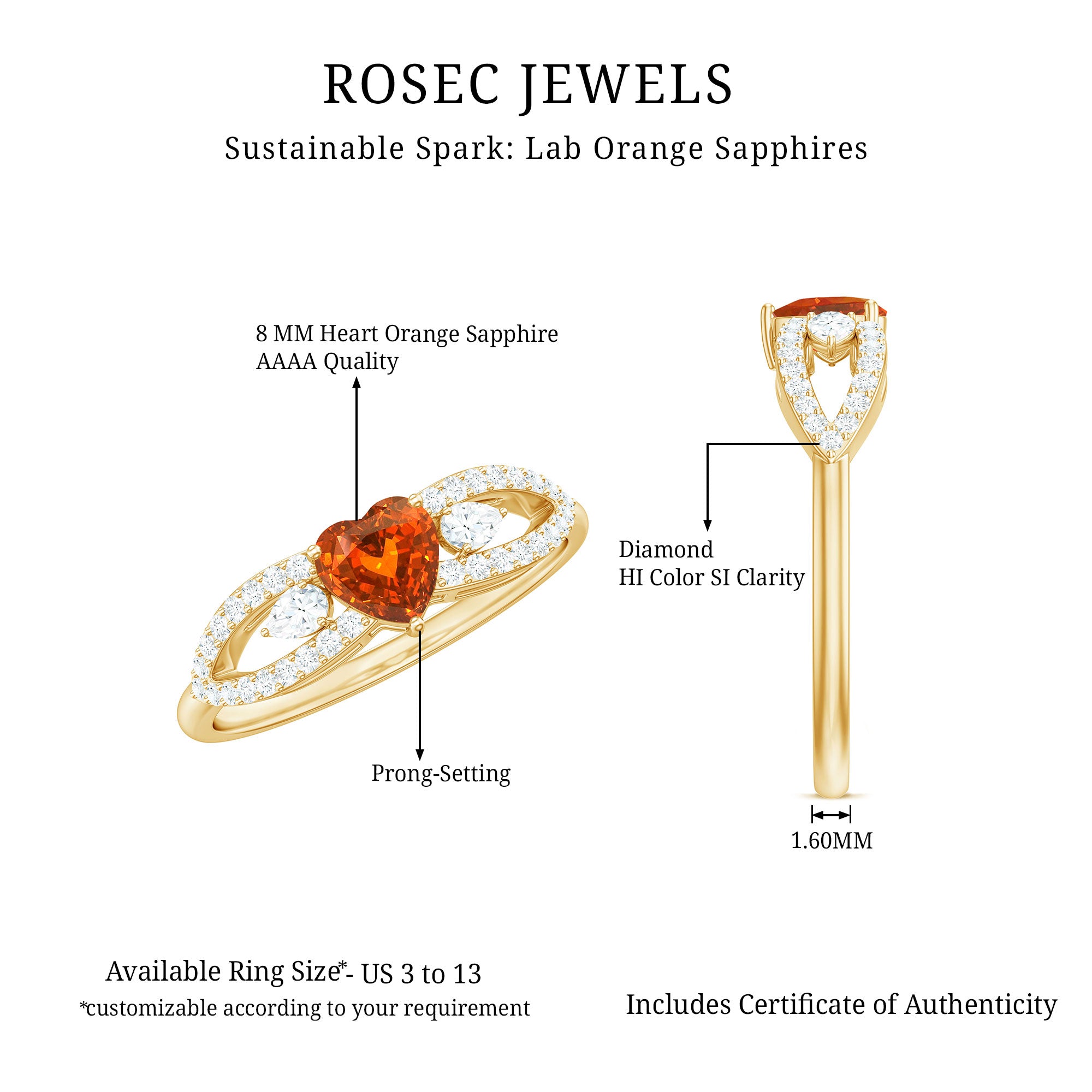 Rosec Jewels’ orange sapphire engagement rings are an exclusive collection for those in search of a rare jewel adorned on the proposal ring. The rare color of this fancy sapphire with resemblance to the rays of sun has made it desirable when it comes to exploring unconventional options in engagement rings for women. Being a member of the corundum family of minerals, the orange sapphire engagement rings tend to be durable. The fantastic hardness of orange sapphires assists our craftsmen to curate assorted engagement ring styles.