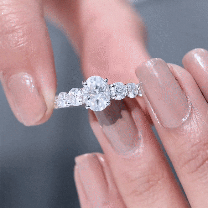 • Solitaire Style: A small or large oval cut gemstone takes the center stage in oval solitaire engagement rings. A single stone gathering all the attention with its shape and brilliance is perfect for a classic, elegant look.