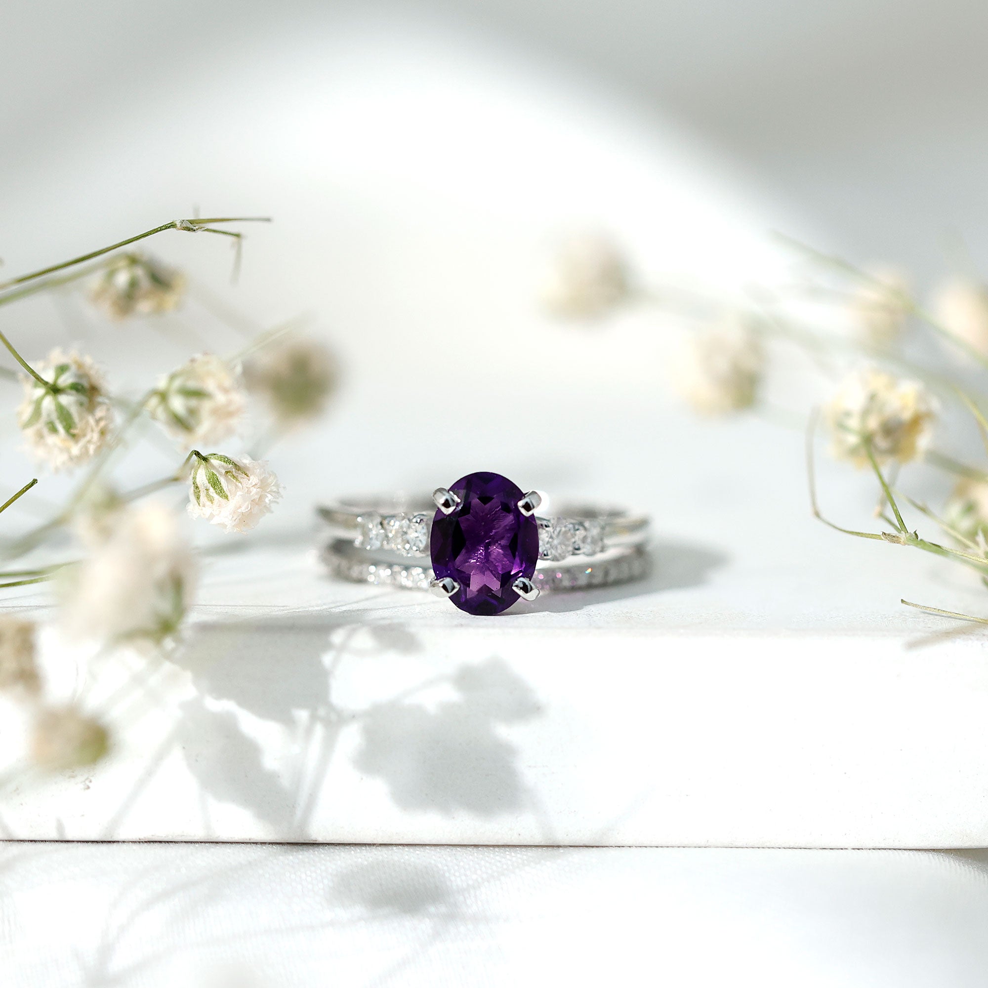 Solitaire Style: A small or large oval cut gemstone takes the center stage in oval solitaire engagement rings. A single stone gathering all the attention with its shape and brilliance is perfect for a classic, elegant look.