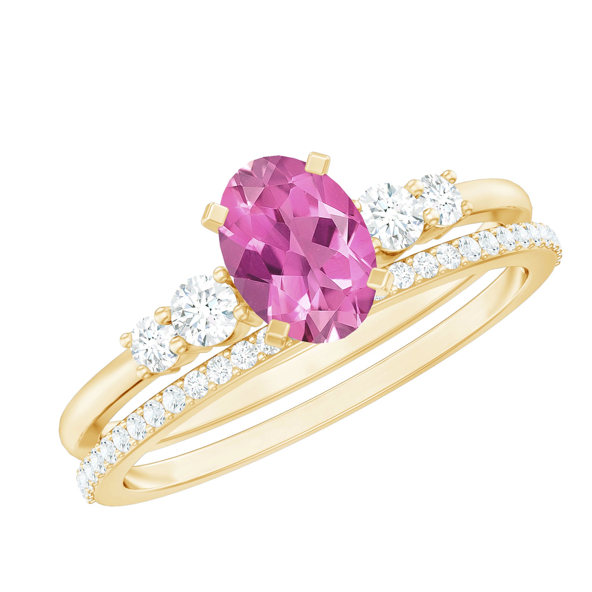 Oval cut gemstones pair well with almost all types of settings, it totally upon one’s taste and preference. Like prong settings with 2, 4, 6 or more can be considered for maximum brilliance and security of the gemstone. Halo and bezel settings are considered best for sparkle and protection.