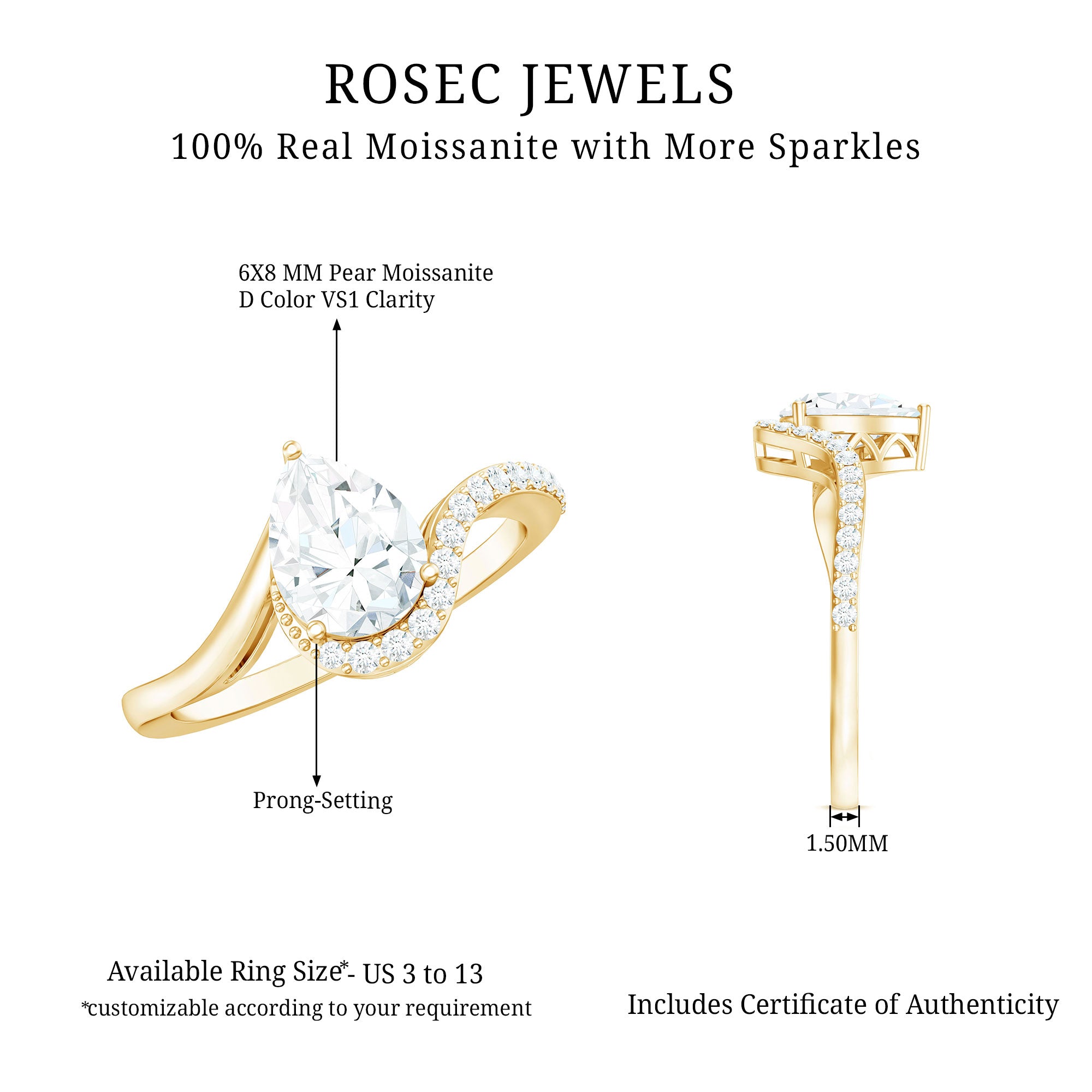 Bezel Setting: Pear engagement rings in bezel setting are among the top choices. As the most delicate pointed tip of the gemstone is wrapped in the metal offering complete protection. This setting helps prevent damage and avoids snagging on clothes, making a teardrop engagement ring a practical choice for everyday wear.