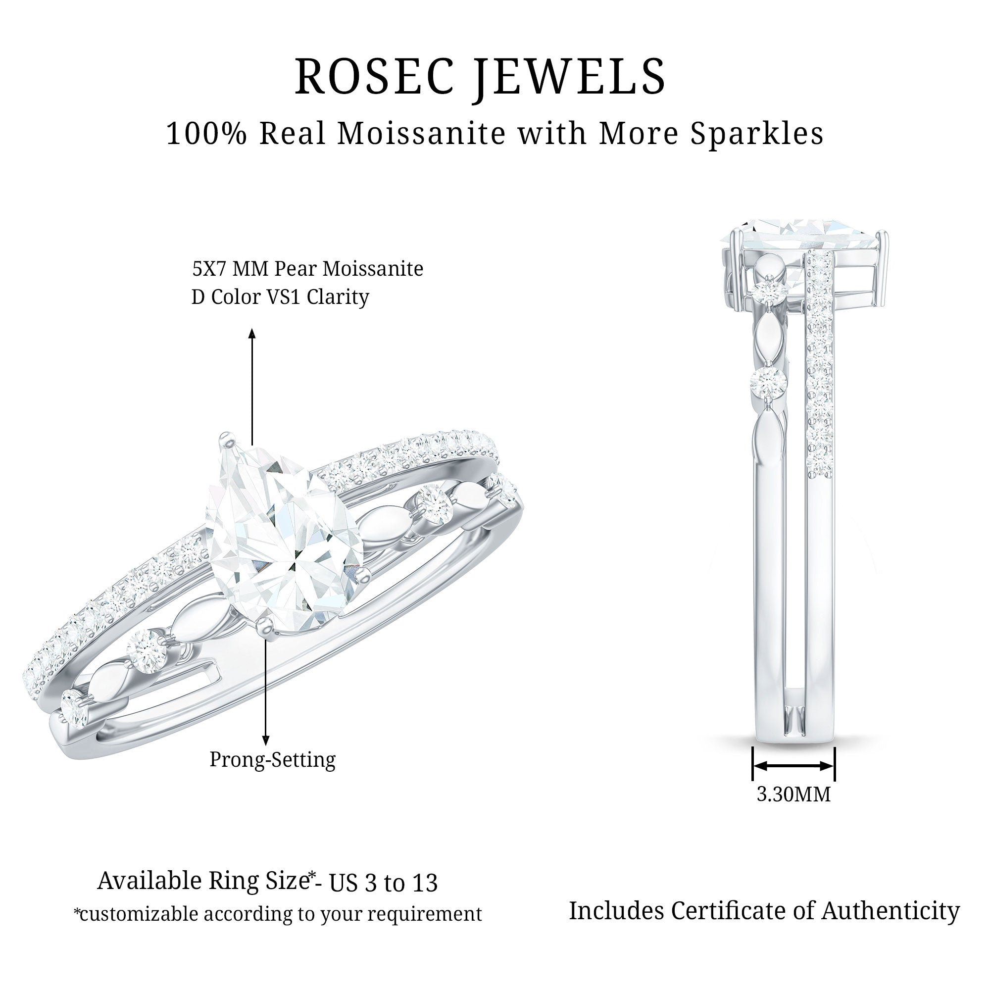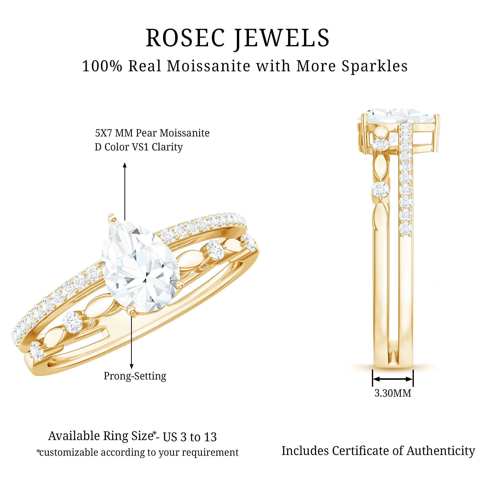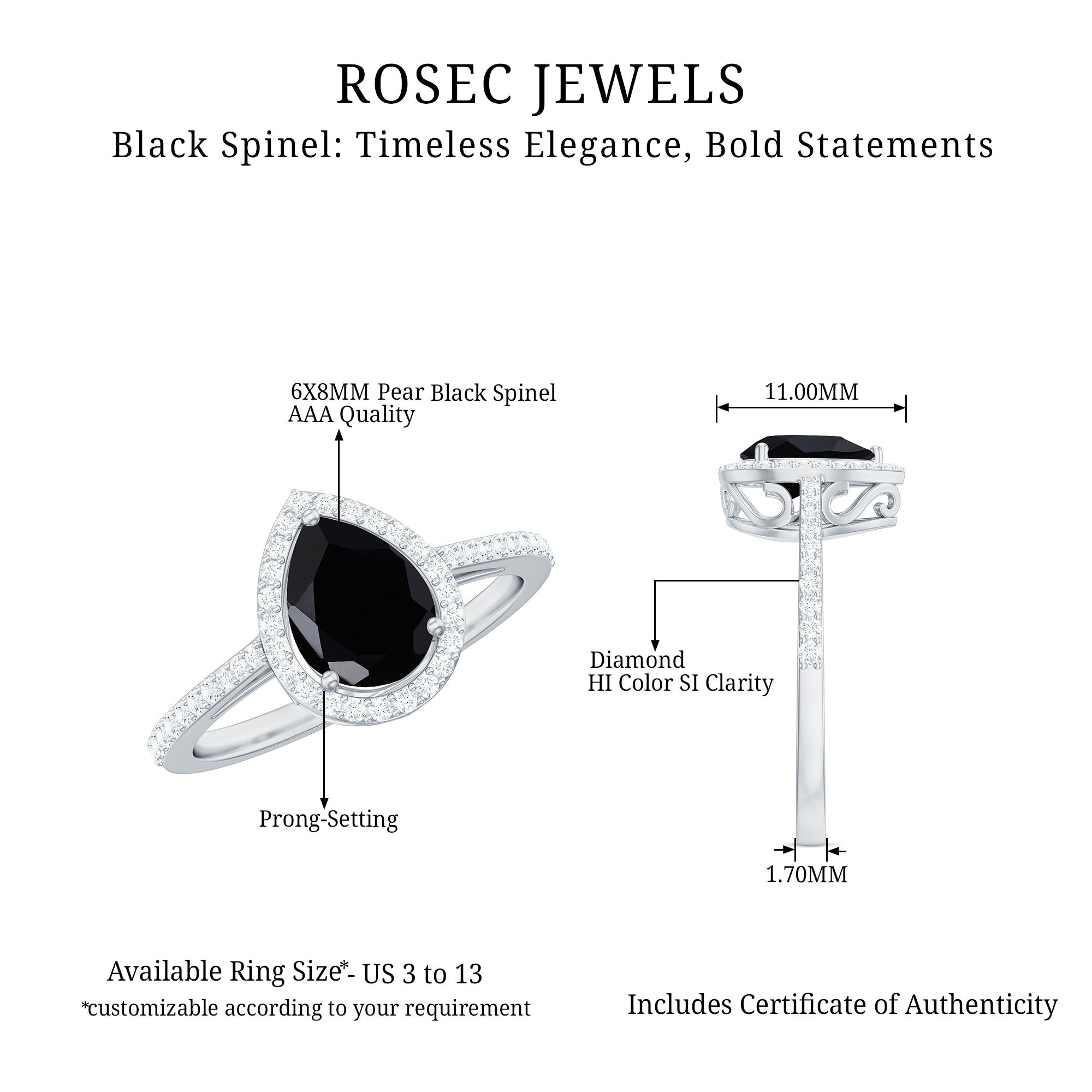 Many designs allow customization such as metal type, gemstone selection, and setting style.