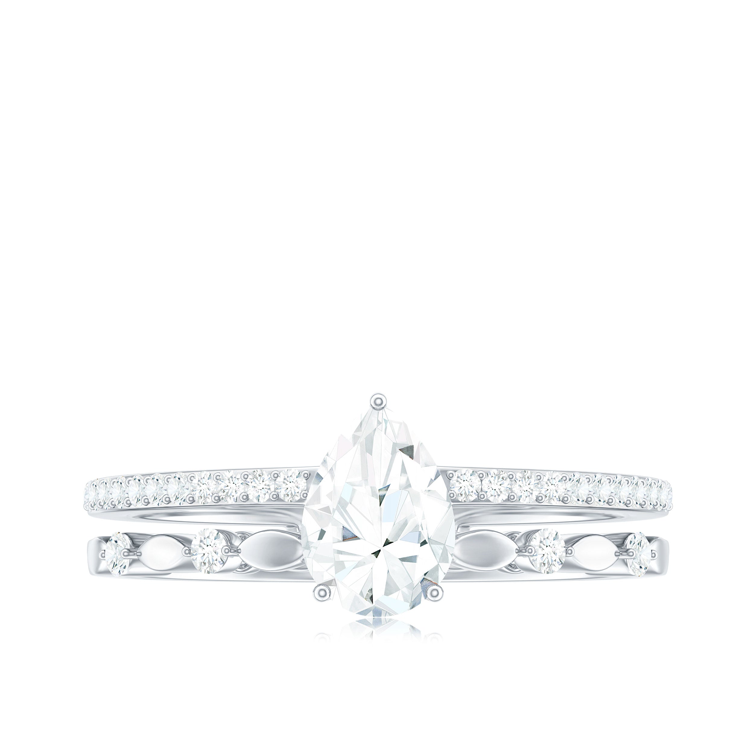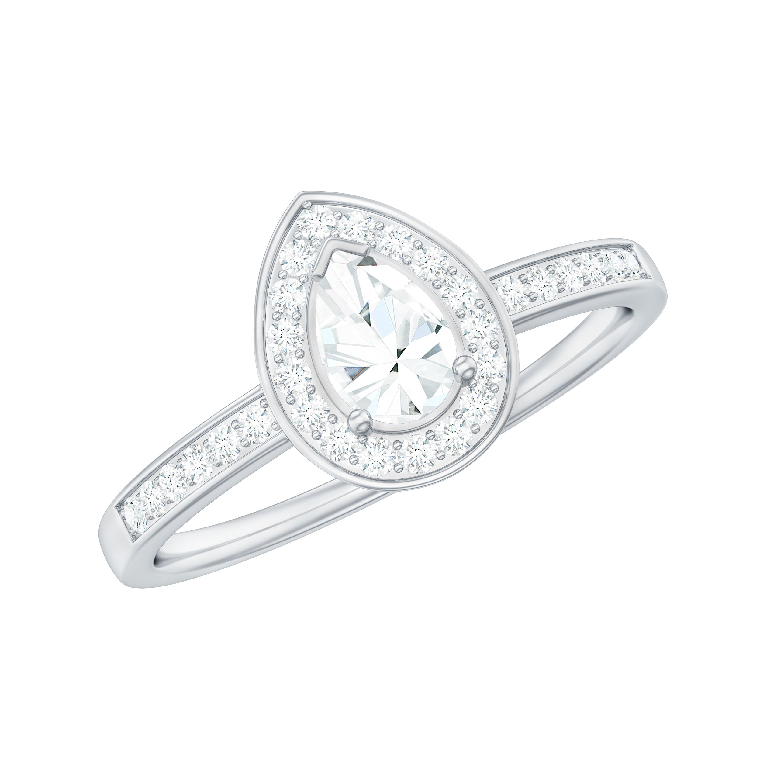 Lab Grown Diamond, Sapphire, ruby, emerald, moissanite, aquamarine, and topaz are popular choices for pear shaped jewelry.