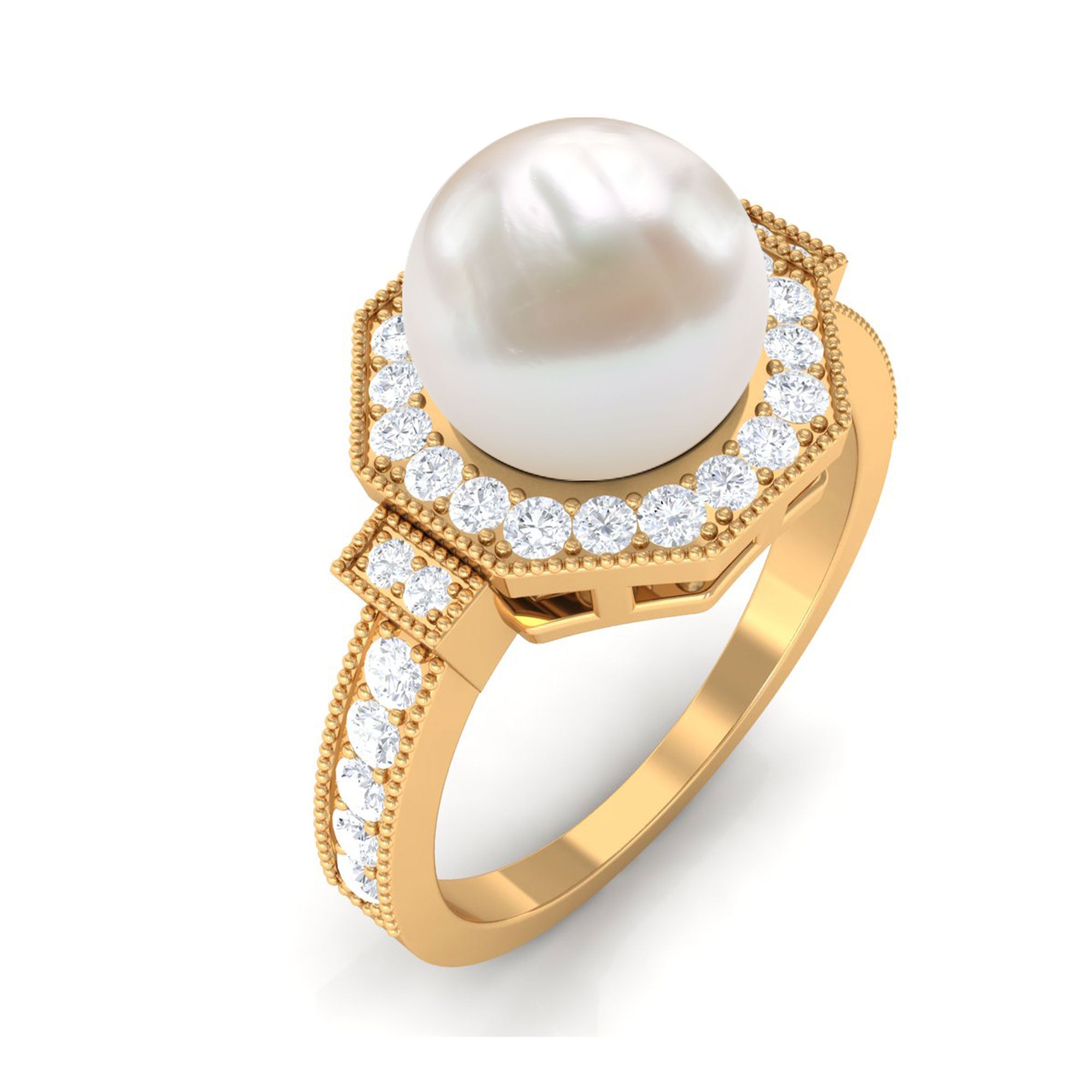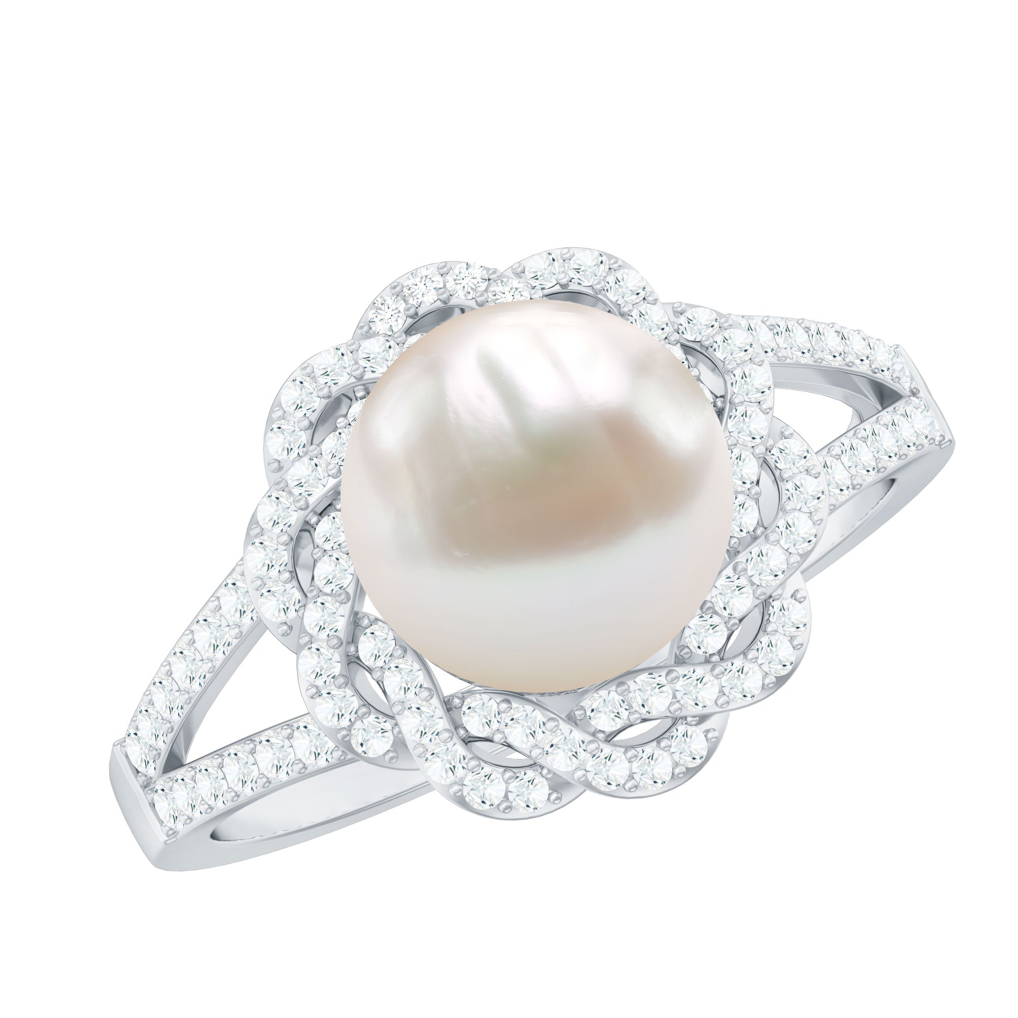 Freshwater Pearls Halo Rings: - each piece of freshwater pearl halo ring features a center attraction pearl that is securely encircled by small glittering diamonds or moissanite. This contrast maximizes the charm and elegance of the pearl, offering an enchanting visual impact.