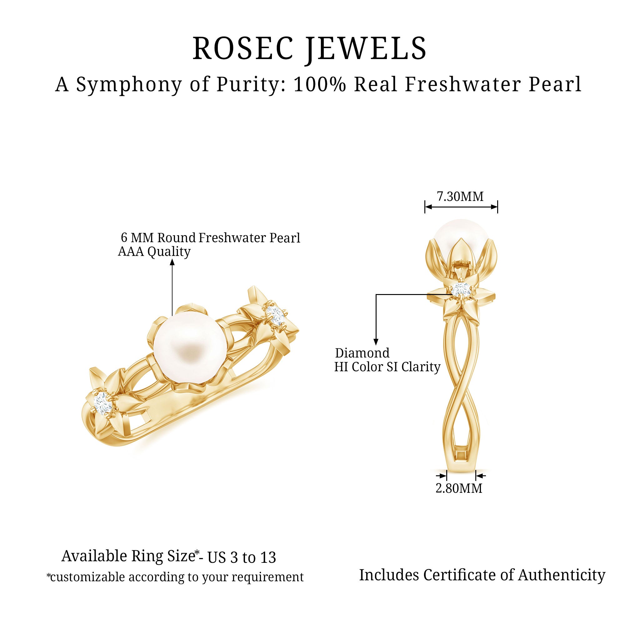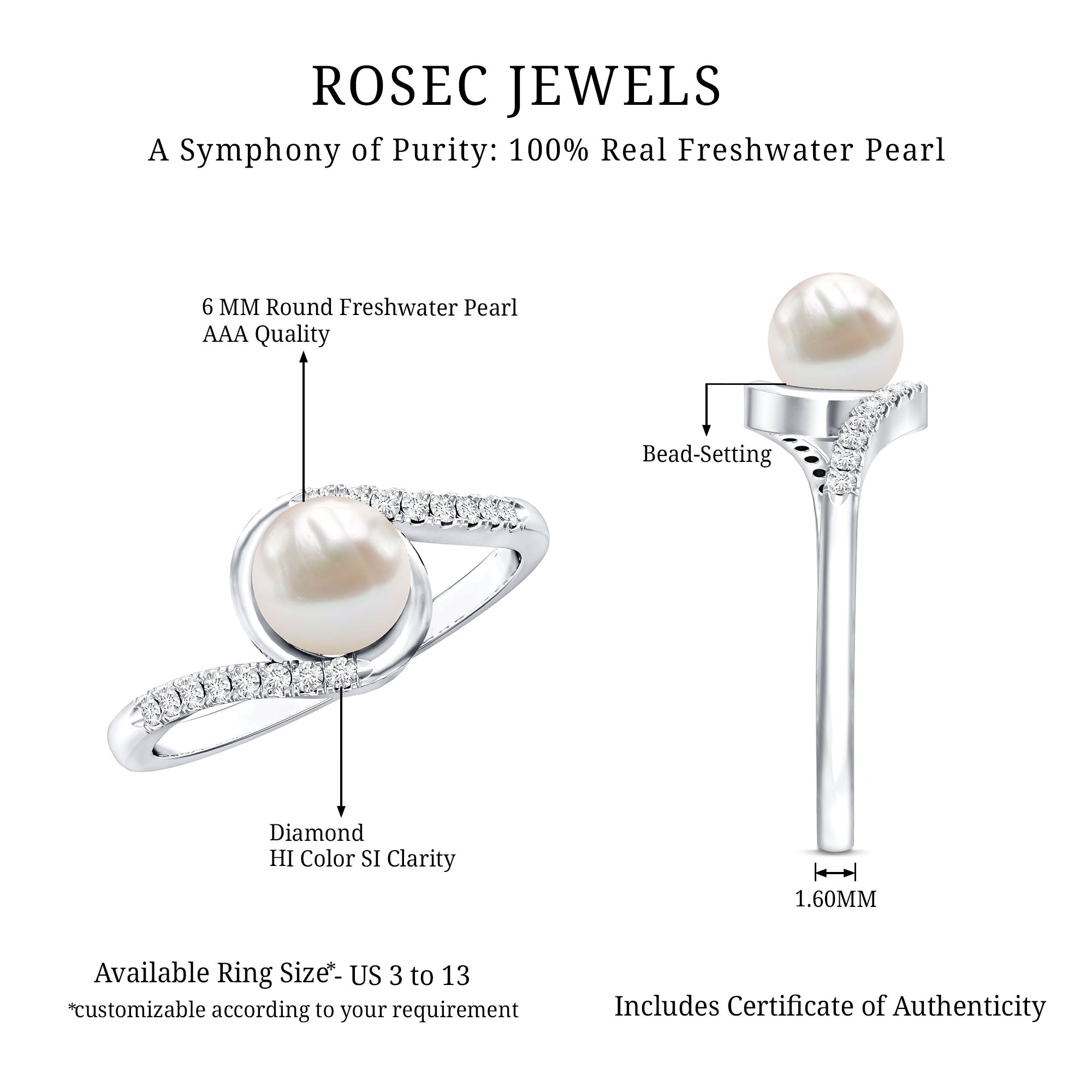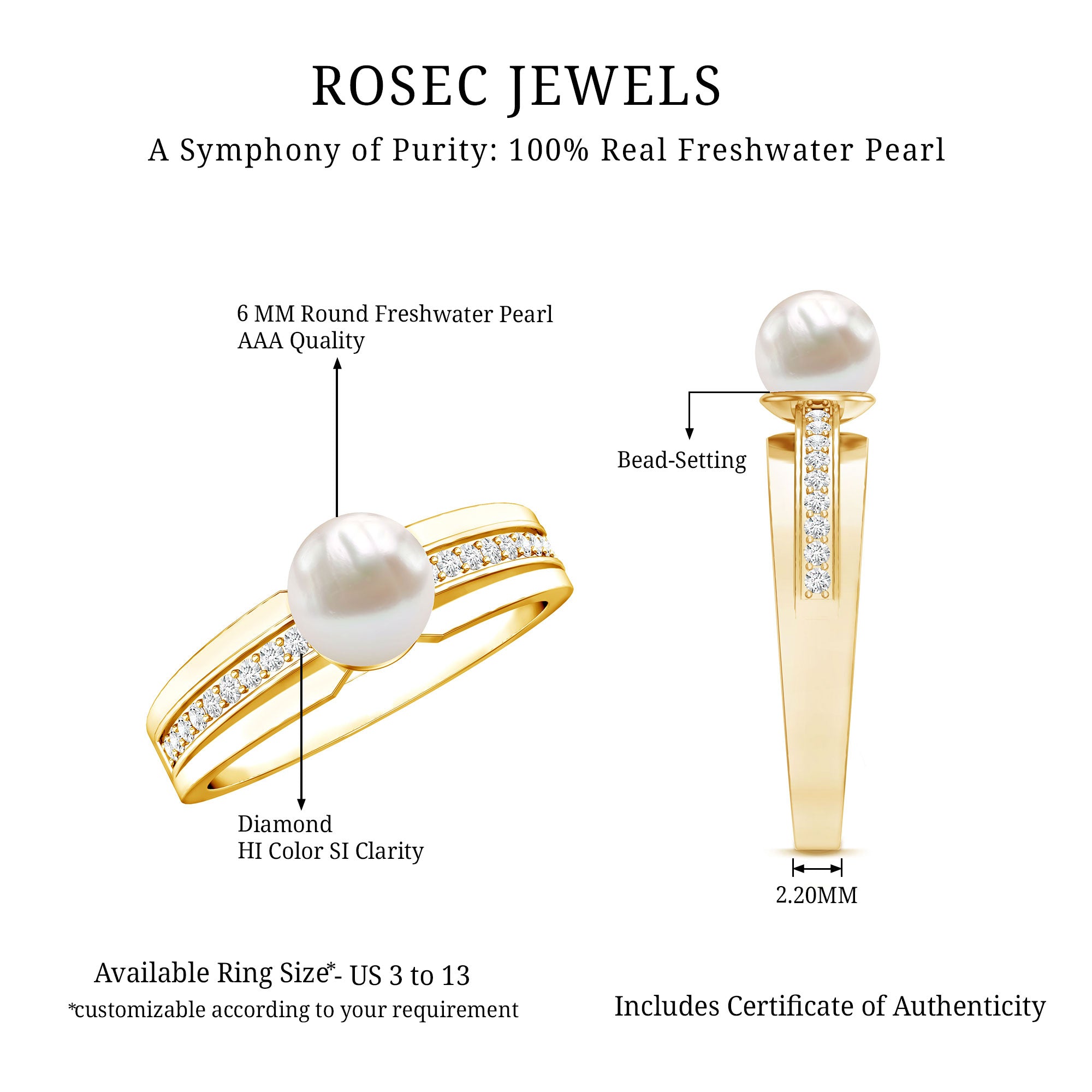Freshwater Pearl Solitaire Rings: - Features a single pearl, set to grab the attention as a centerpiece. Our freshwater pearl solitaire rings are sought-after for their refinement and simplicity. Typically, solitaire pearl rings crafted in metal bands like white gold, yellow gold, and sterling silver, create timeless elegance for wearers.