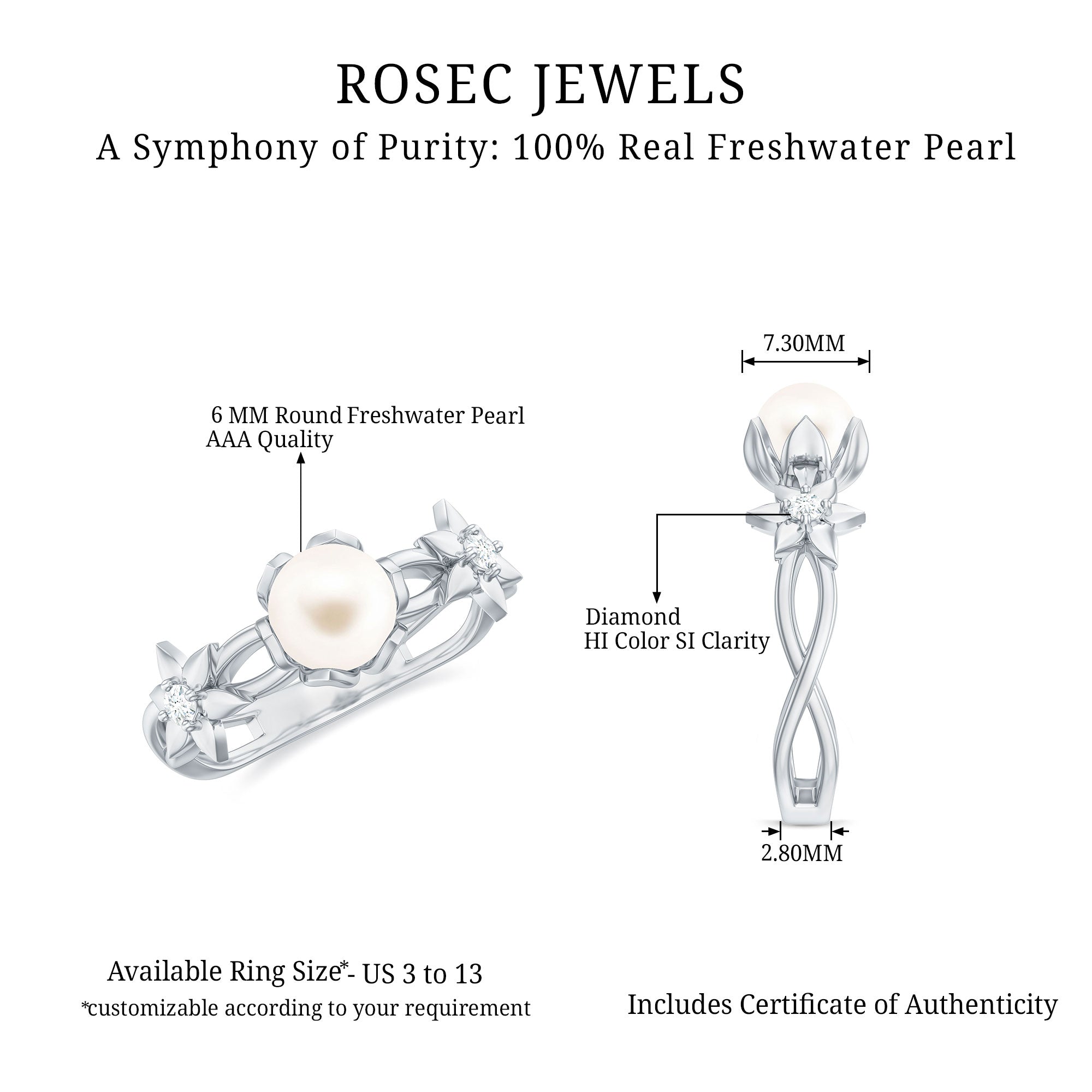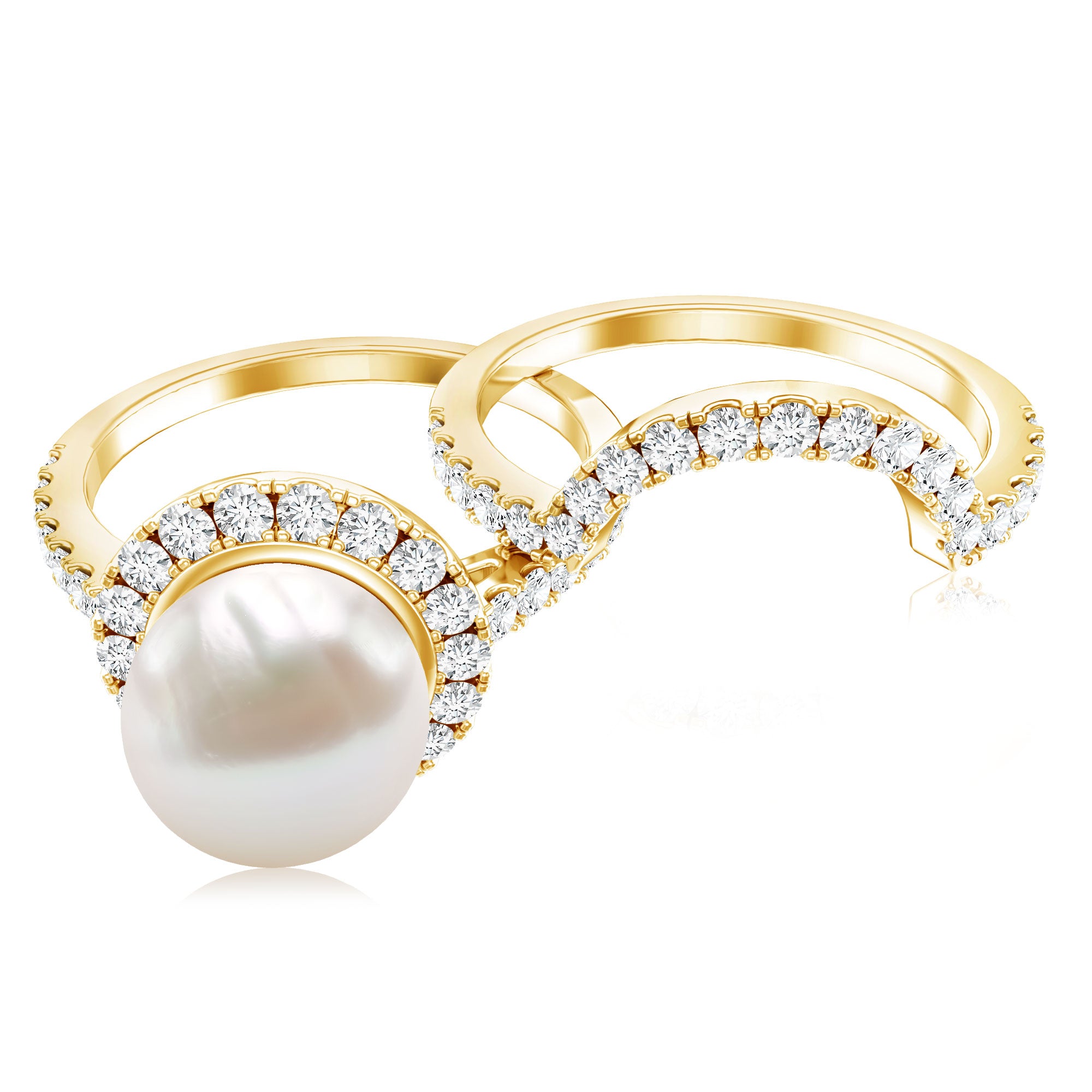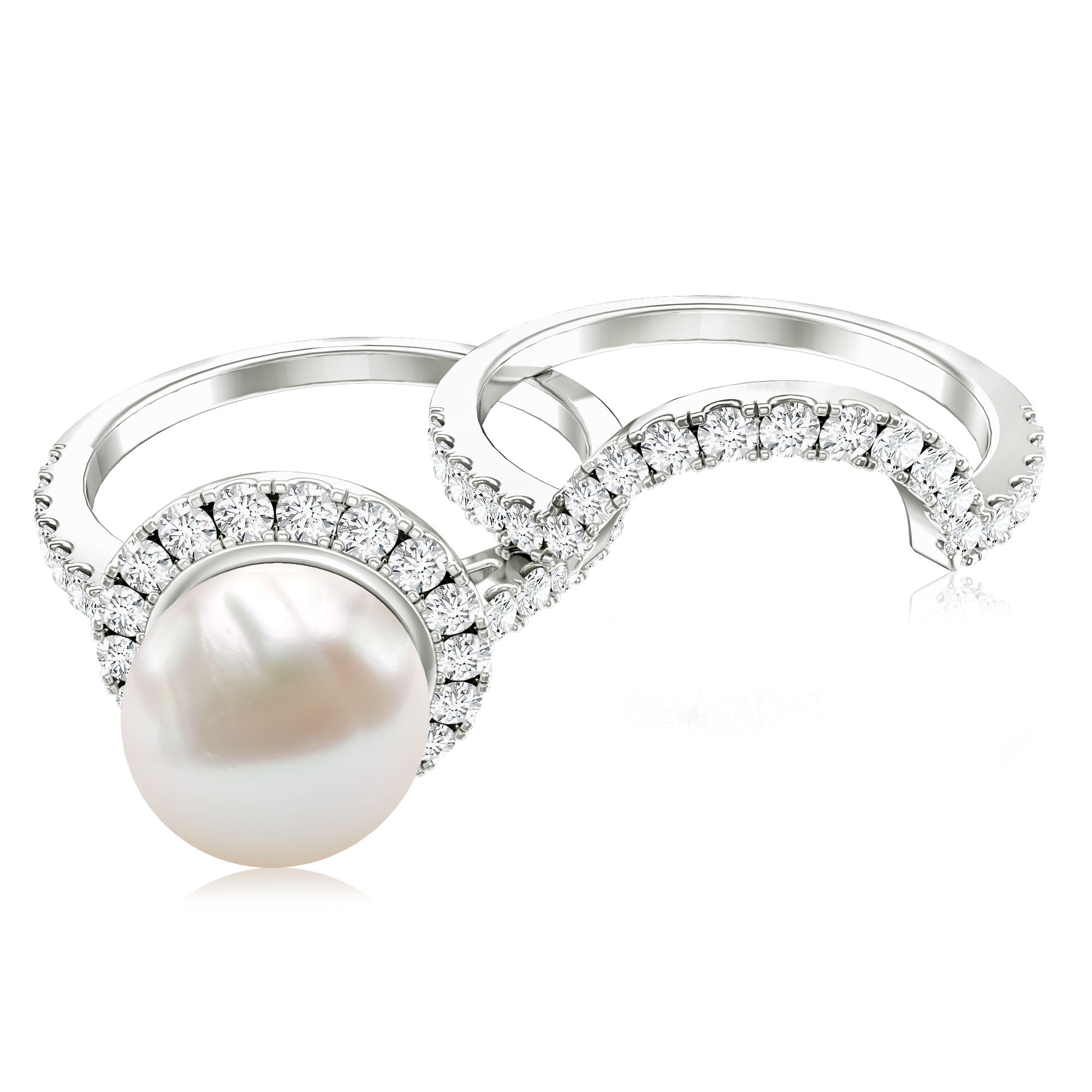 Freshwater Pearls Halo Rings: - each piece of freshwater pearl halo ring features a center attraction pearl that is securely encircled by small glittering diamonds or moissanite. This contrast maximizes the charm and elegance of the pearl, offering an enchanting visual impact.