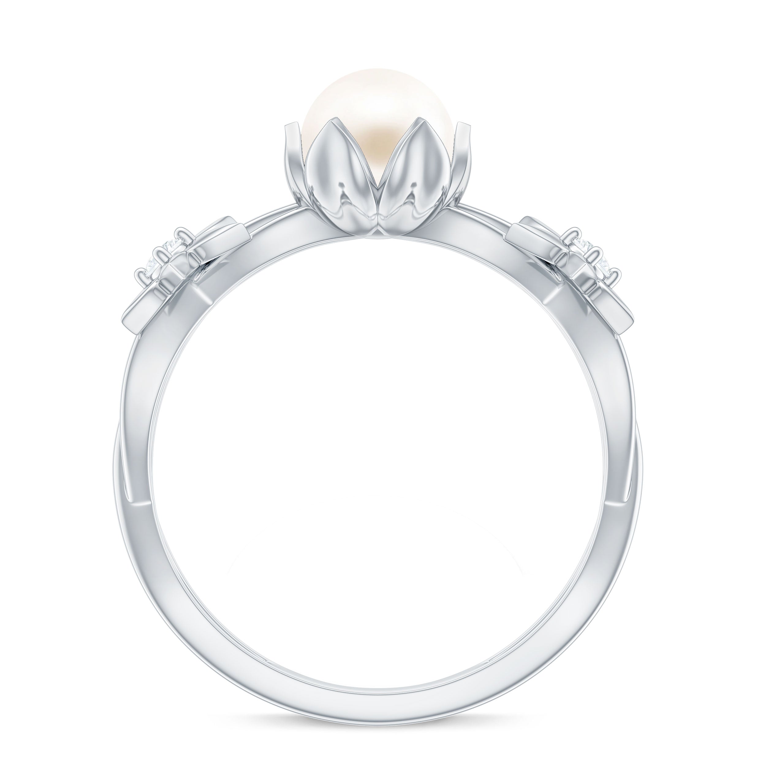 White Gold: - Whereas, white gold offers a contemporary and shiny look, that also enhances the pearl's simplicity and elegance.