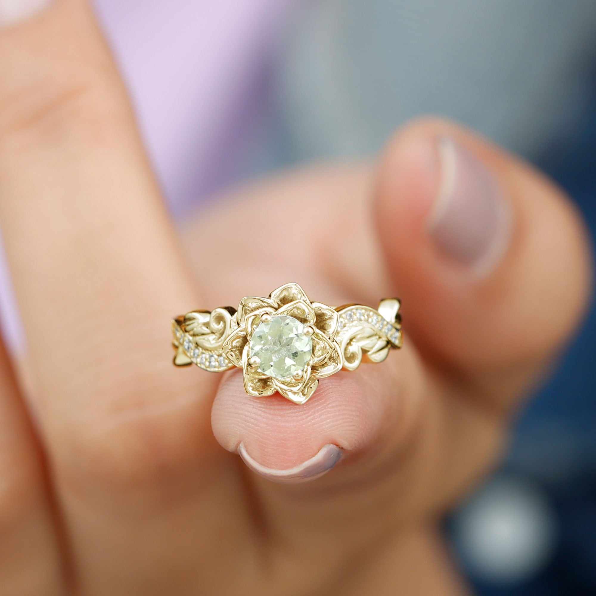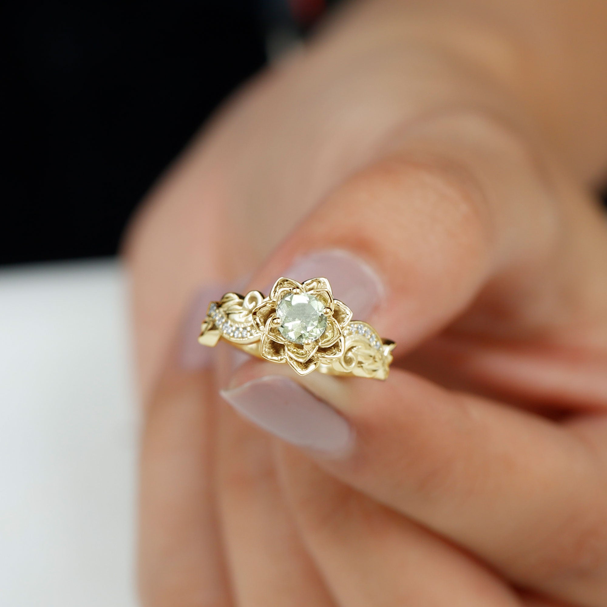 The shade can, at times, vary from a brownish green or olive to something extremely close to yellow. But the peridot heirloom engagement rings are always yellow-green, which indicates they are the finest variety.