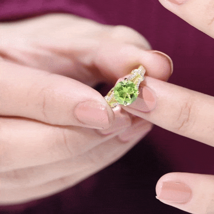 Oval: The oval cut of a peridot ring has two long and two short sides. Therefore, it resembles an elongated version of the round cut. If you are choosing peridot gold rings, the oval cut goes quite well with it. Moreover, the oval cut will also make your fingers appear longer.