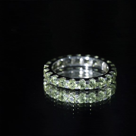 Aesthetically, a Peridot Wedding Ring is embedded with Peridots all over the Band. It could range from a classic Peridot band to a somewhat dramatic triple-row Peridot Band or Scattered Peridot and Diamond Ring. The versatile part is that it also makes for one of the most unique Peridot Stackable Rings. Symbolically, it is exchanged during the wedding vows to commemorate the union of two people forever.